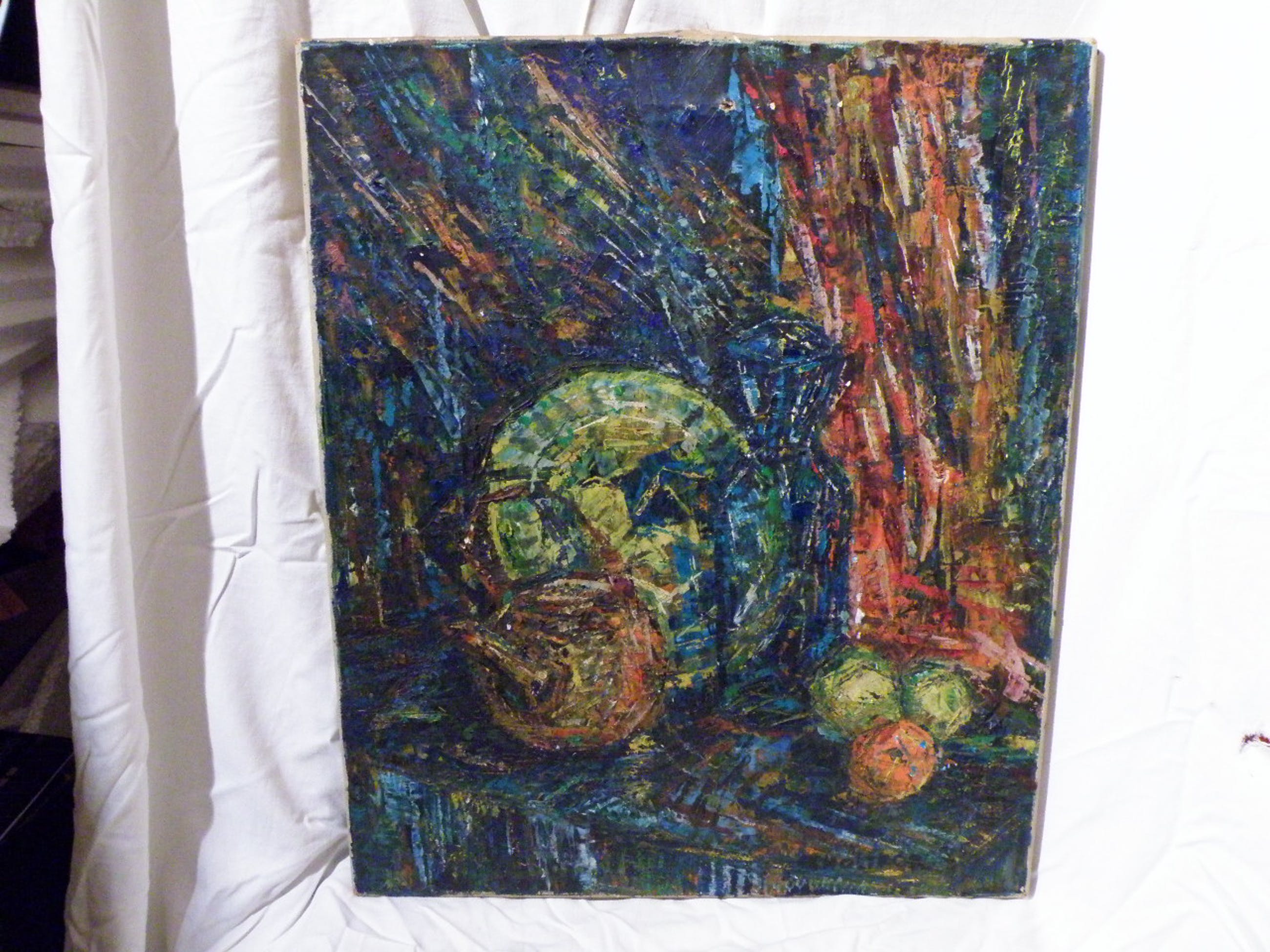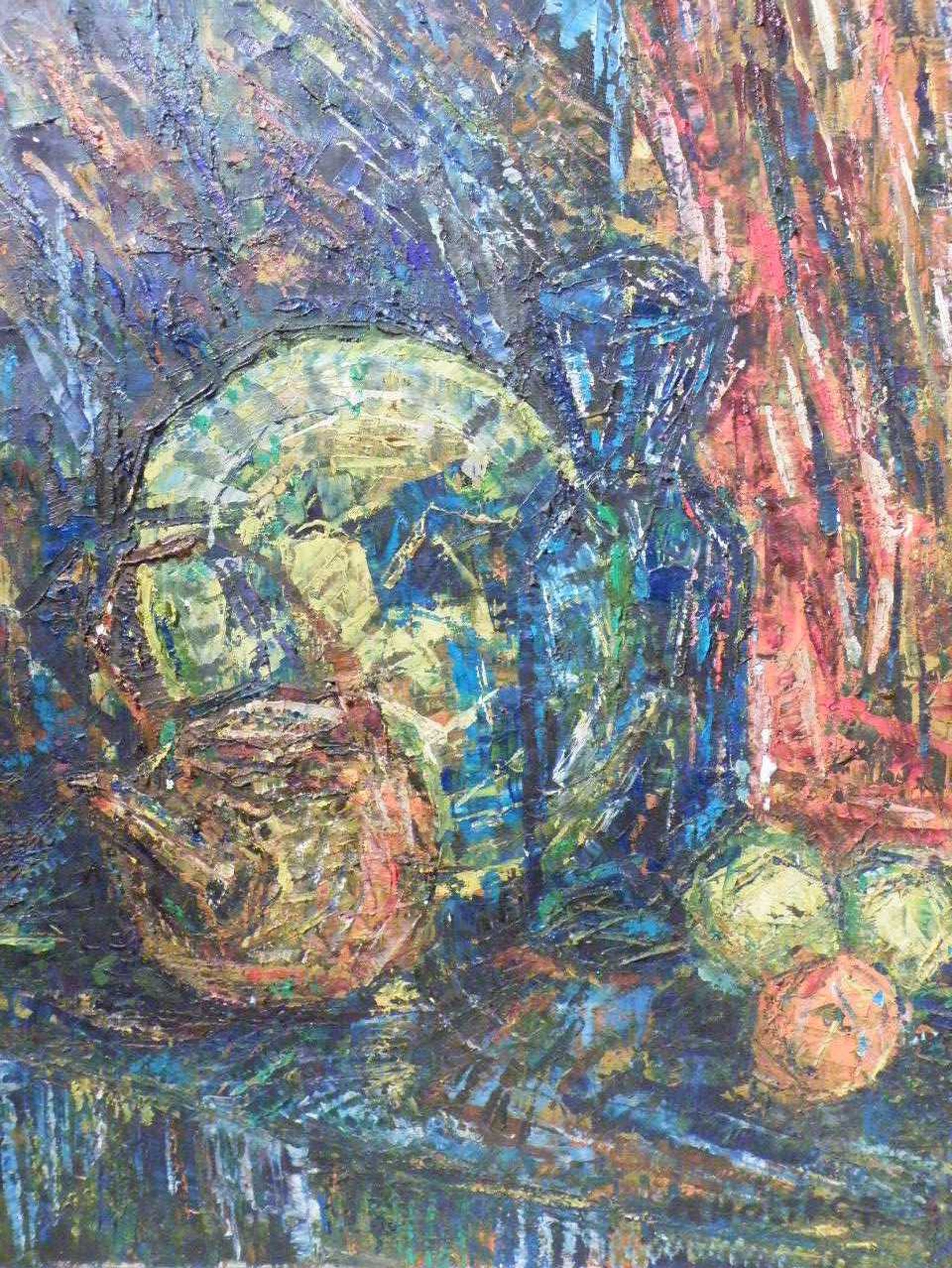 olieverf op doek, gesigneerd rechts onderin, in goede conditie met 2 kleine beschadigingen van canvas en paar kleine schilferingen van verf, gedateerd circa 1950, afmetingen 60x50 cm, provenance privé verzameling in Amsterdam.