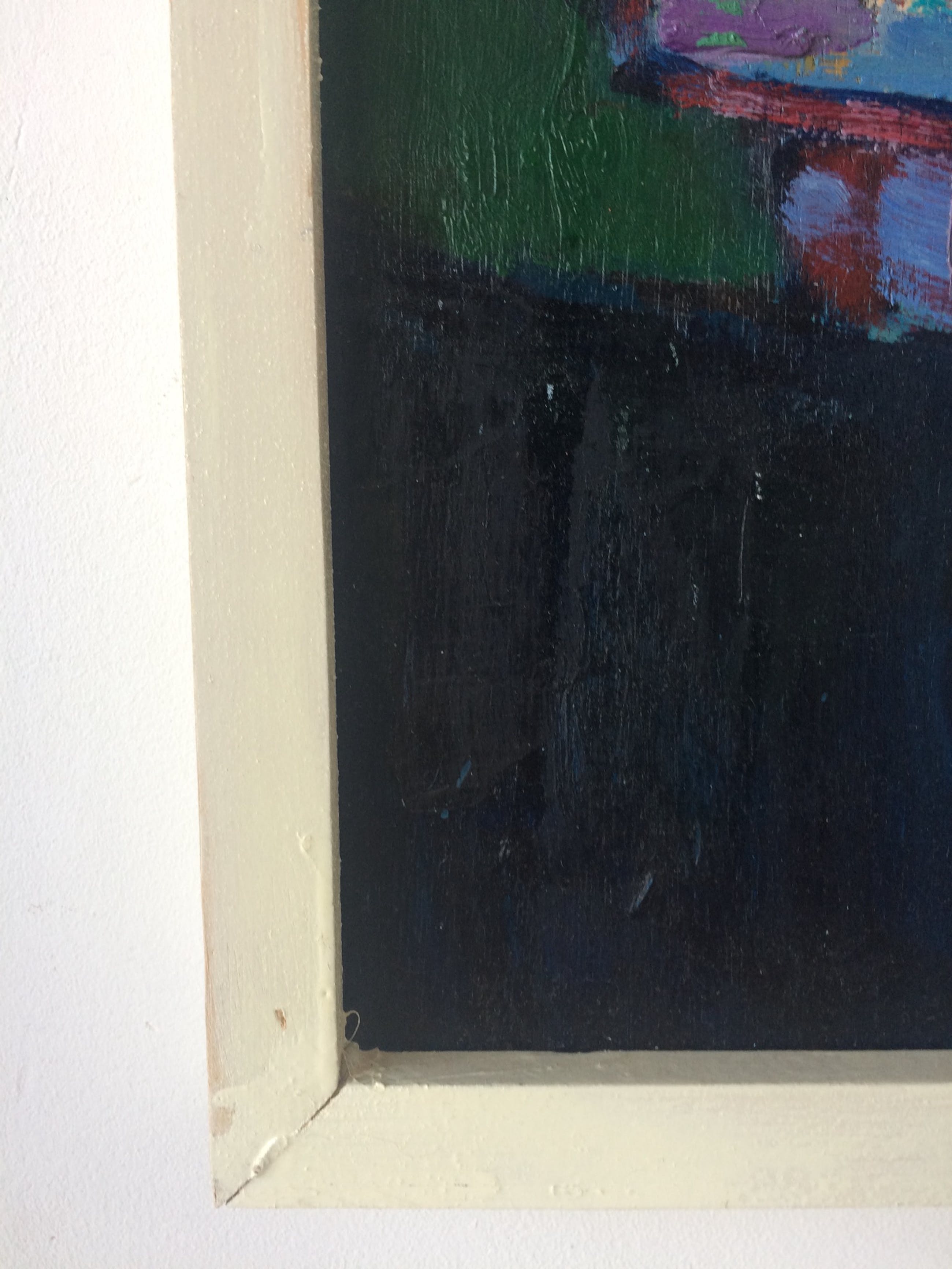 Olieverfschilderij van de bekende en veelzijdige Utrechtse kunstenaar Rien Goené. Prachtig van kleur, dik in de verf en opgezet met kwast en paletmes zoals Goené dat deed.