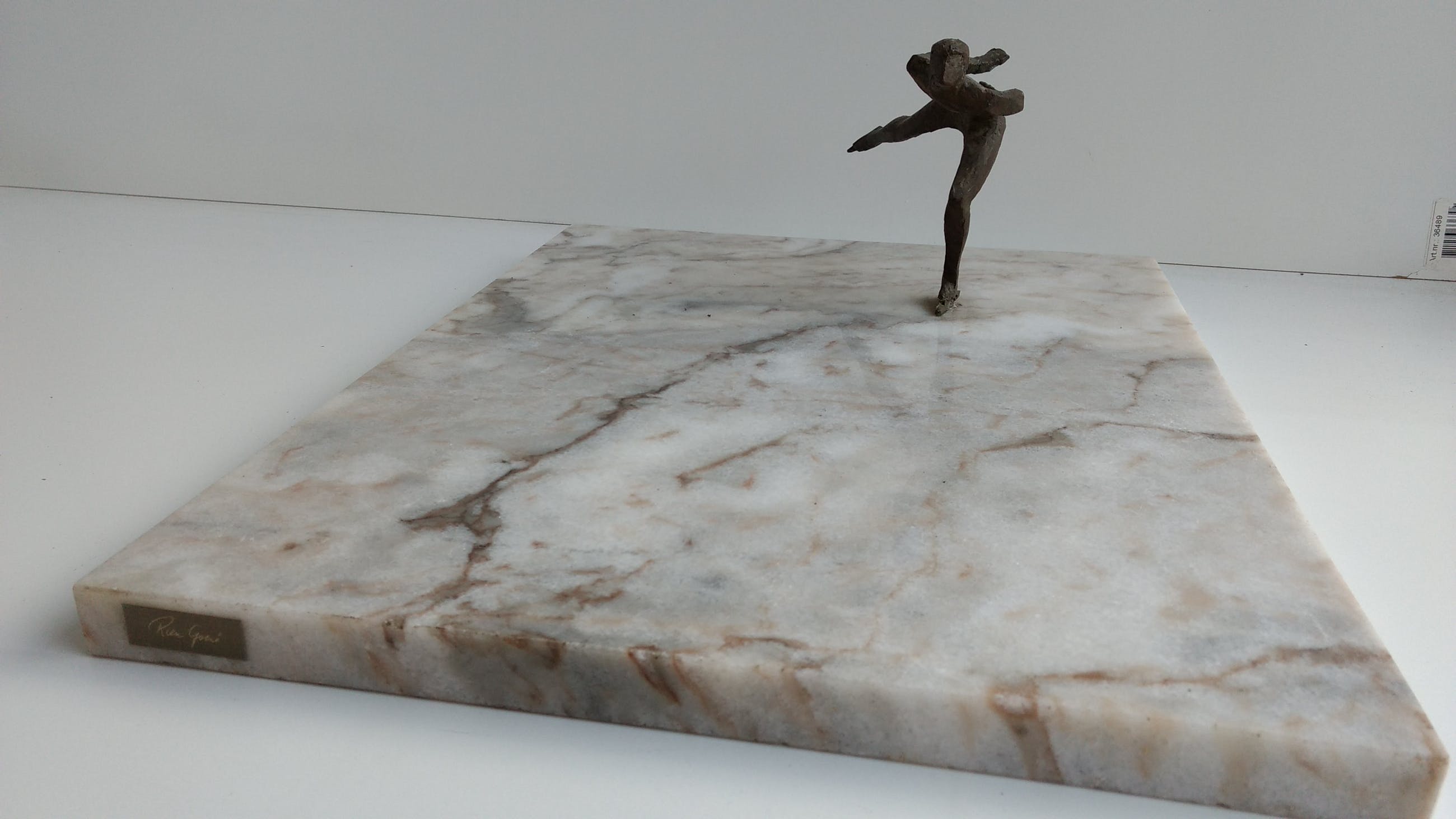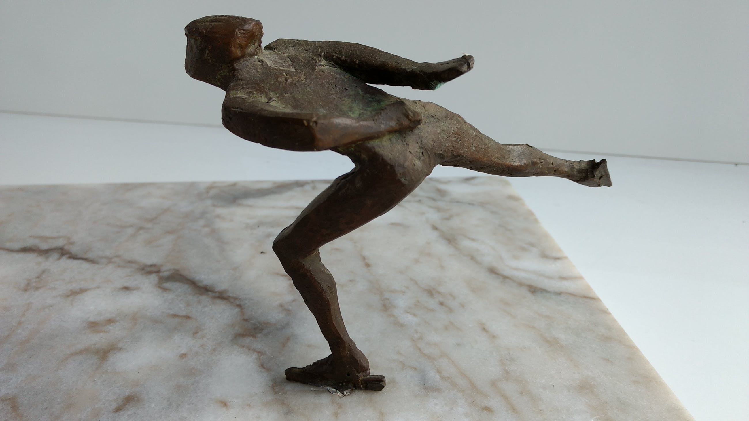 Schaatser van brons op marmeren sokkelplaat. Deze sculptuur is gemaakt