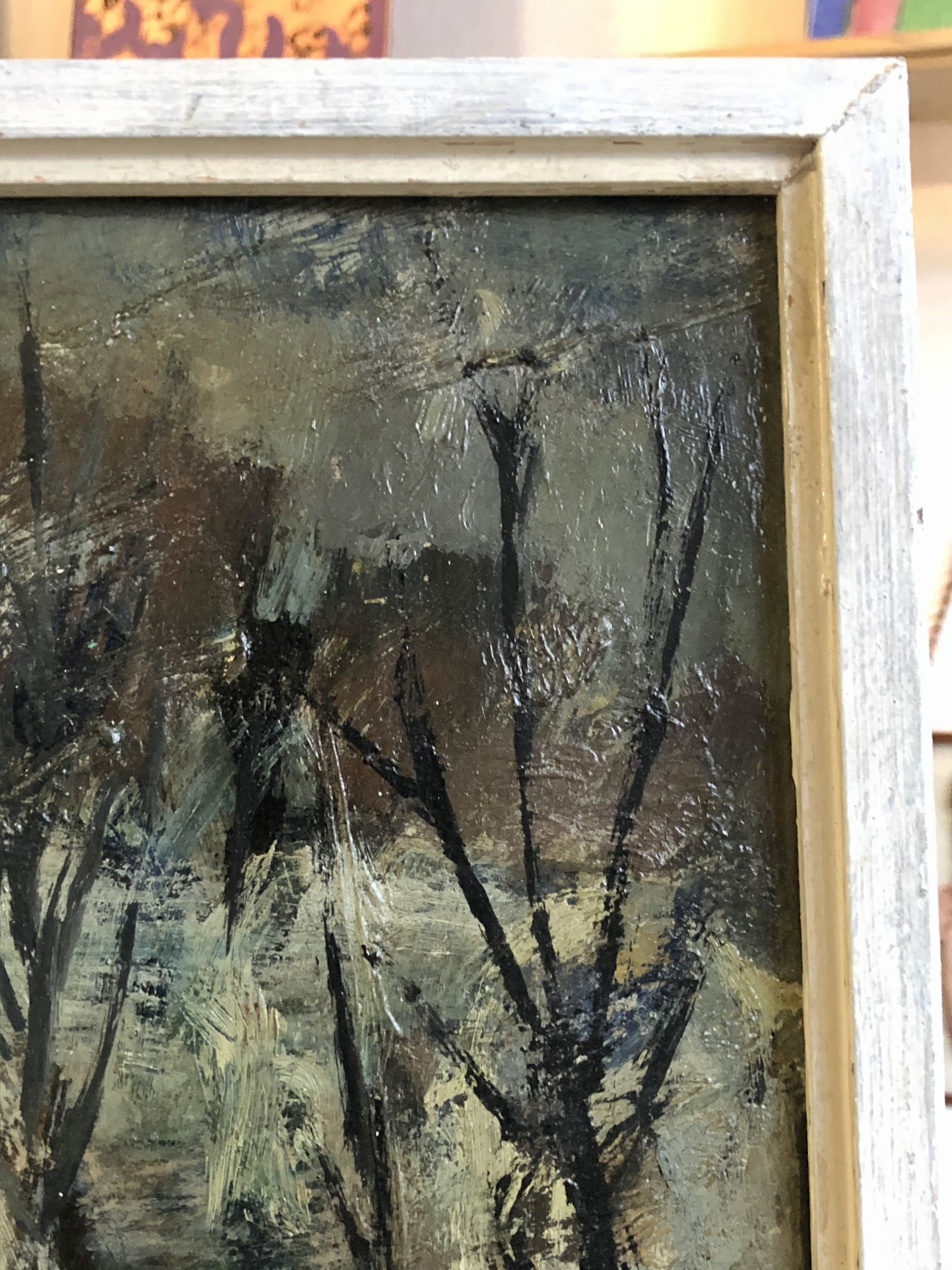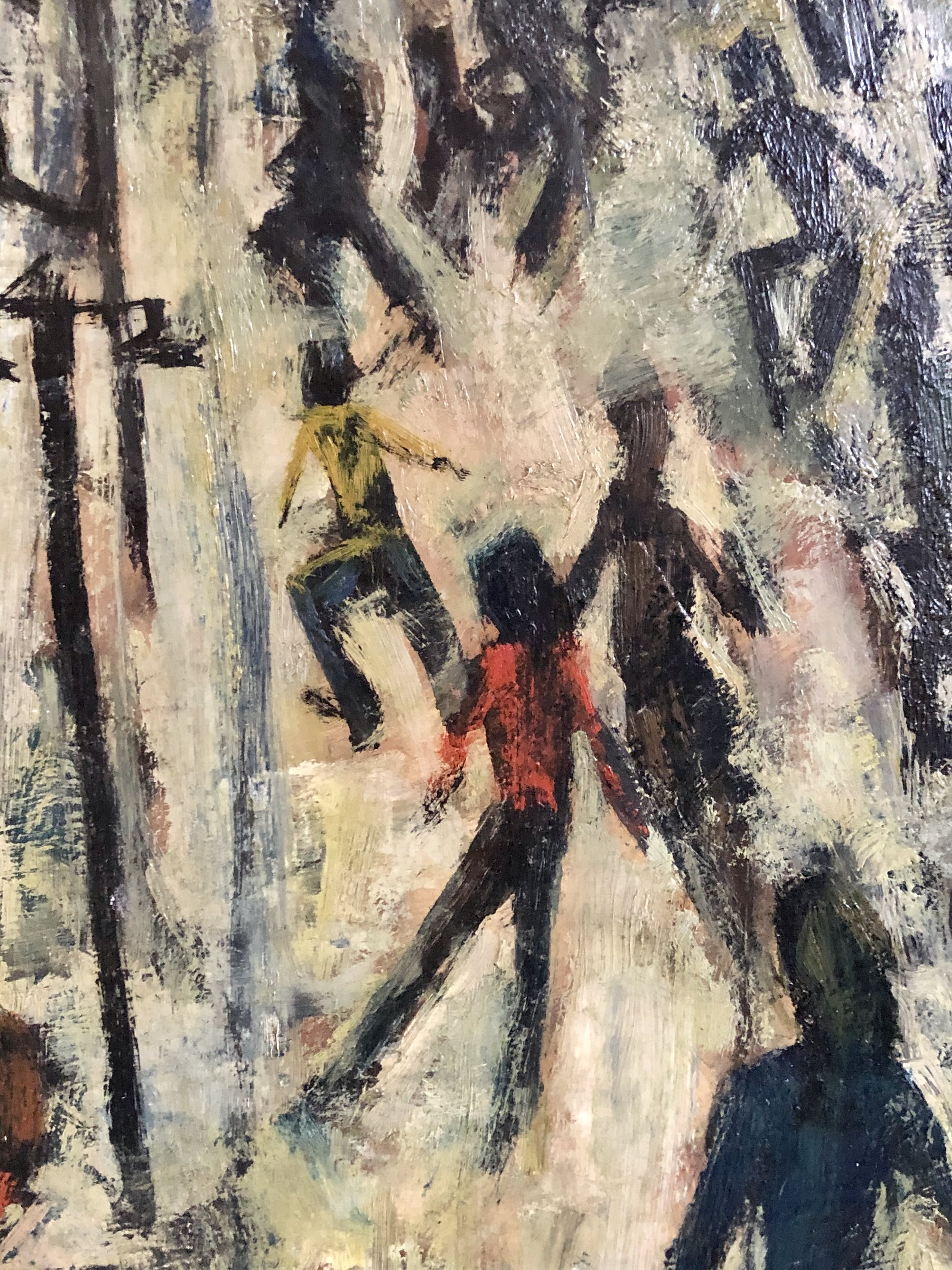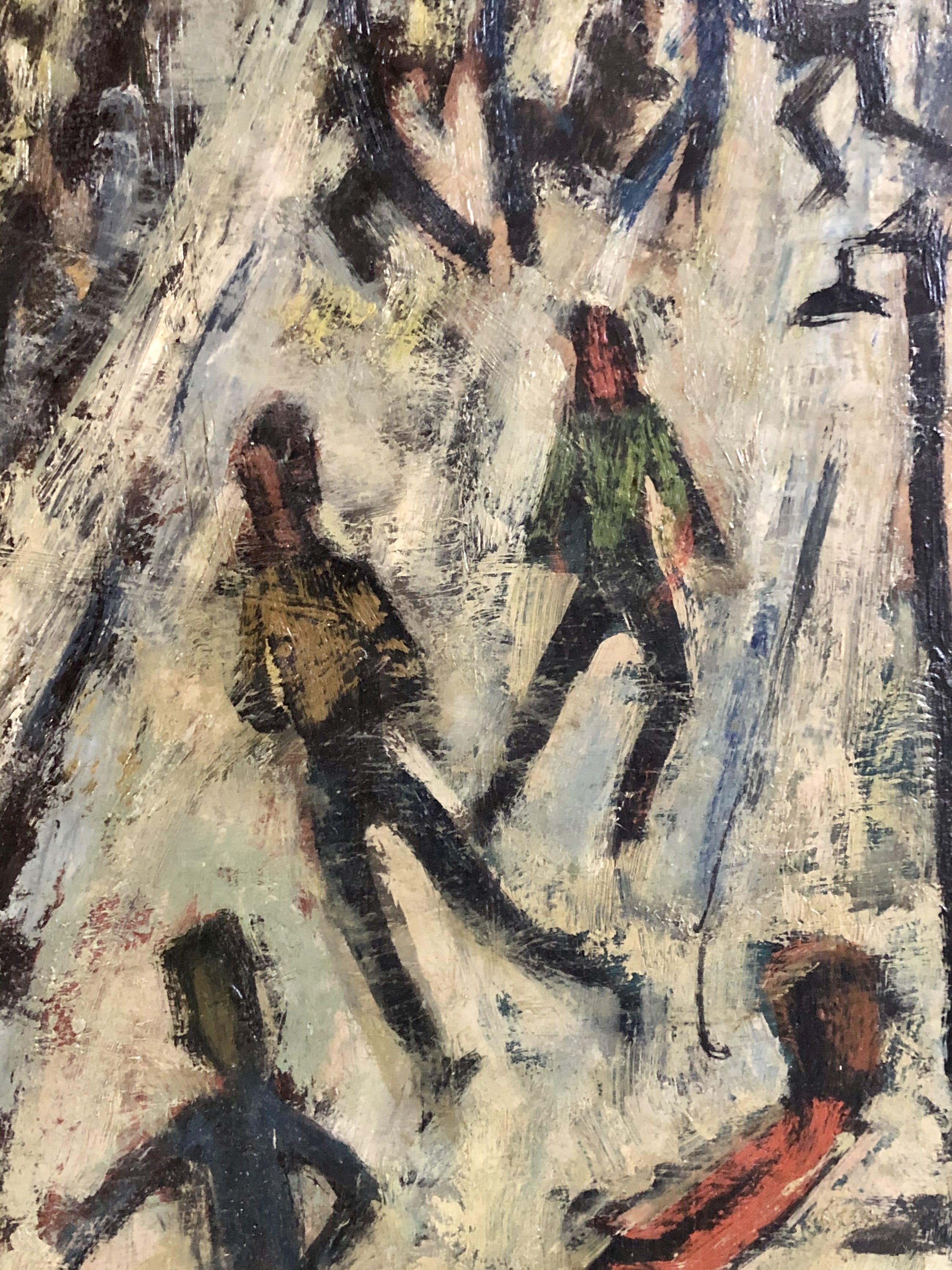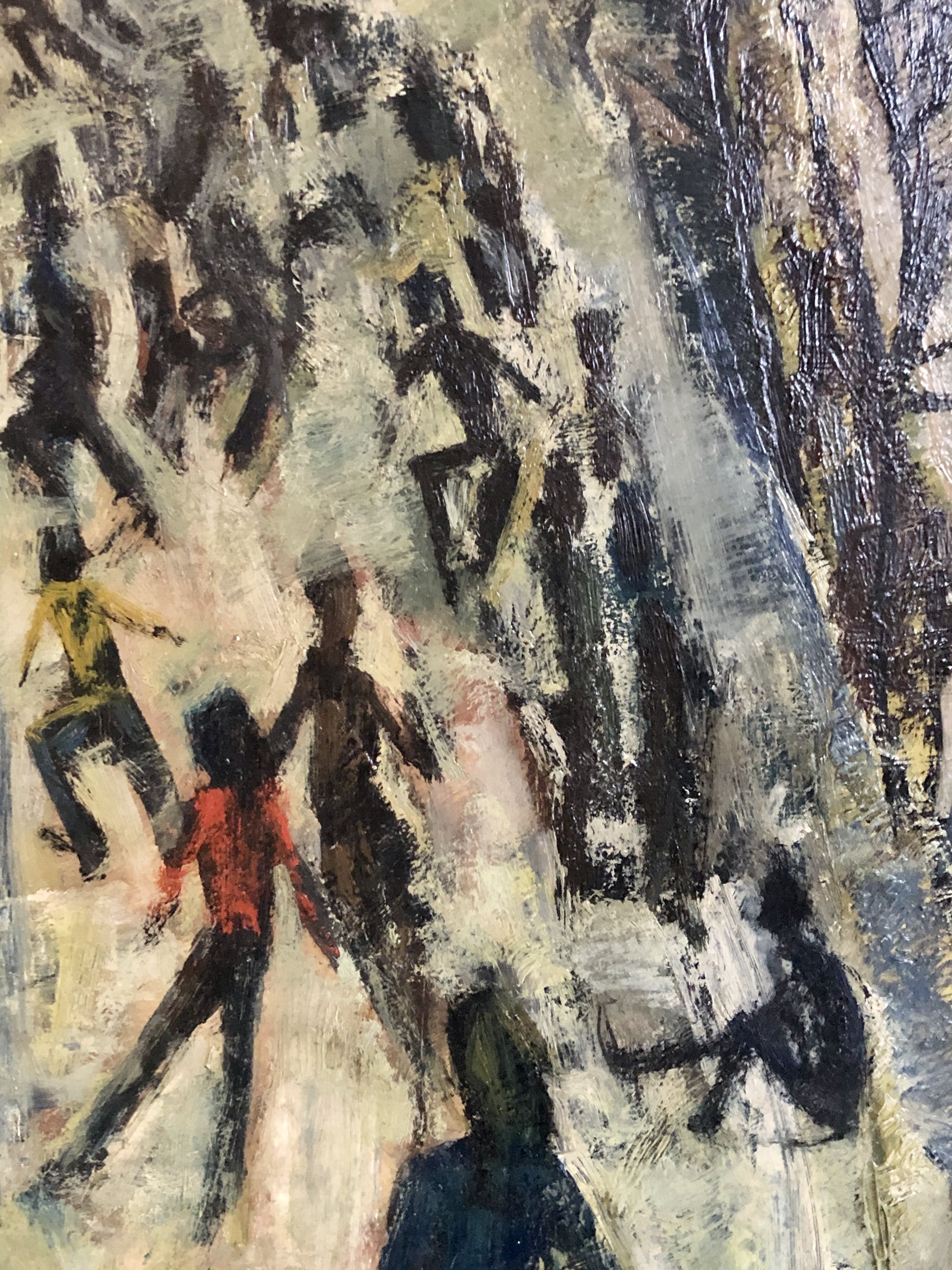 Olieverfschilderij van de bekende en veelzijdige Utrechtse kunstenaar Rien Goené uit de vroege jaren 50. Goené was een fervent watersporter, zomers zeilen en 's winters schaatsen.