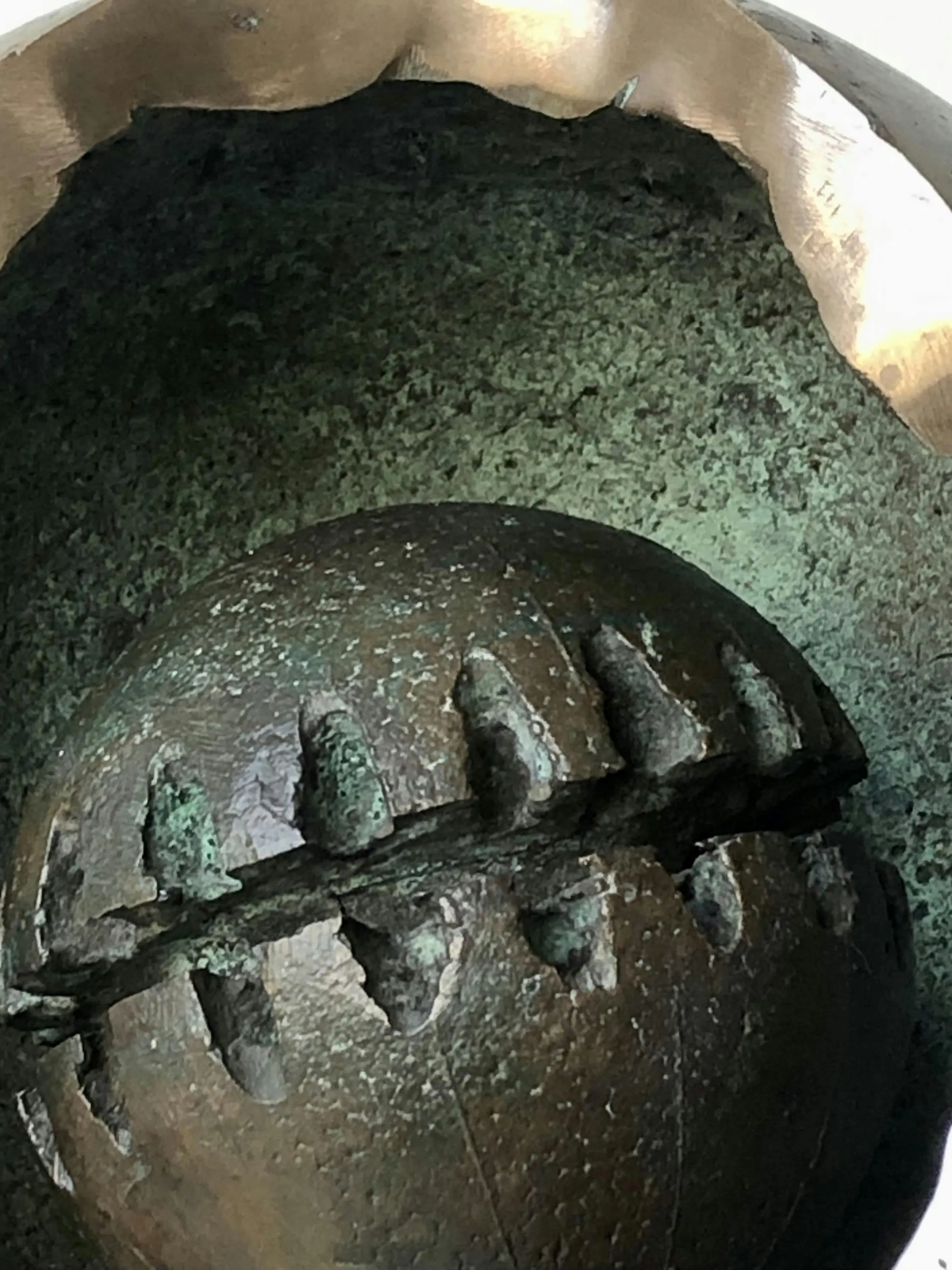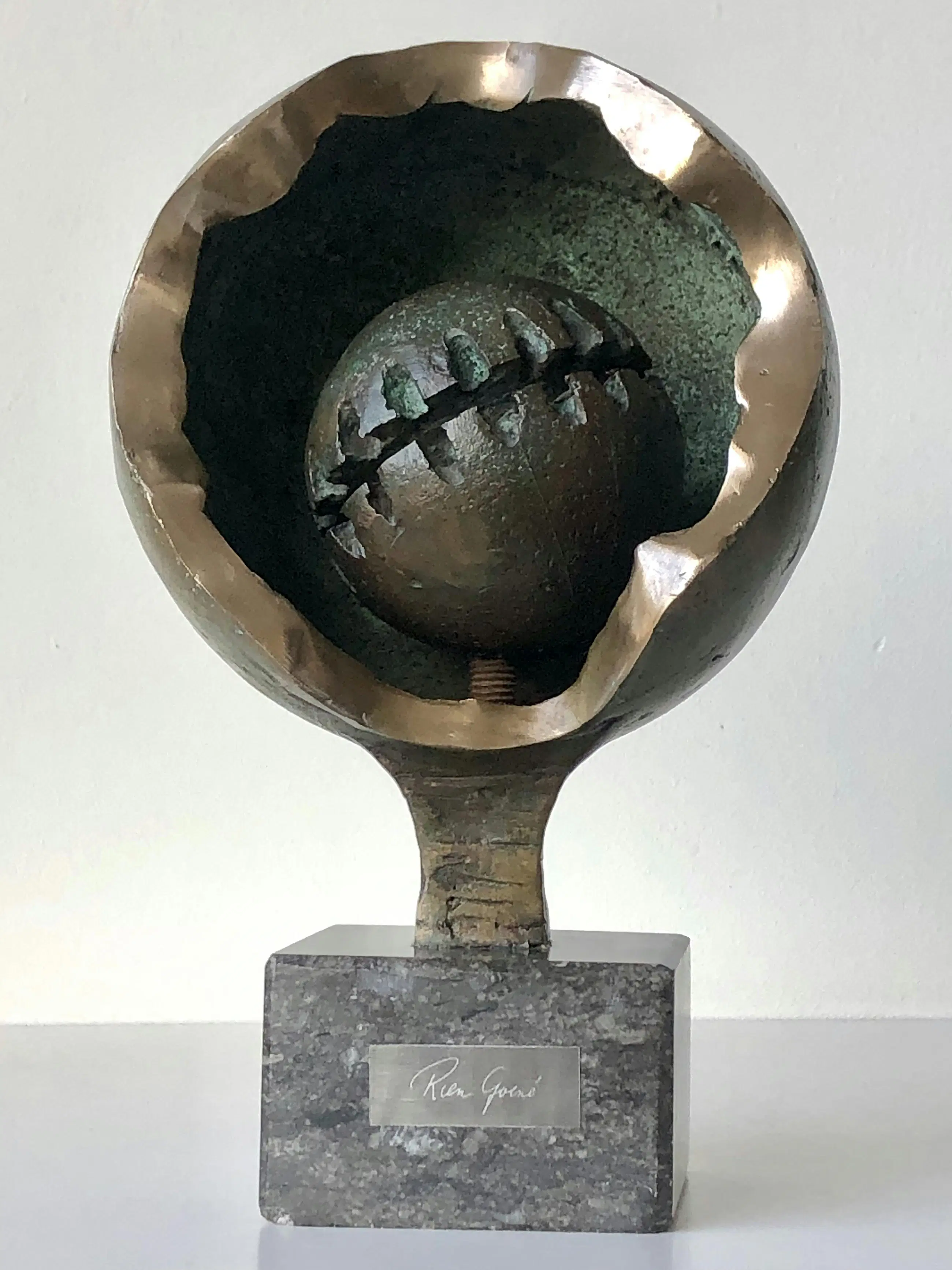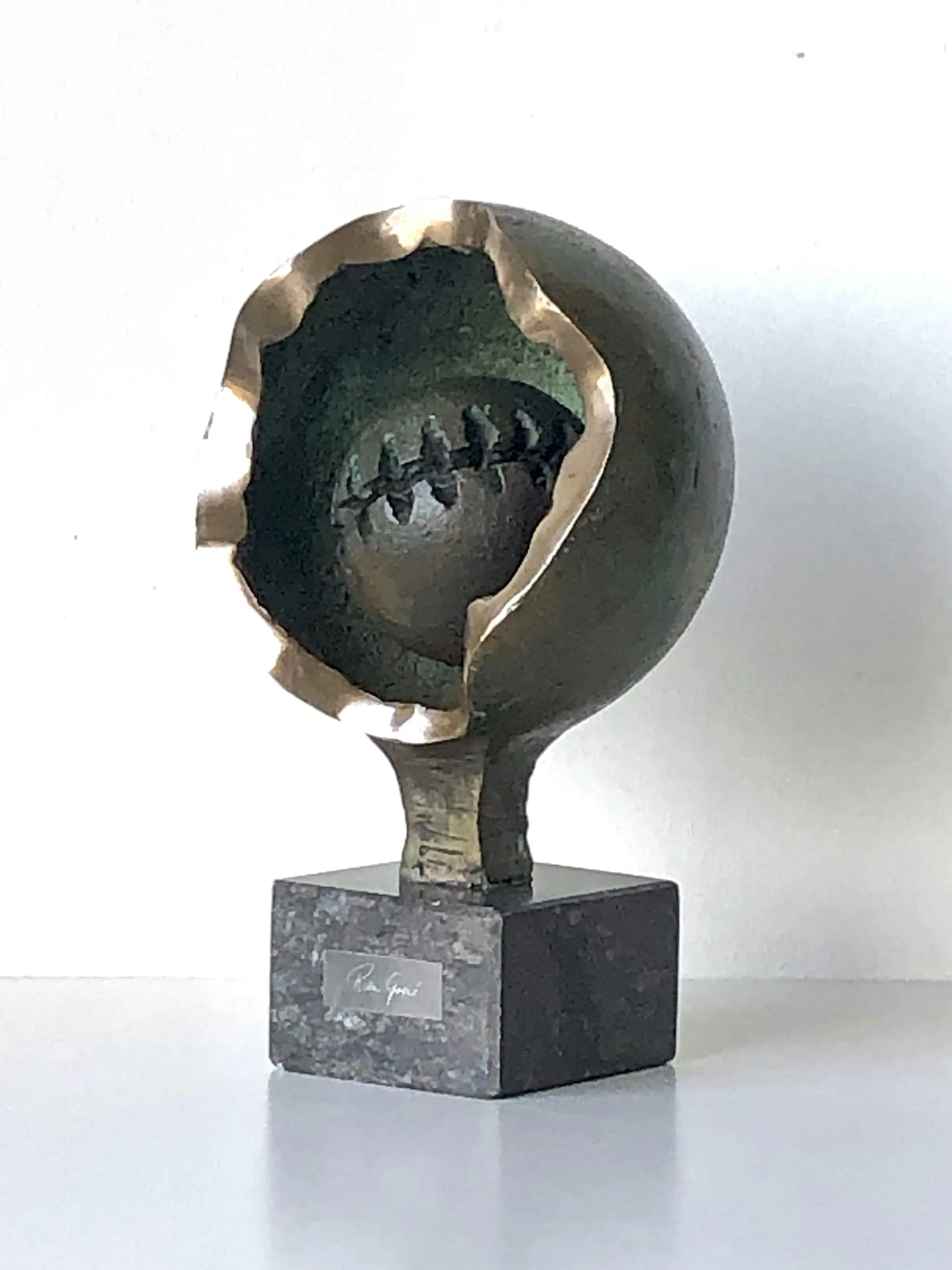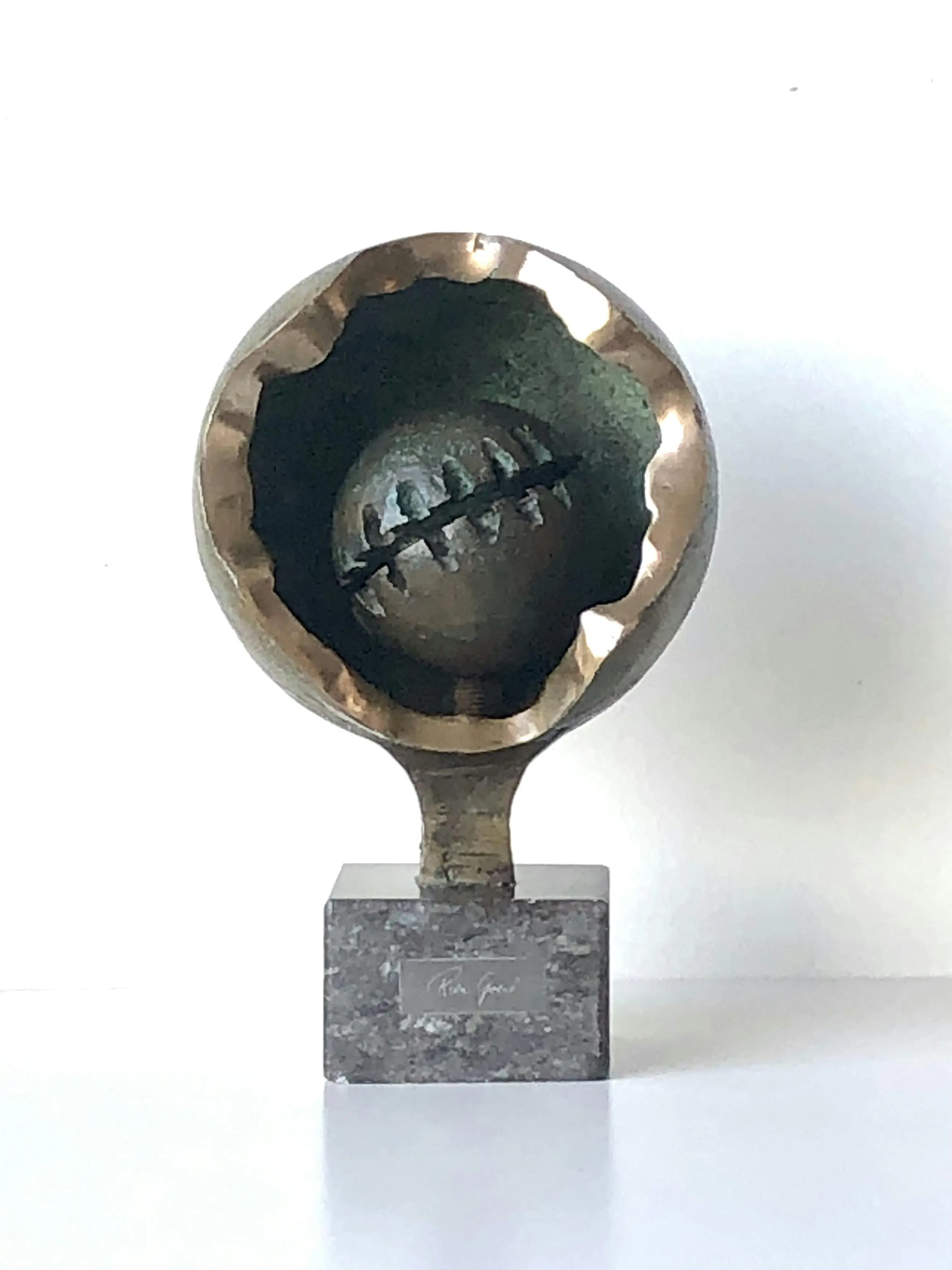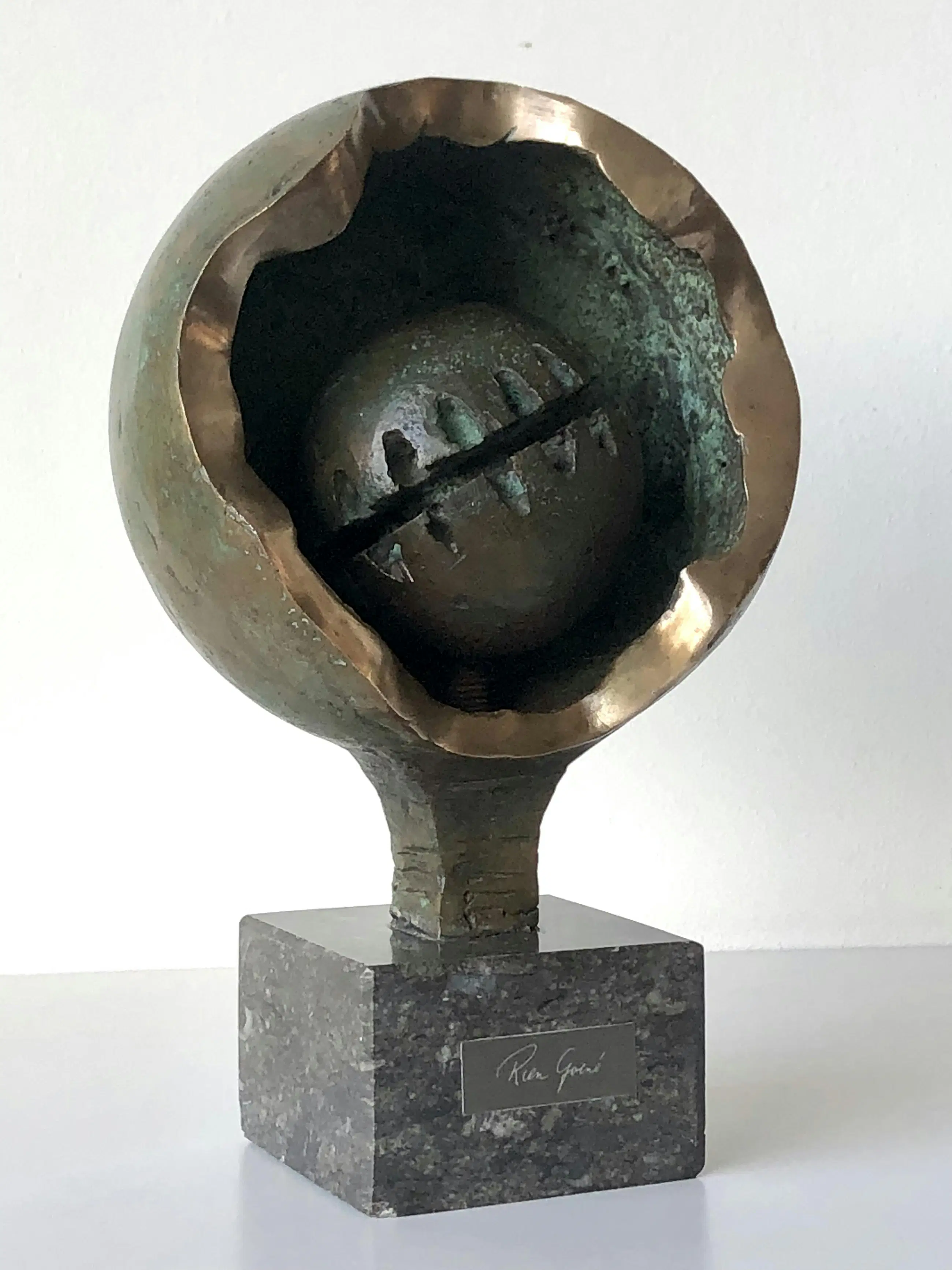 Prachtig minimalistisch brons van de veelzijdige Utrechtse kunstenaar Rien Goené uit de jaren 70. Mooi patina aan binnen en buitenkant.