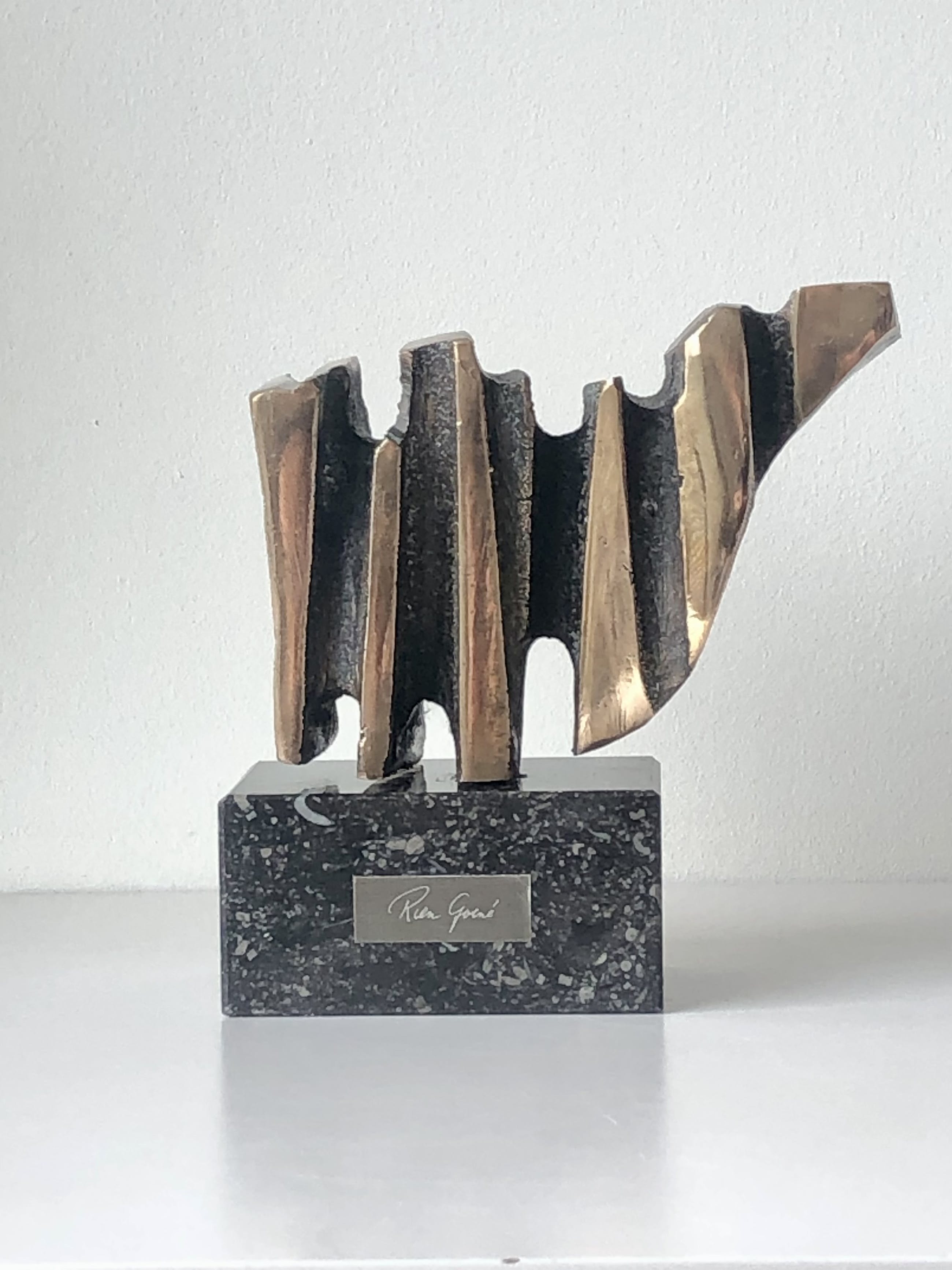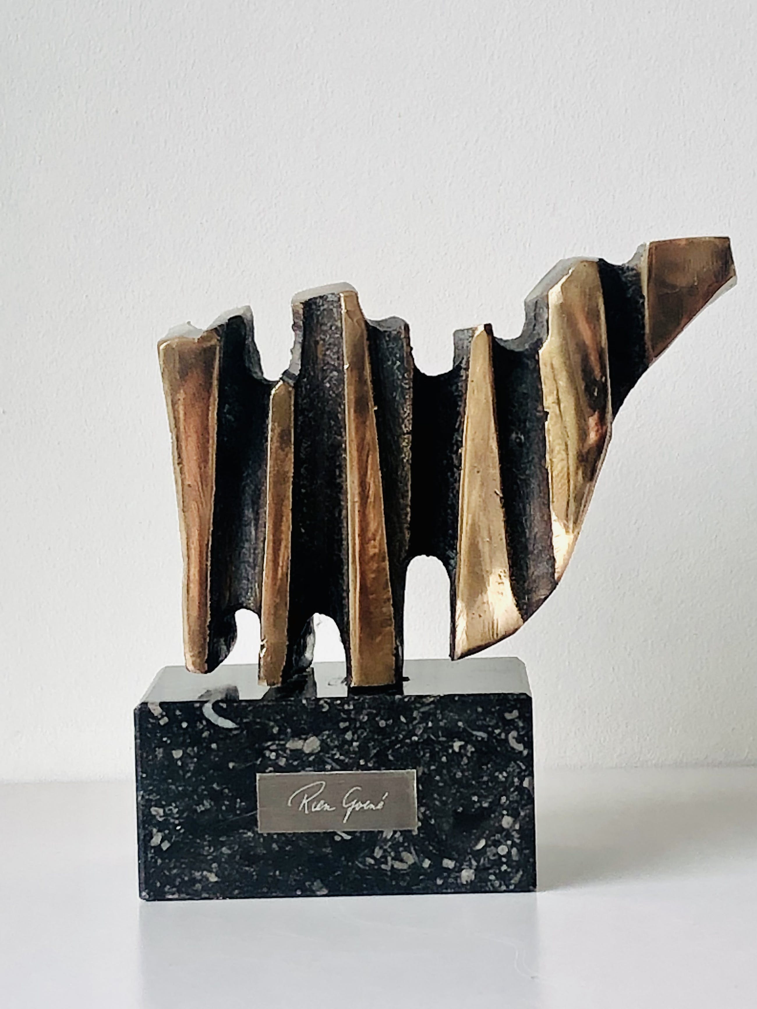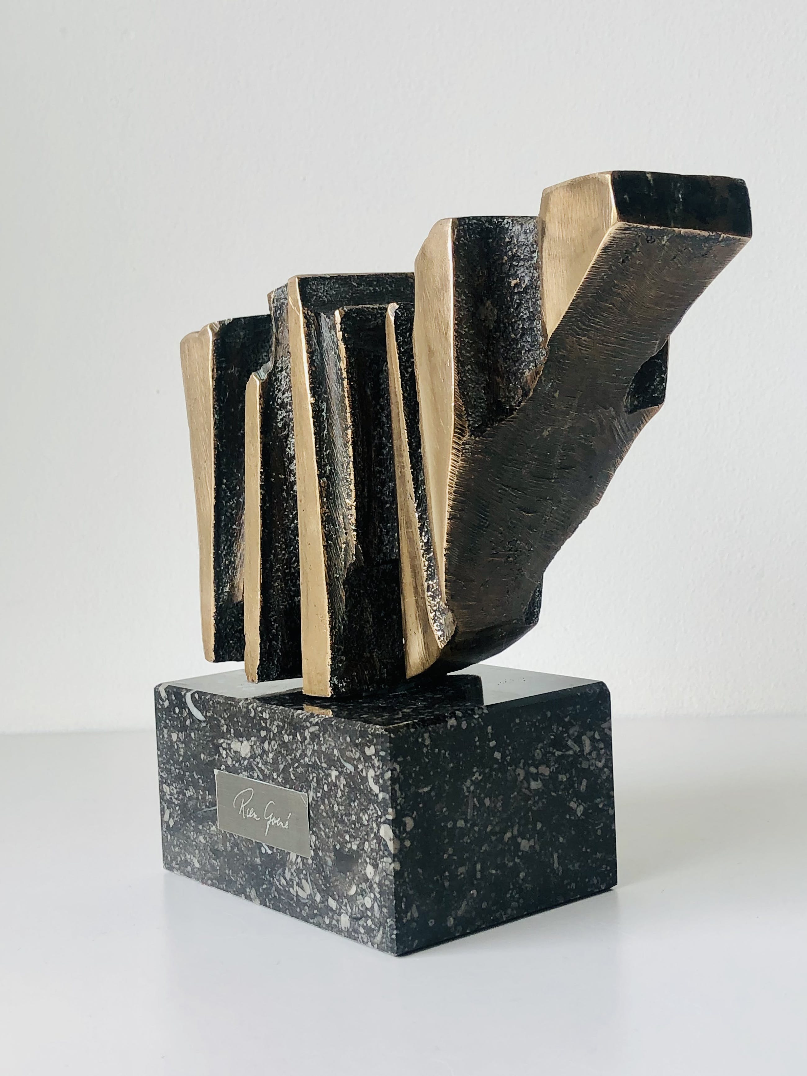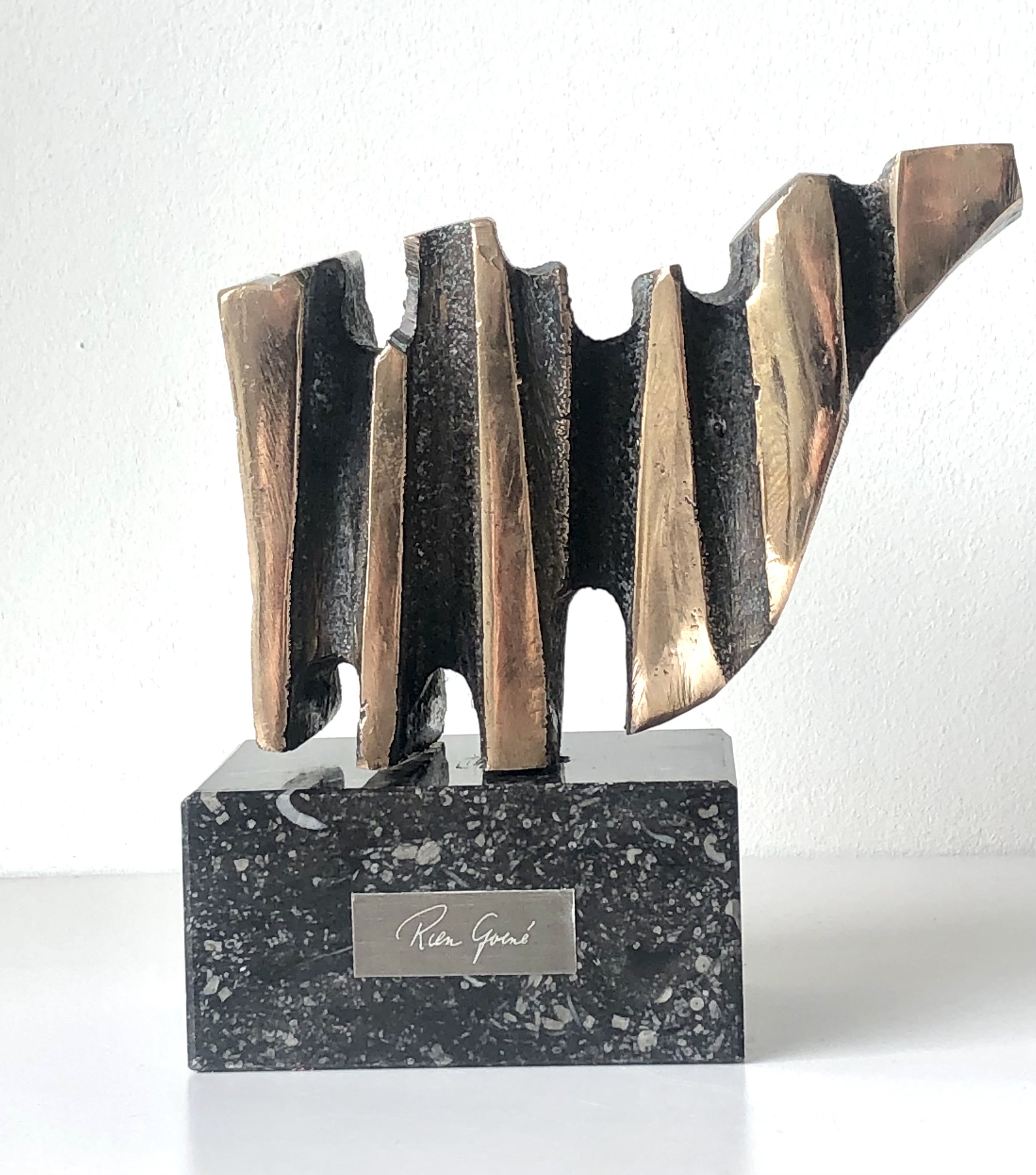 Kubistische bronzen stier van de hand van de bekende en veelzijdige Utrechtse kunstenaar Rien Goené.