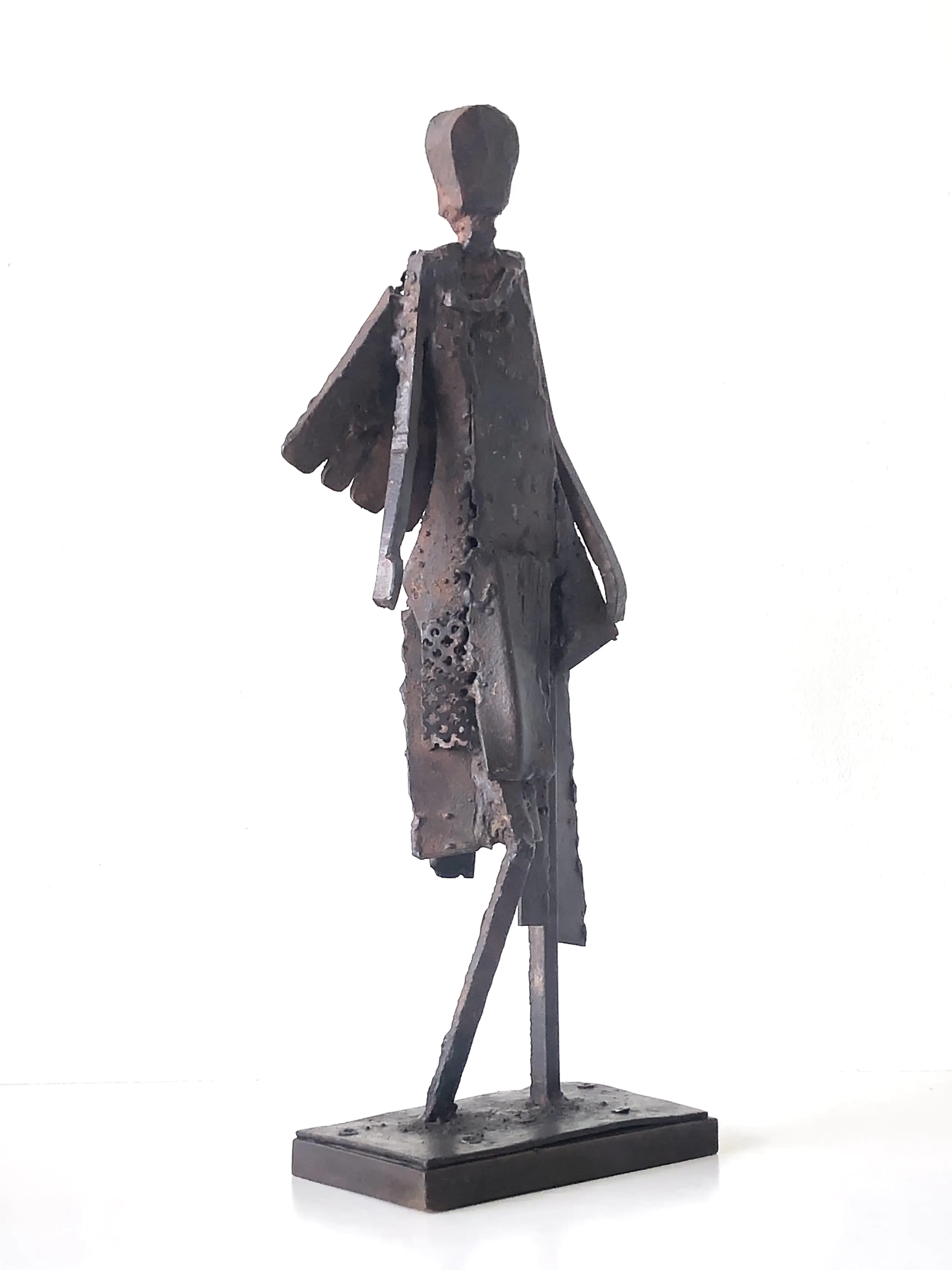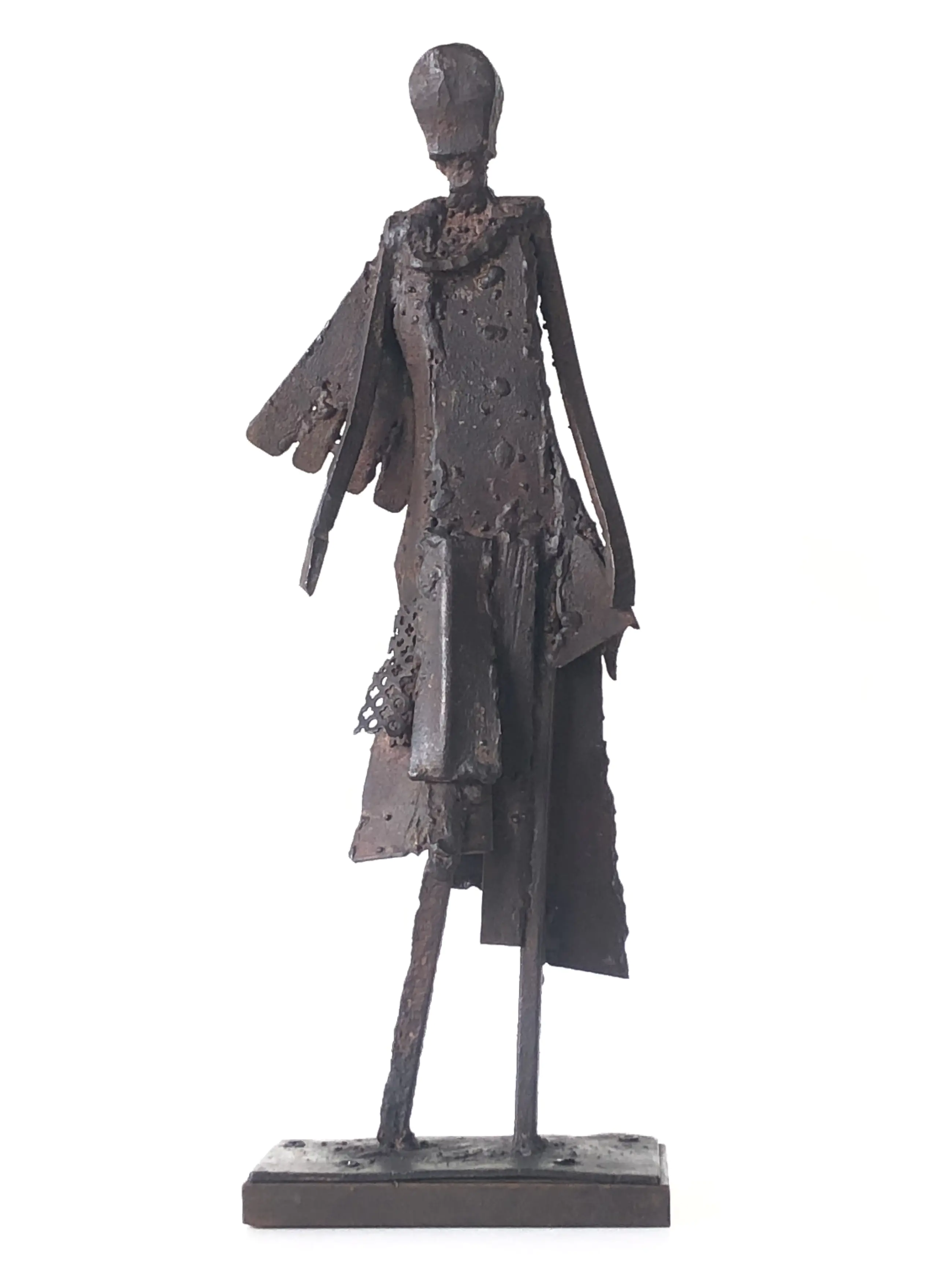 Elegante ijzeren mannequin van de hand van de bekende Utrechtse kunstenaar Rien Goené. Knap gedaan met zulk ruw materiaal zo een sierlijk plastiek maken en aan alle kanten even mooi.