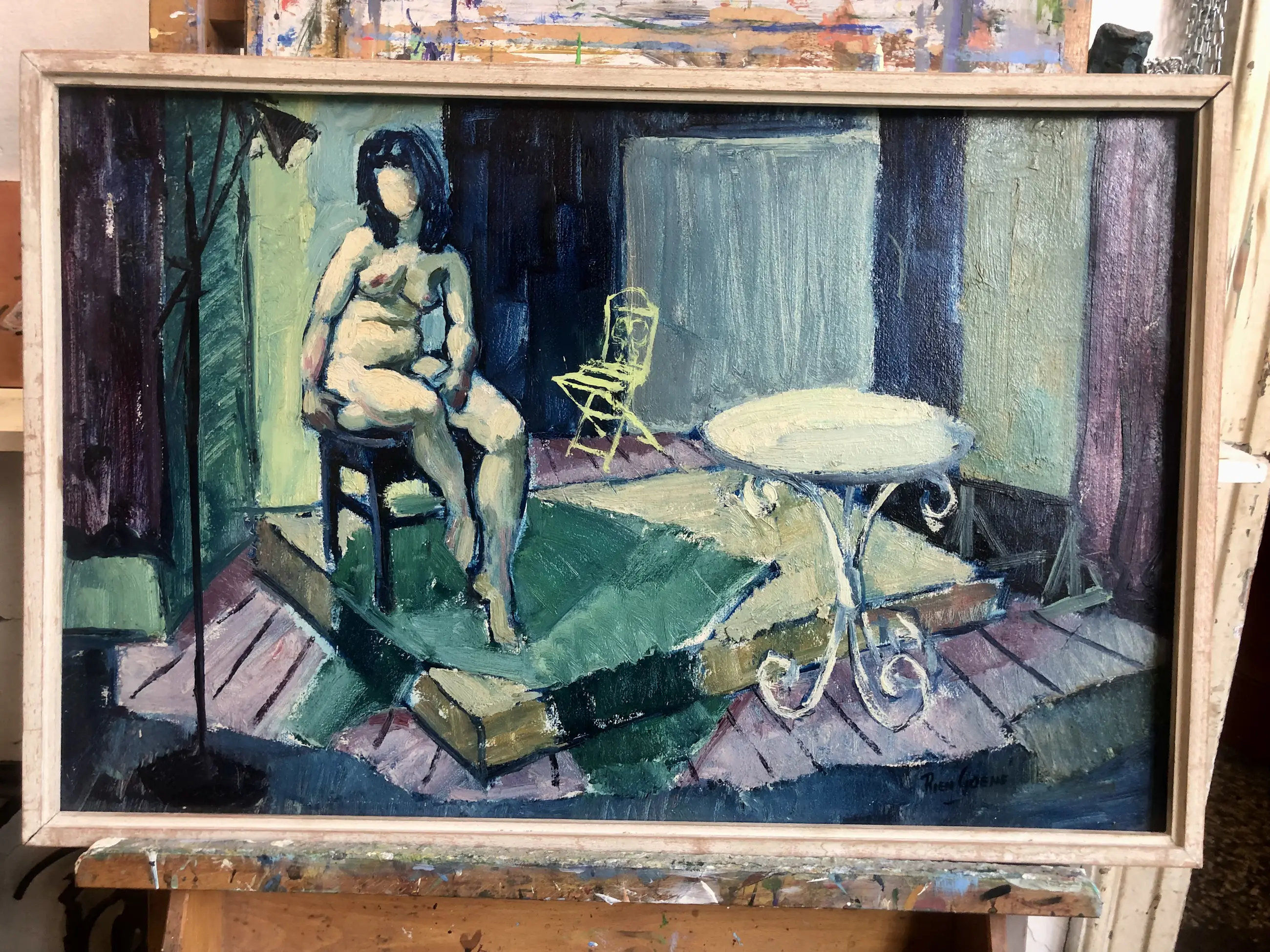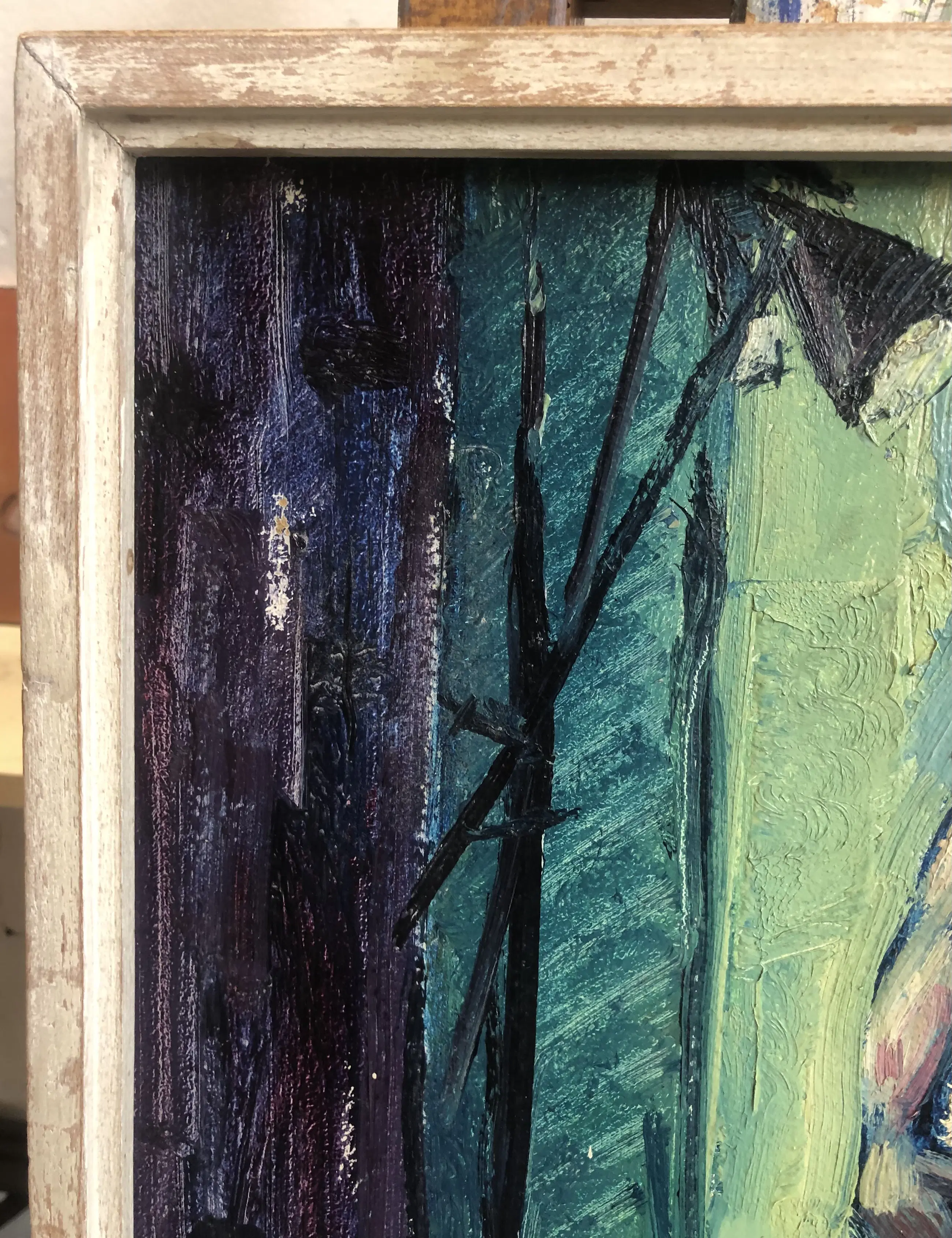 Fauvistisch olieverfschilderij van de veelzijdige Utrechtse kunstenaar Rien Goené te dateren medio jaren 50. Prachtig van kleur en opgezet met kwast en paletmes.