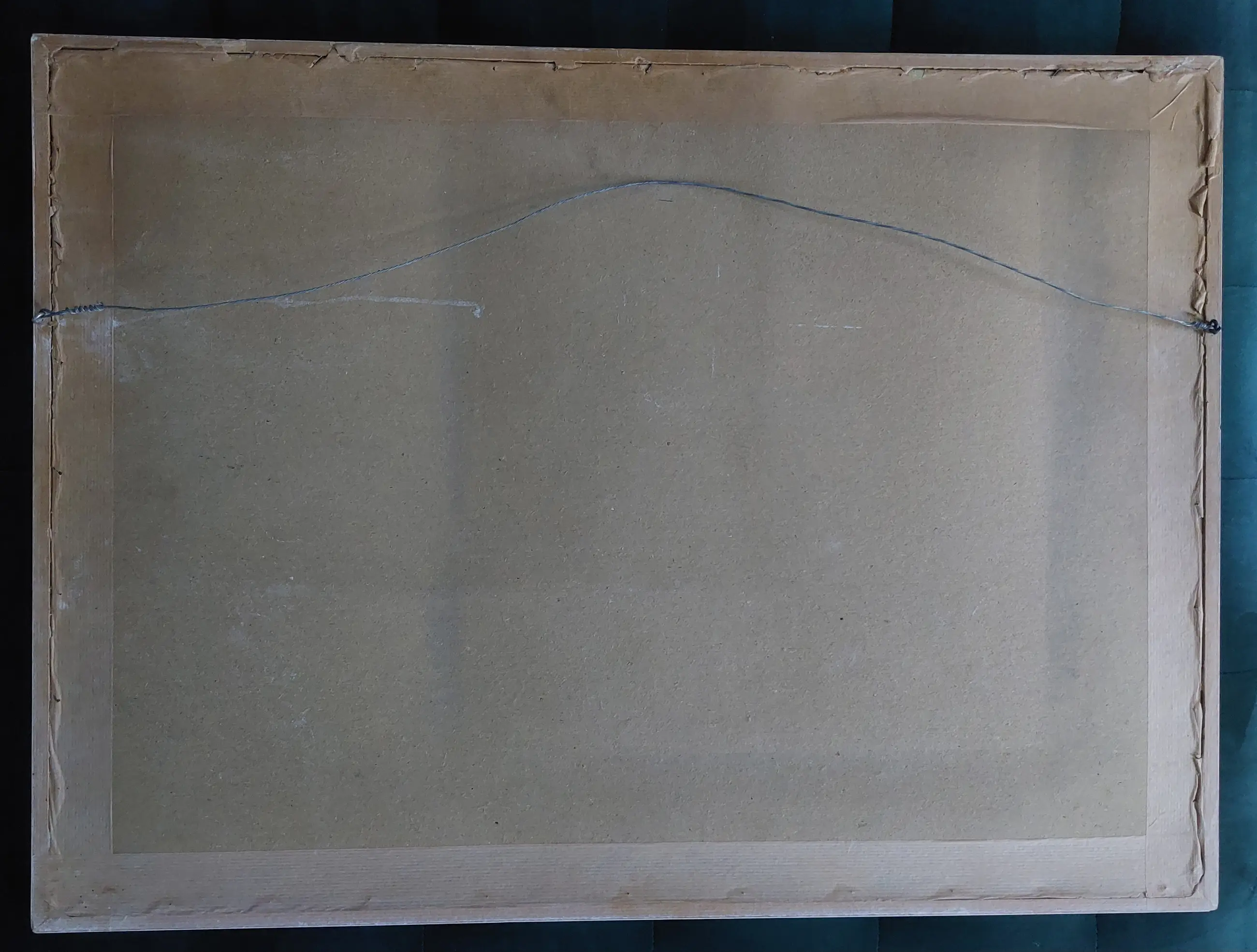 Het werk is in goede staat. Het passepartout is verkleurd en wat rommelig en de lijst is in redelijke staat. Werk verdient eigenlijk een fris passepartout en een nette lijst.