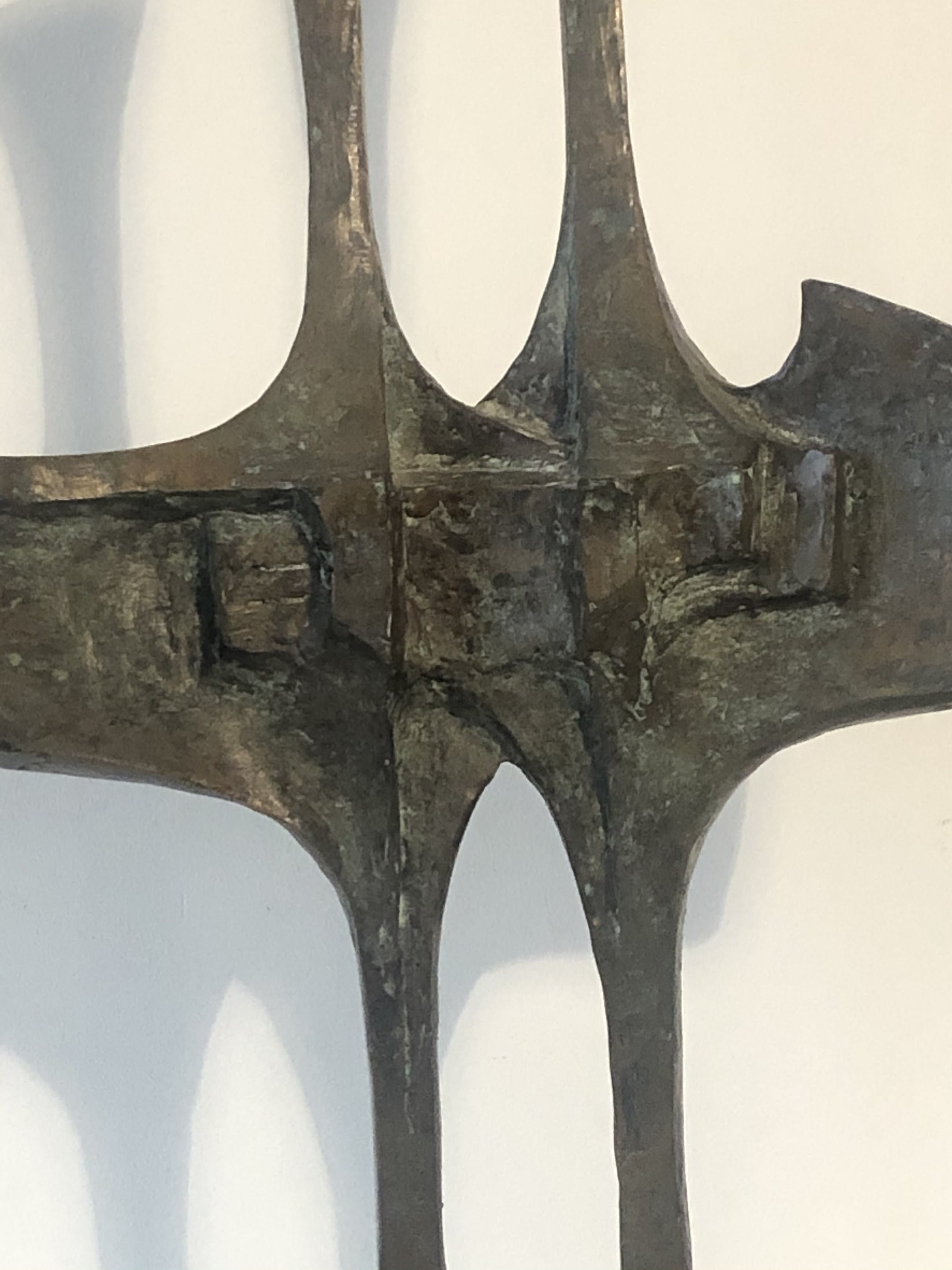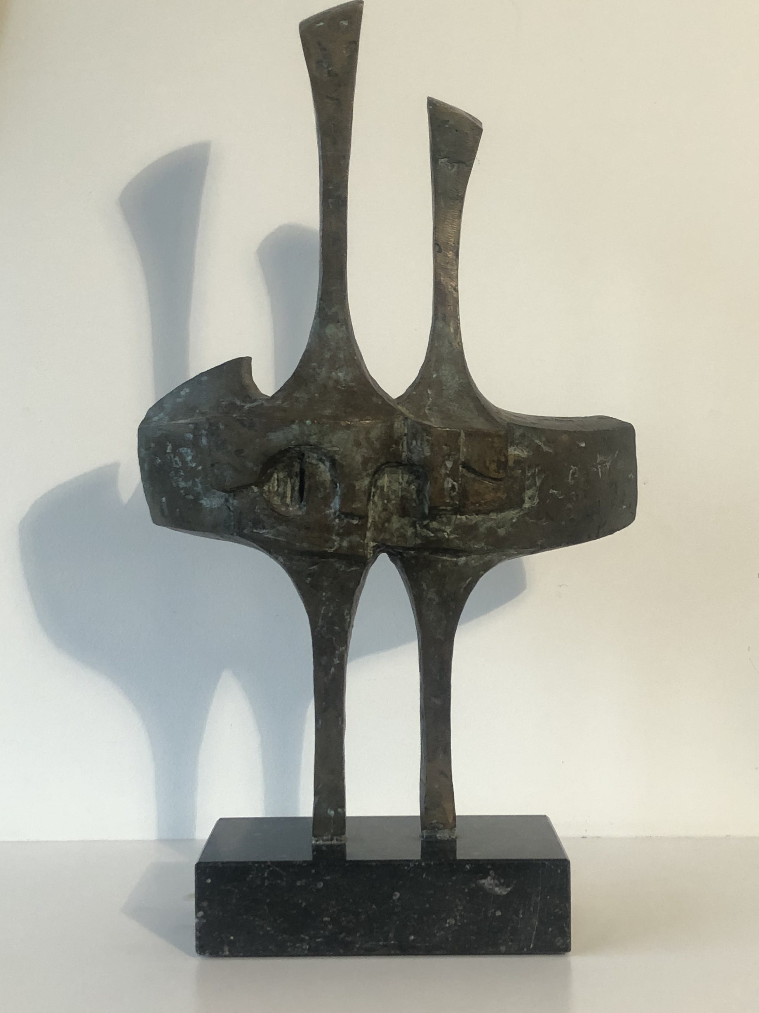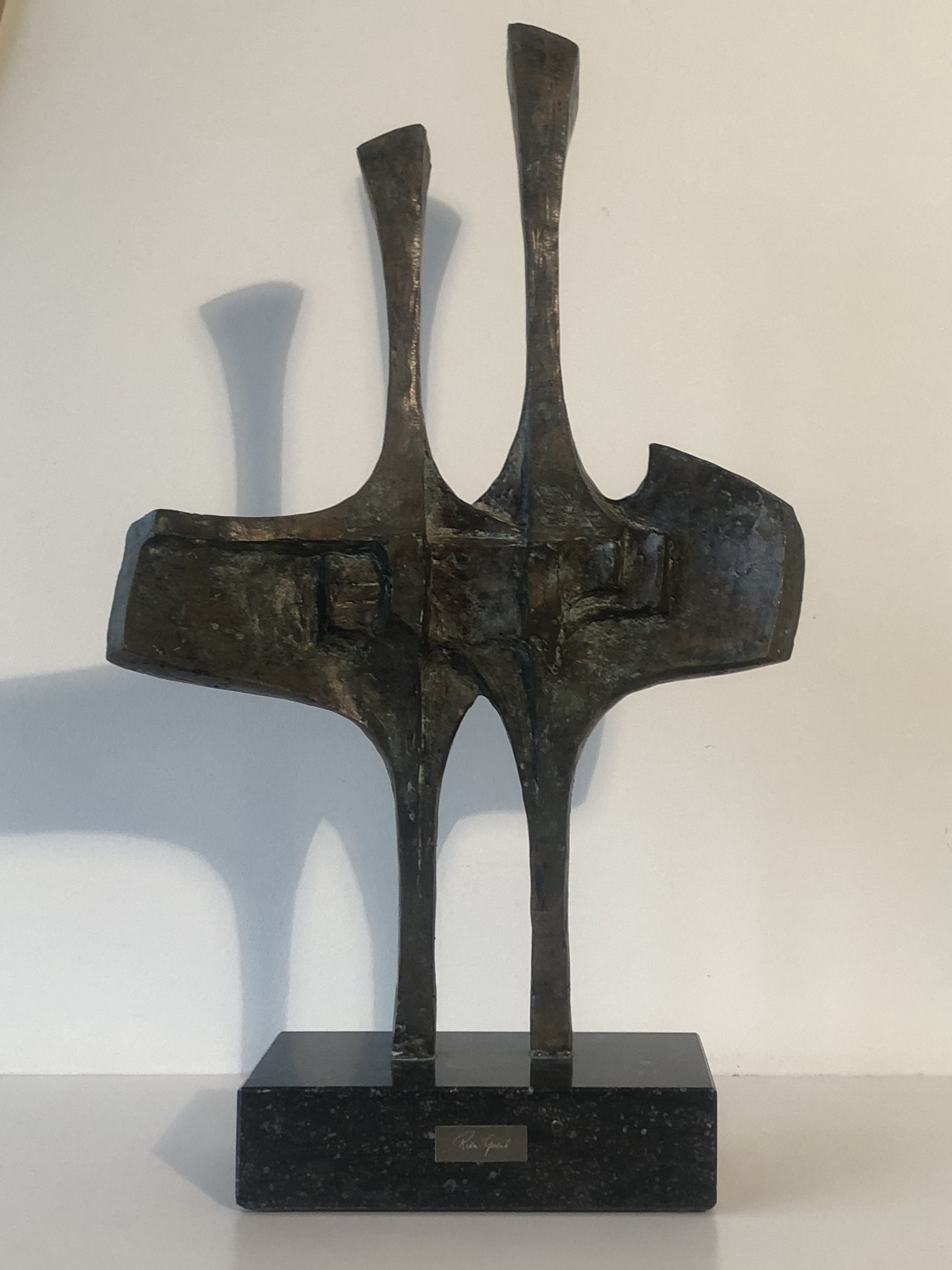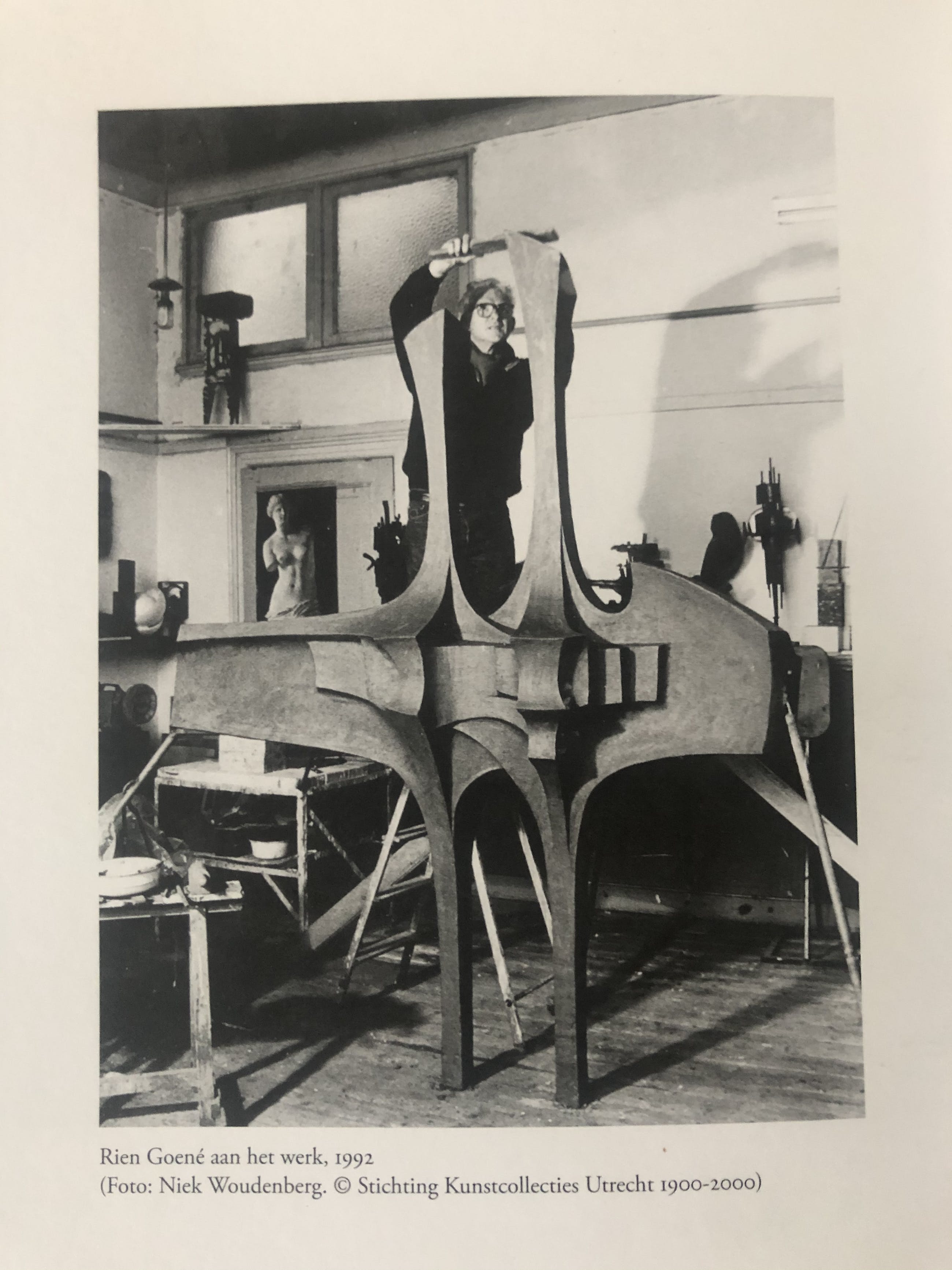 Brons plastiek van de bekende en veelzijdige Utrechtse kunstenaar Rien Goené. Het betreft het ontwerp van een opdracht voor de NS. De grote uitvoering (260x200x70) staat in de Arthur van Schendelstraat in Utrecht.