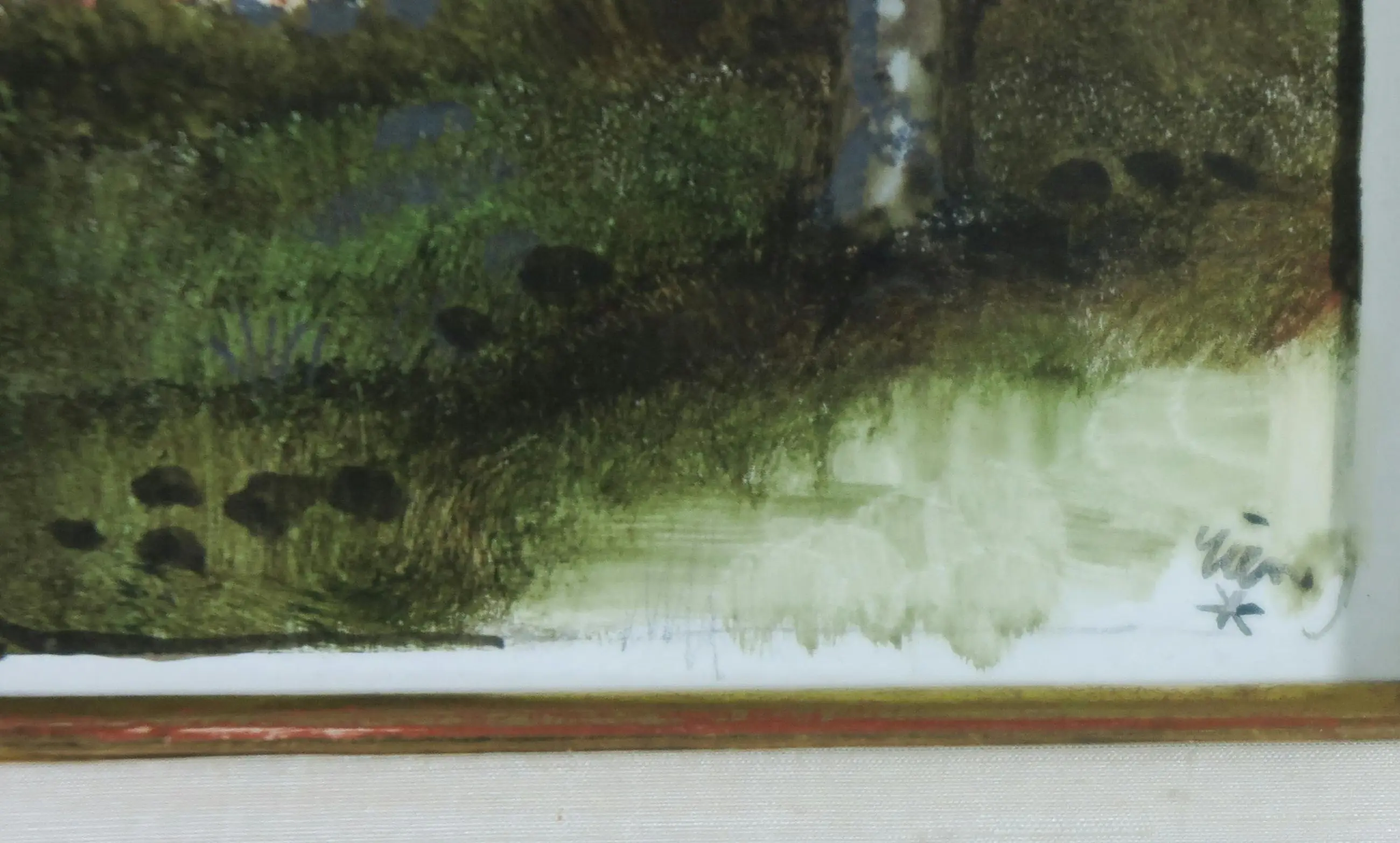 Passe-partout/lijsten: Beschadigingen aan lijsten worden niet beschreven. Indien een werk achter glas is ingelijst en het glas gebroken is, zal dit wel vermeld worden. Passe-partouts worden op geen enkele manier gegarandeerd en ook niet altijd meegezonden.