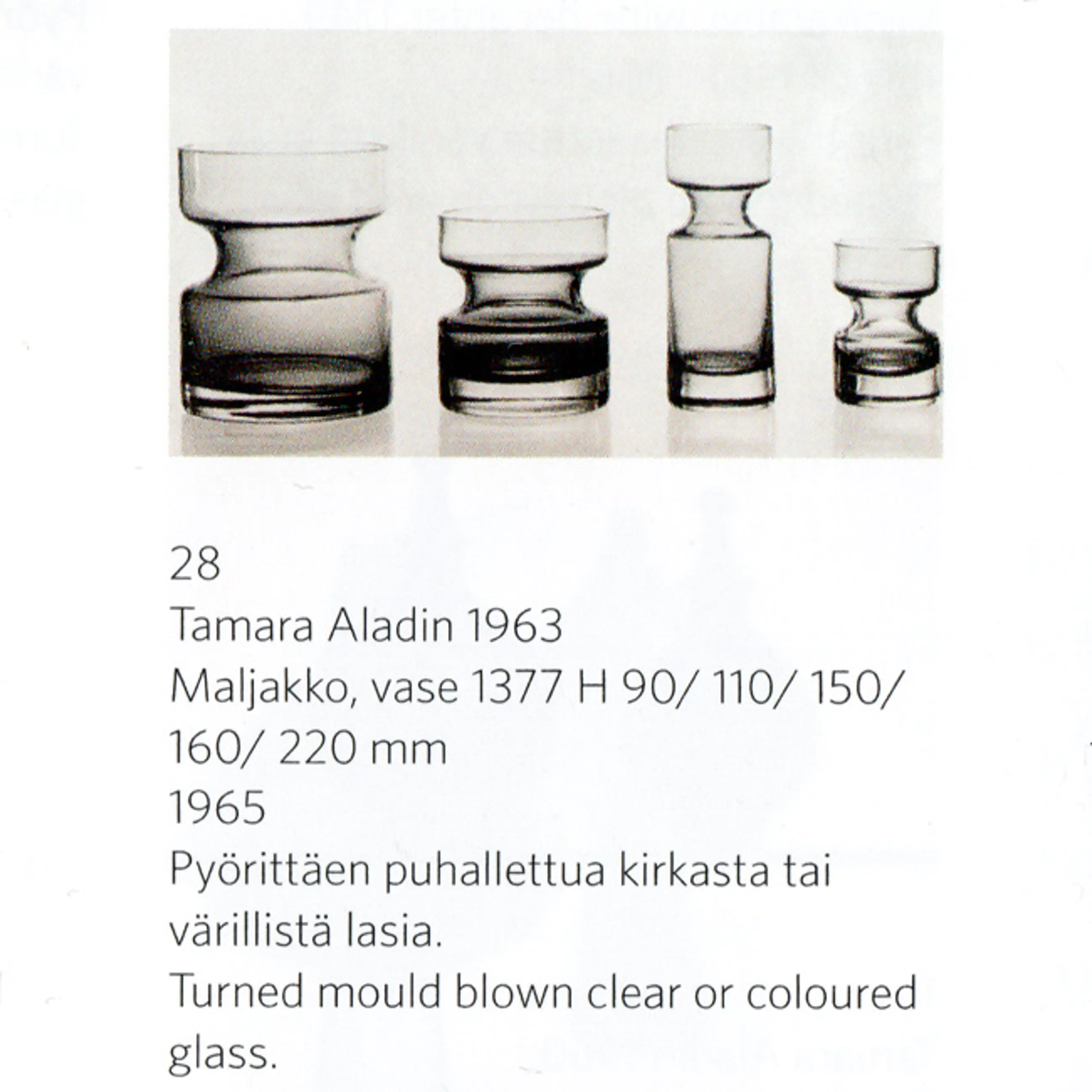 Een vaas door Tamara Aladin voor Riihimäen lasi, Finland 1963. Uit de Maljakko 1377 reeks, het model van 150mm hoog.