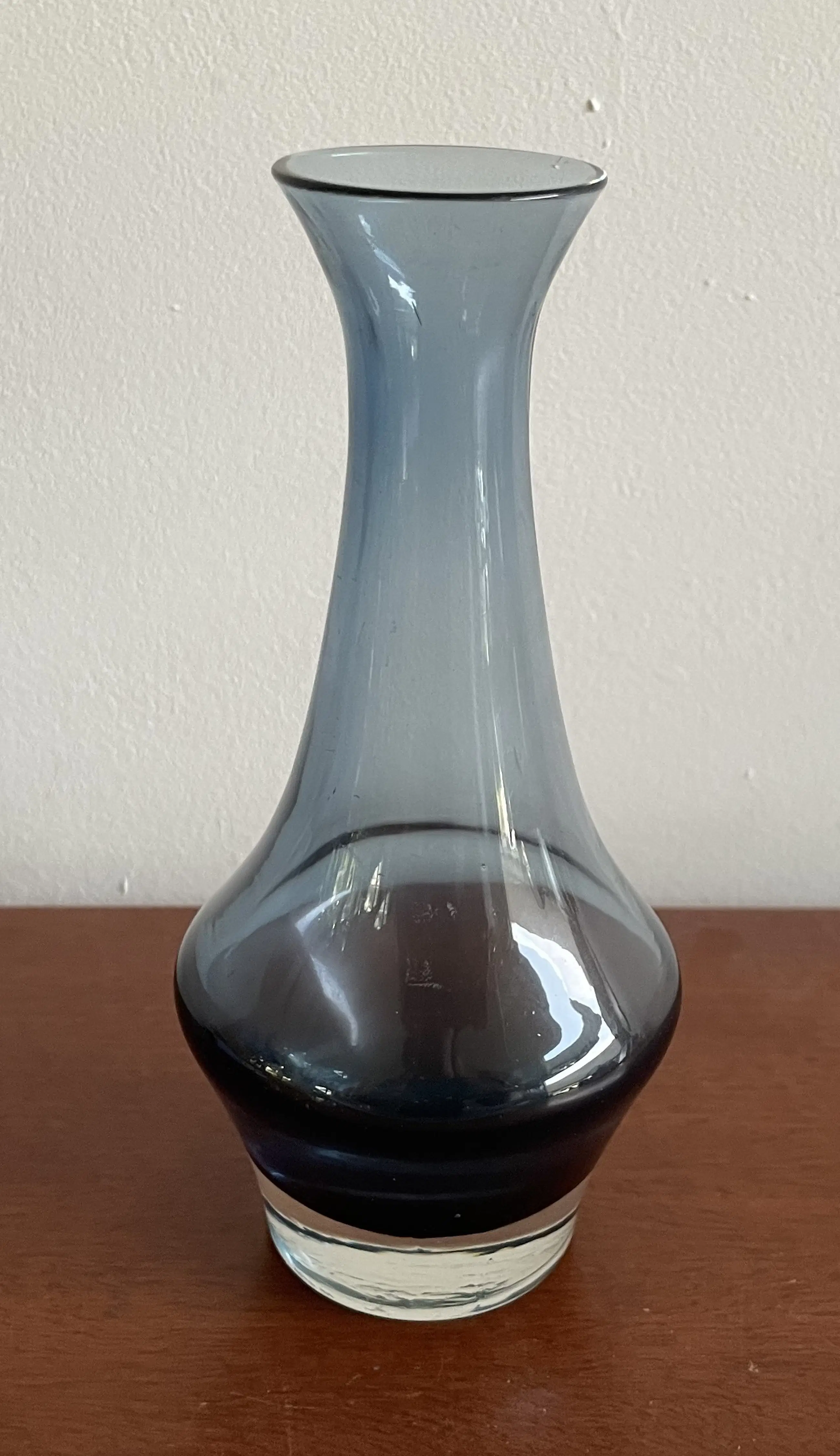 Vintage staalblauw glazen vaasje van Riihimäki. In perfecte conditie.