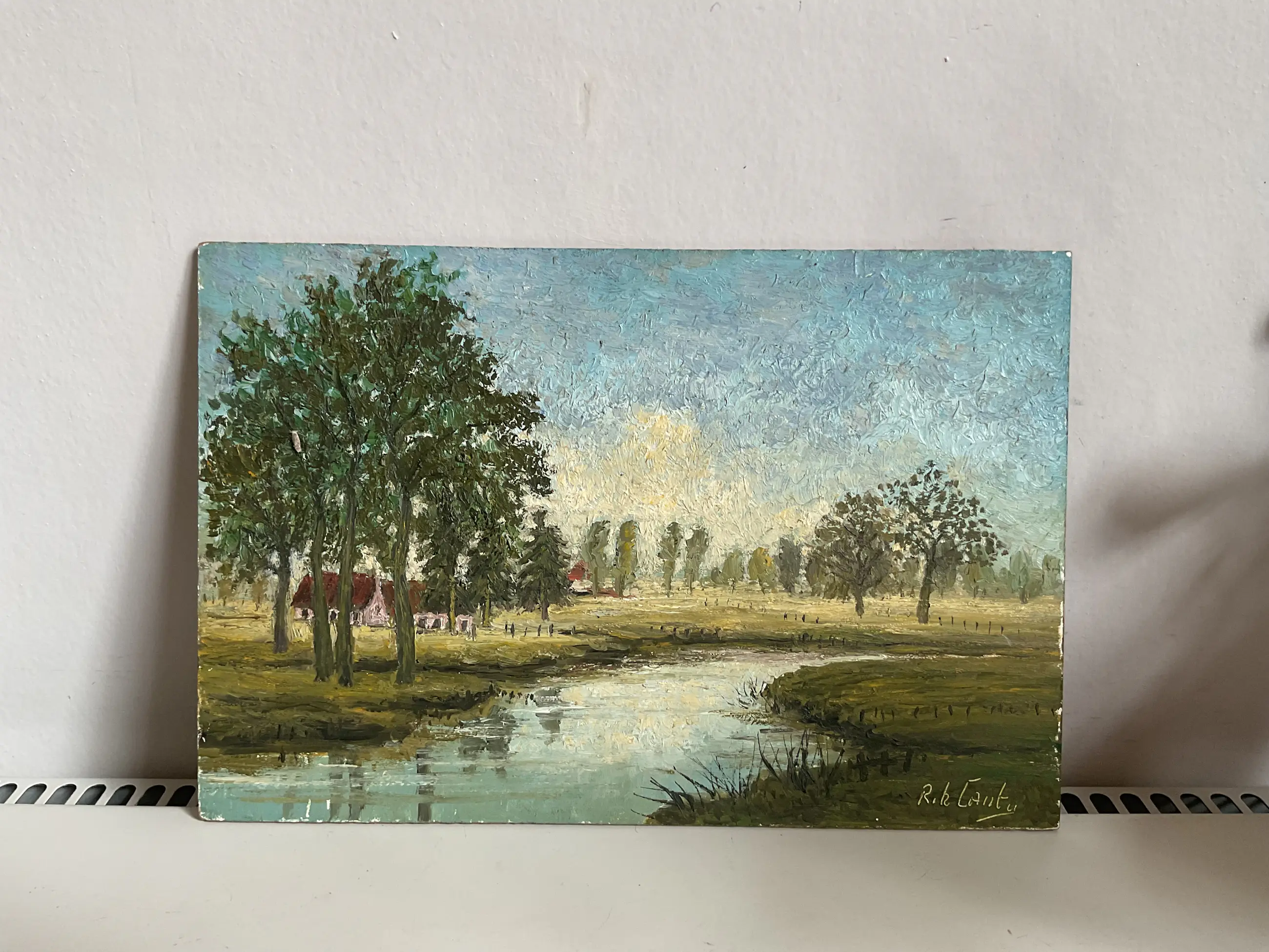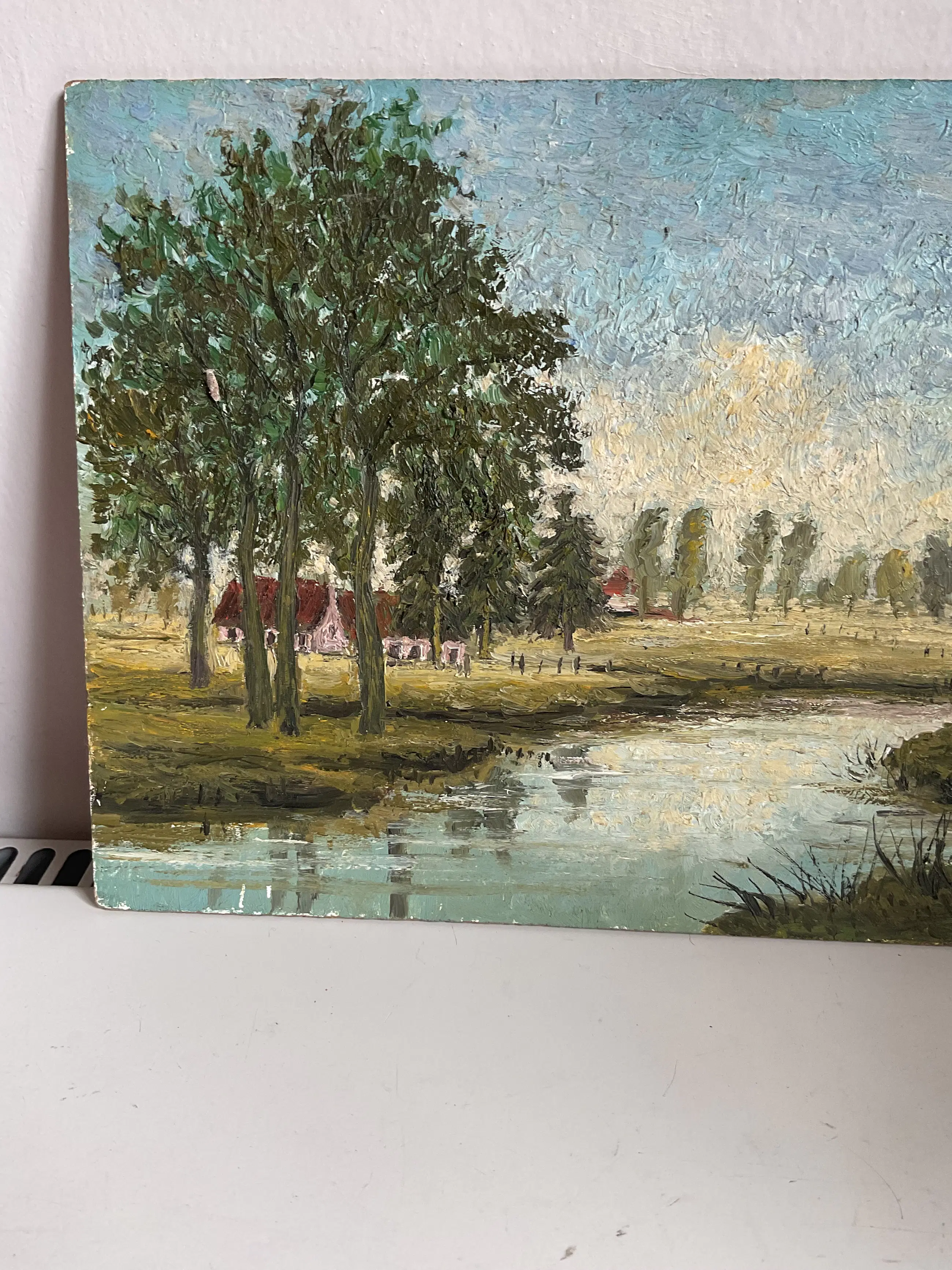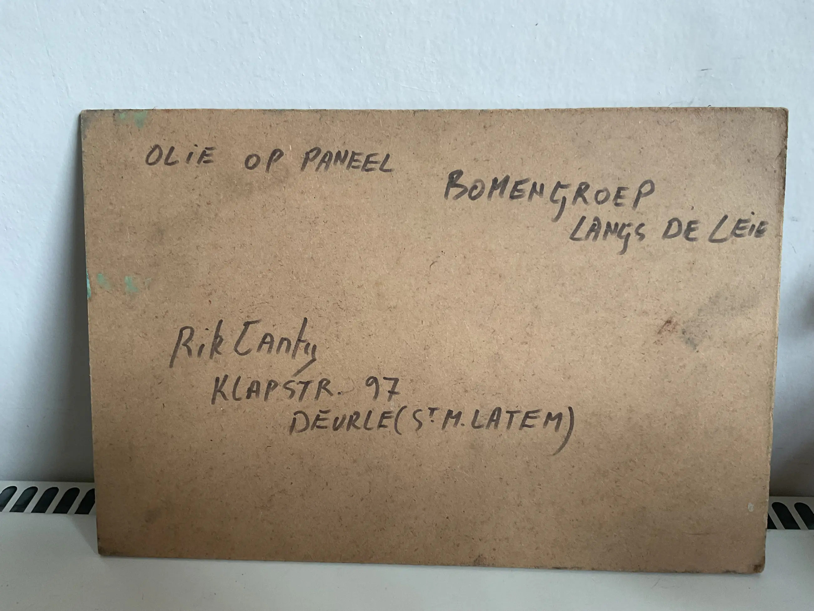 Klein werk van de schilder van de laat Latemse school Rik Canty Naam van het werk Bomengroep langs de Leie , geschilderd in Sint-Martens-Latem Hoogte 20 cm, breedte 30 cm. Handgesigneerd door de kunstenaar Het werk is niet ingekaderd Uitstekende staat!