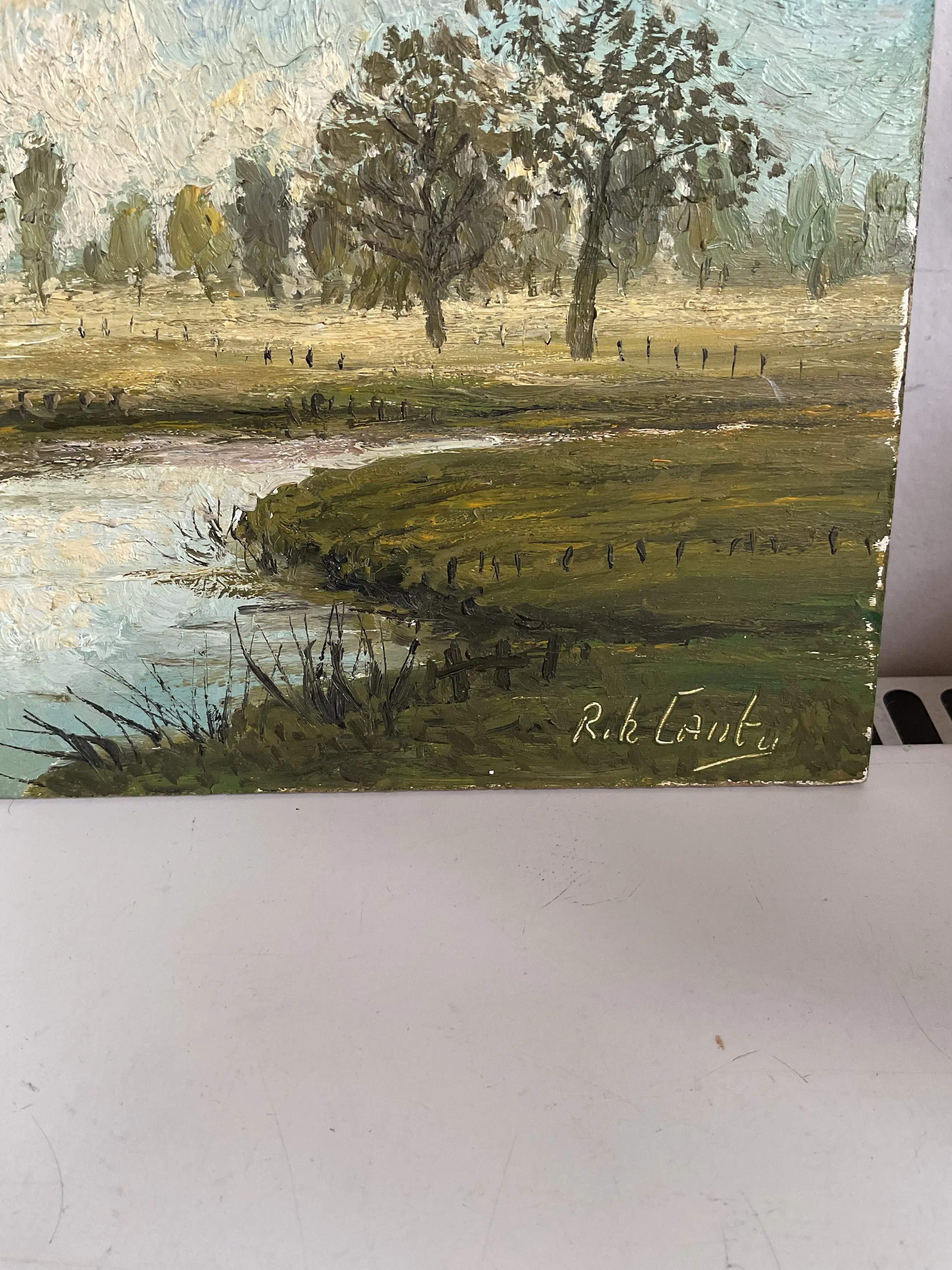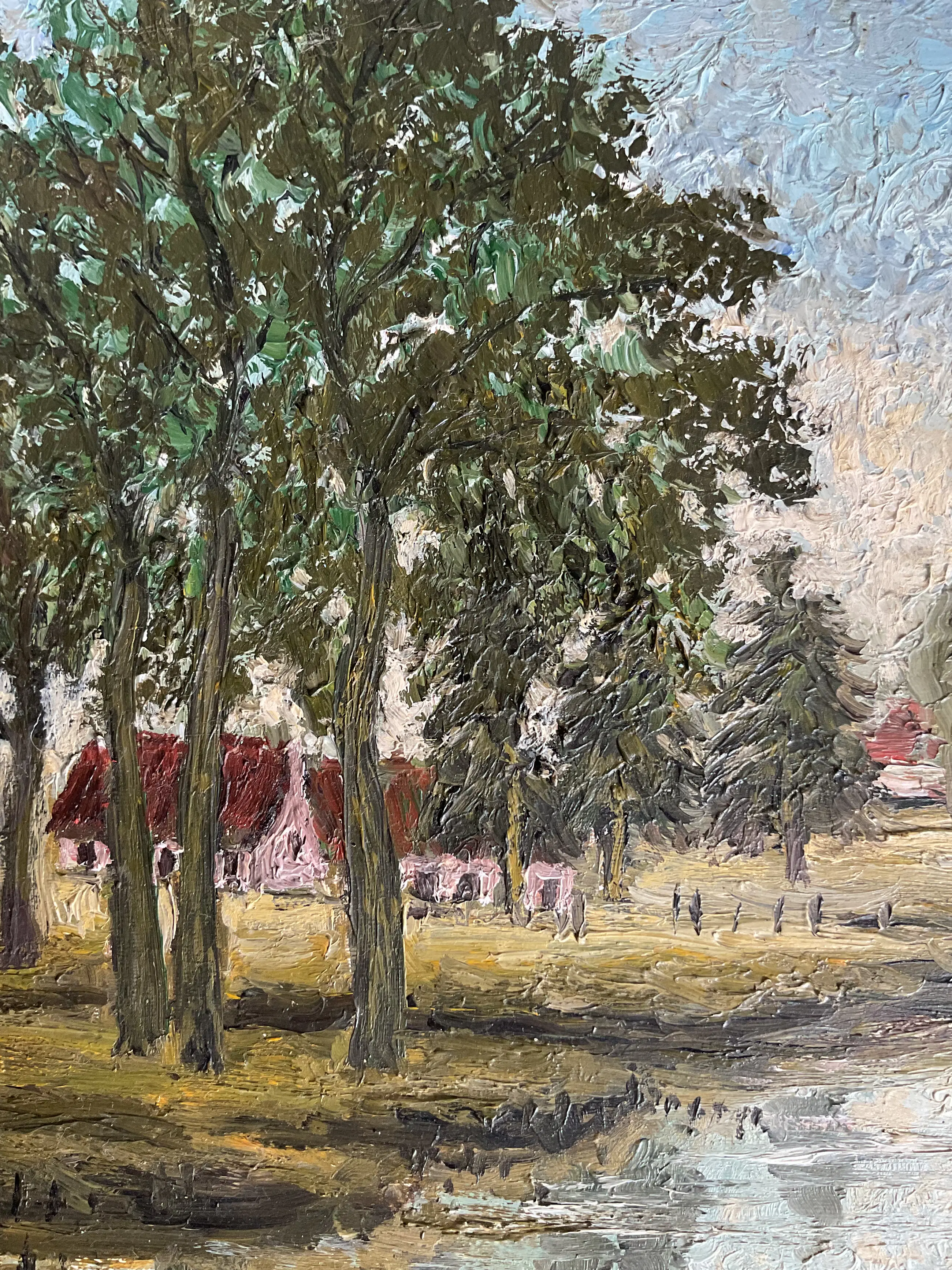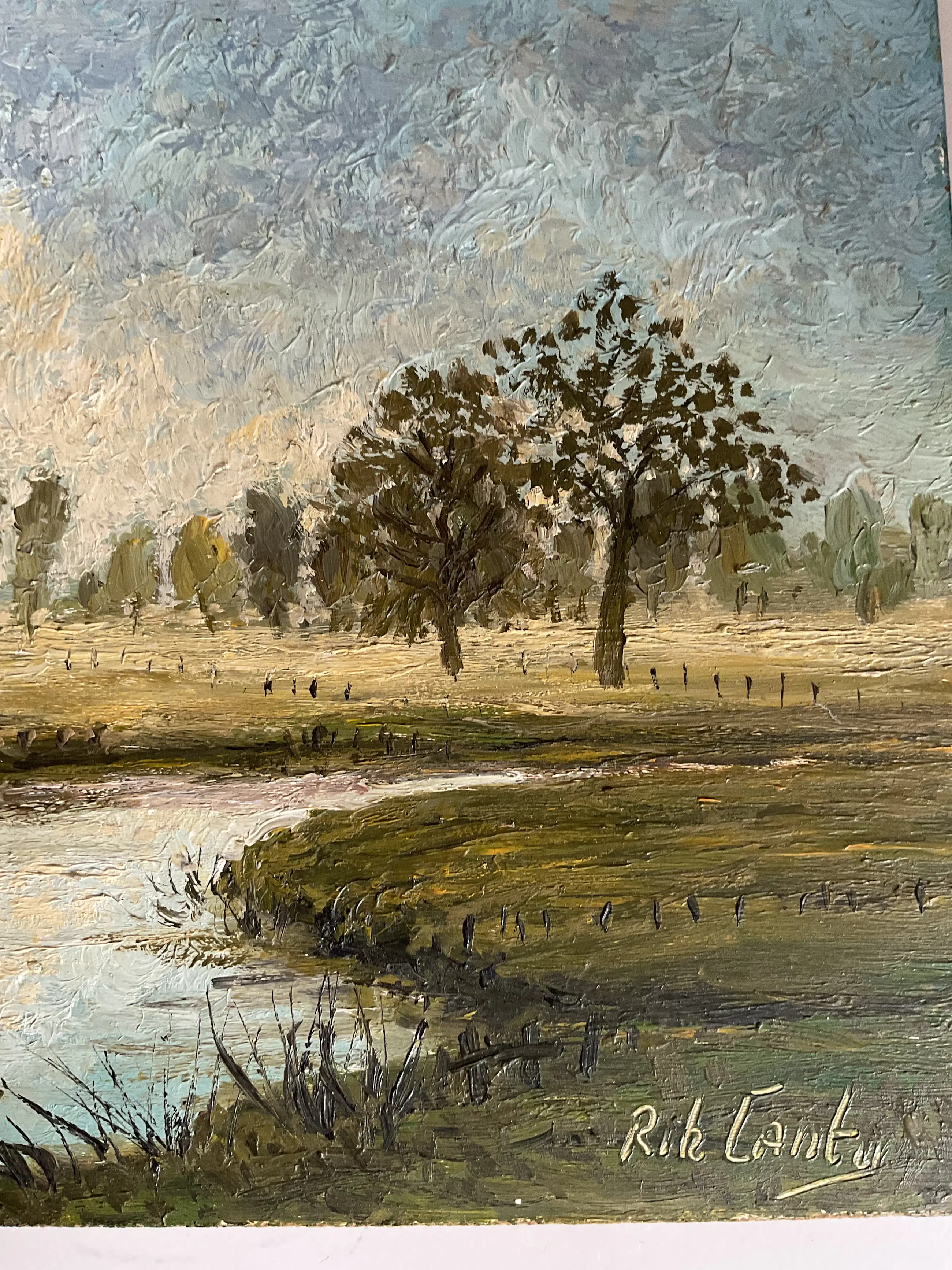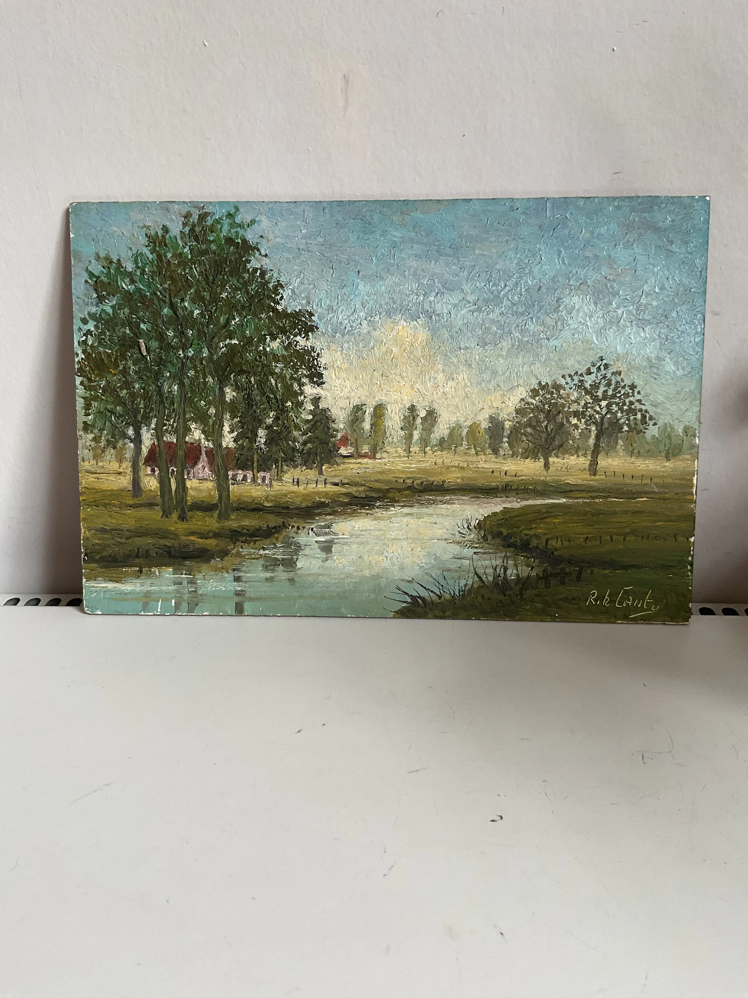 Klein werk van de schilder van de laat Latemse school Rik Canty Naam van het werk Bomengroep langs de Leie , geschilderd in Sint-Martens-Latem Hoogte 20 cm, breedte 30 cm. Handgesigneerd door de kunstenaar Het werk is niet ingekaderd Uitstekende staat!