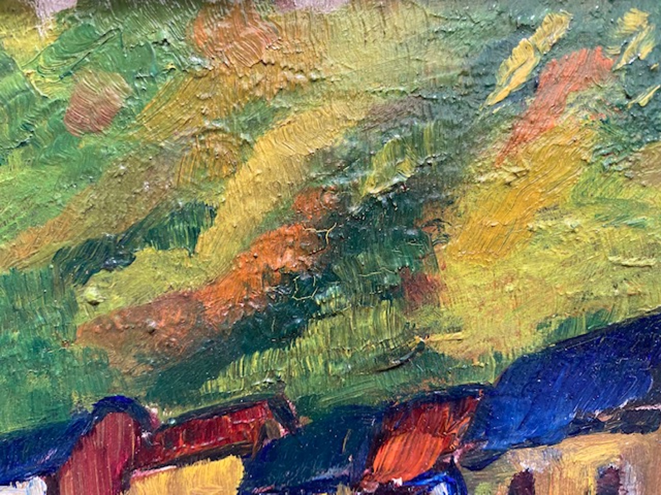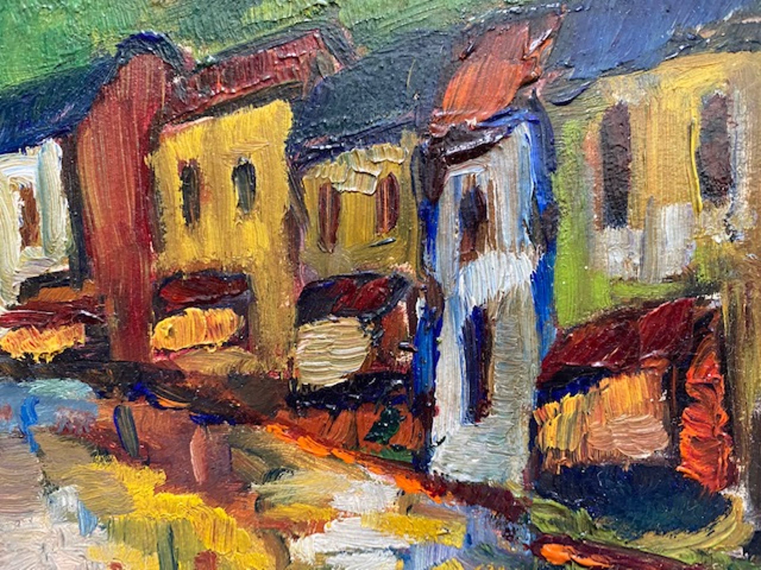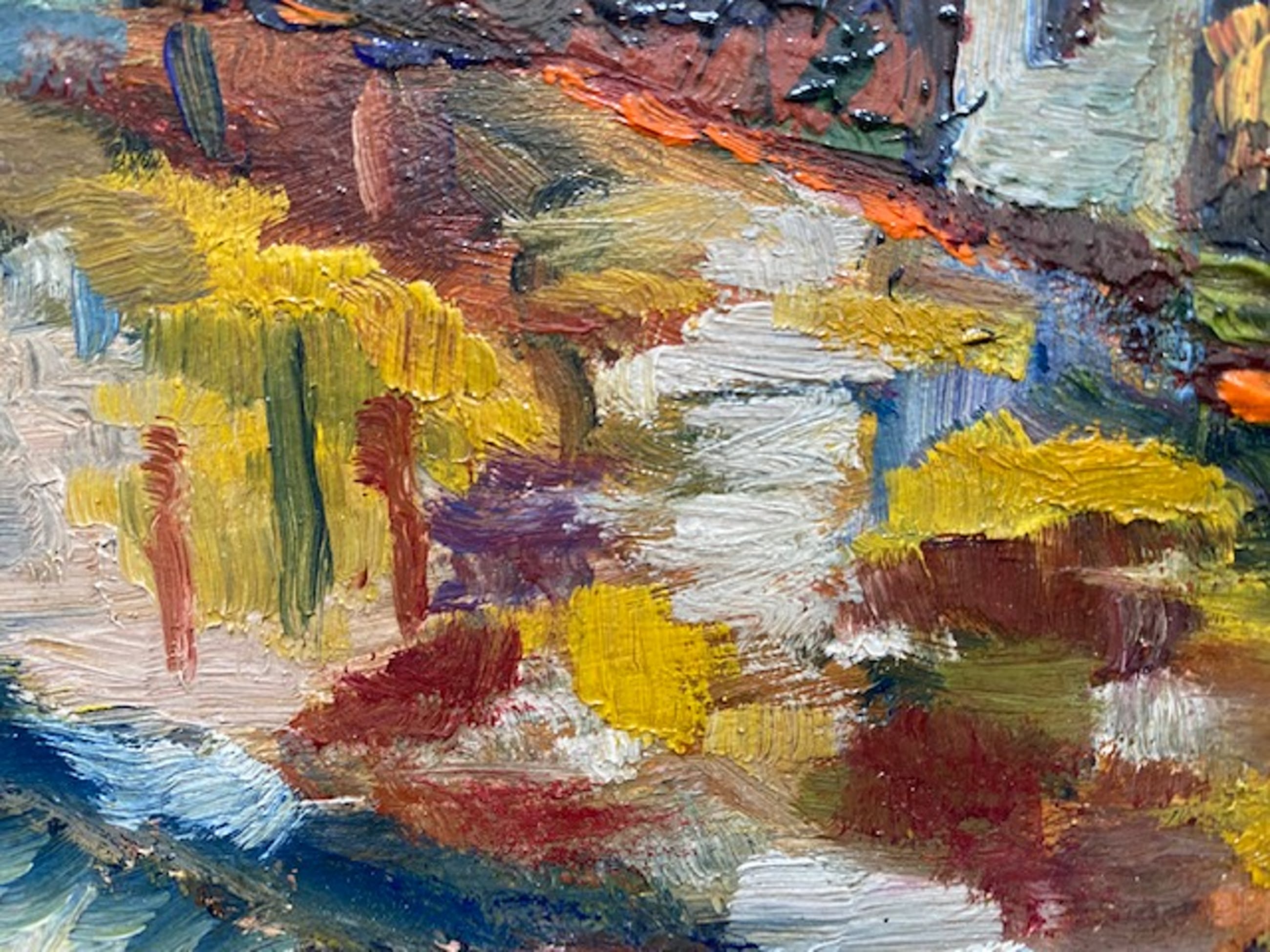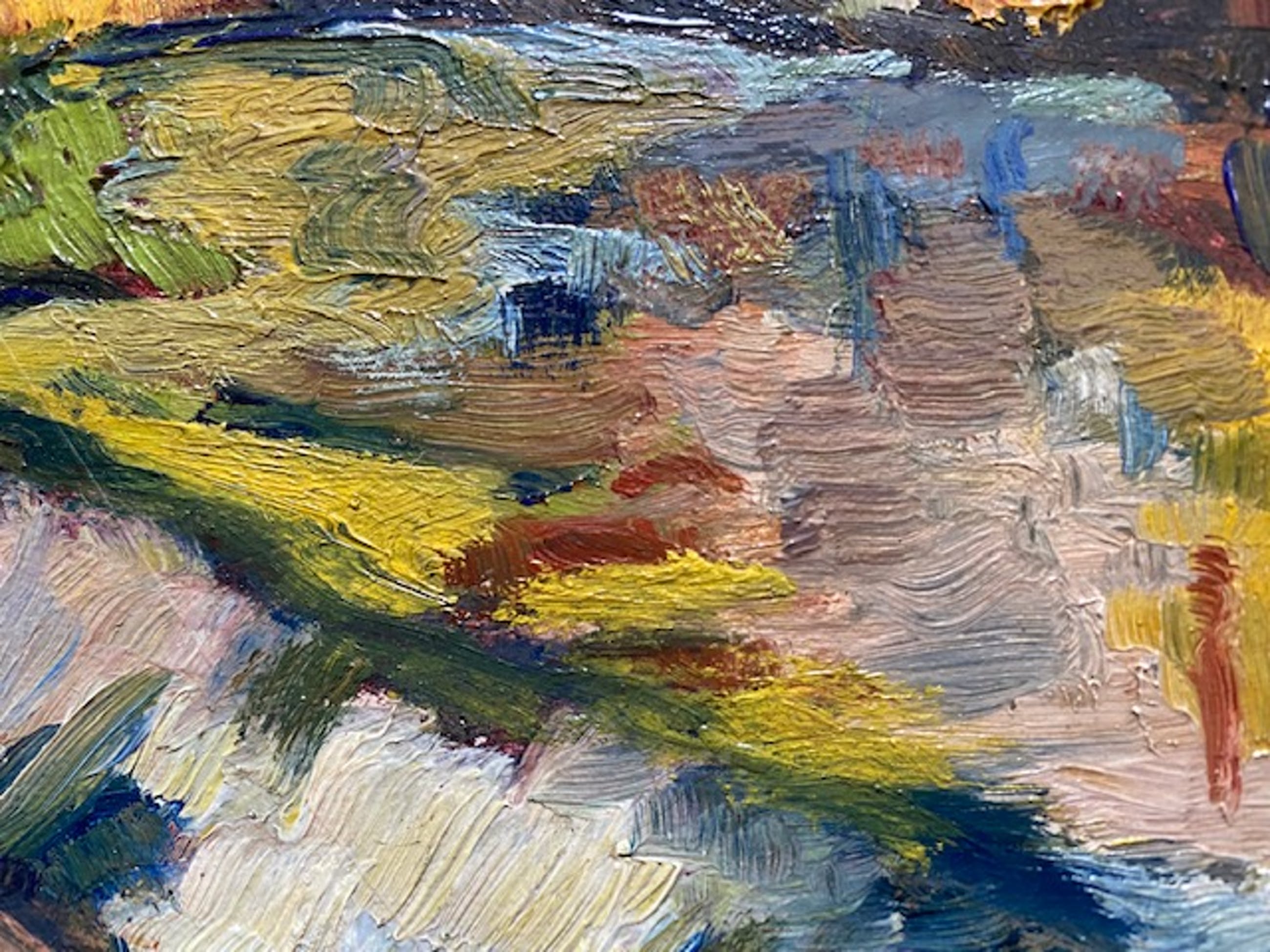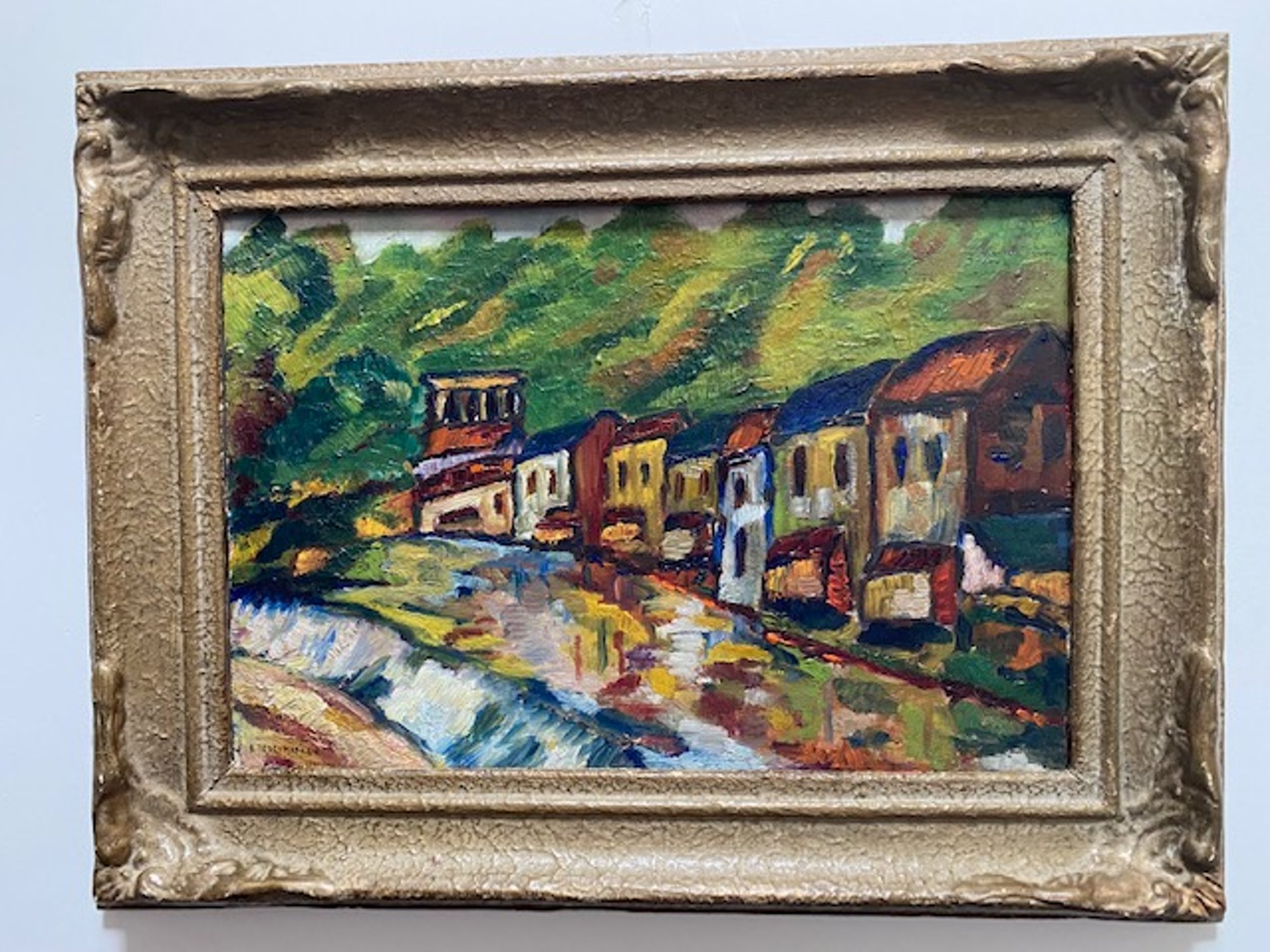 Rik De Reymaeker kwam uit een kunstzinnige familie met o.a. Victor zijn schilderende broer. In de buurt van Tervuren, waar hij geboren is en een groot deel van zijn leven doorbracht, schilderde hij dit kleurrijk dorpsgezicht aan een rivier. Rik stelde dit in 1943 tentoon in "Galerie d'Art Vebe" in Brussel. Hij staat ook vermeld in "Twee eeuwen signaturen van Belgische kunstenaars.