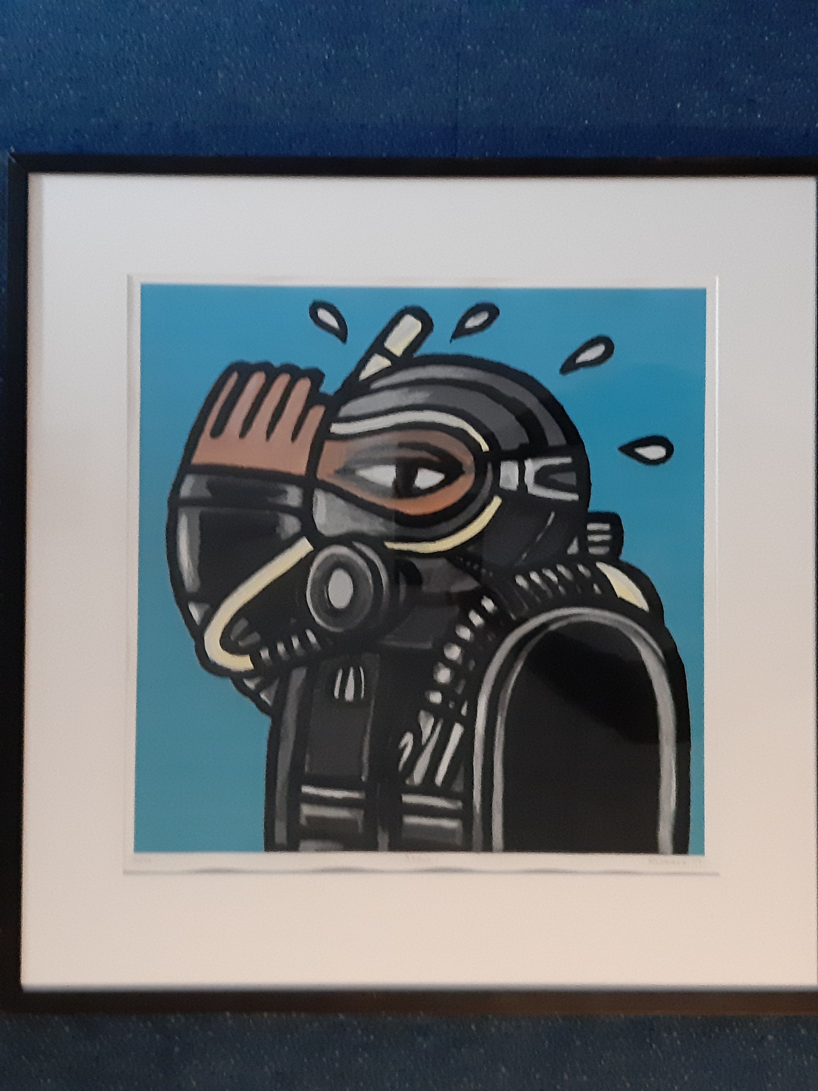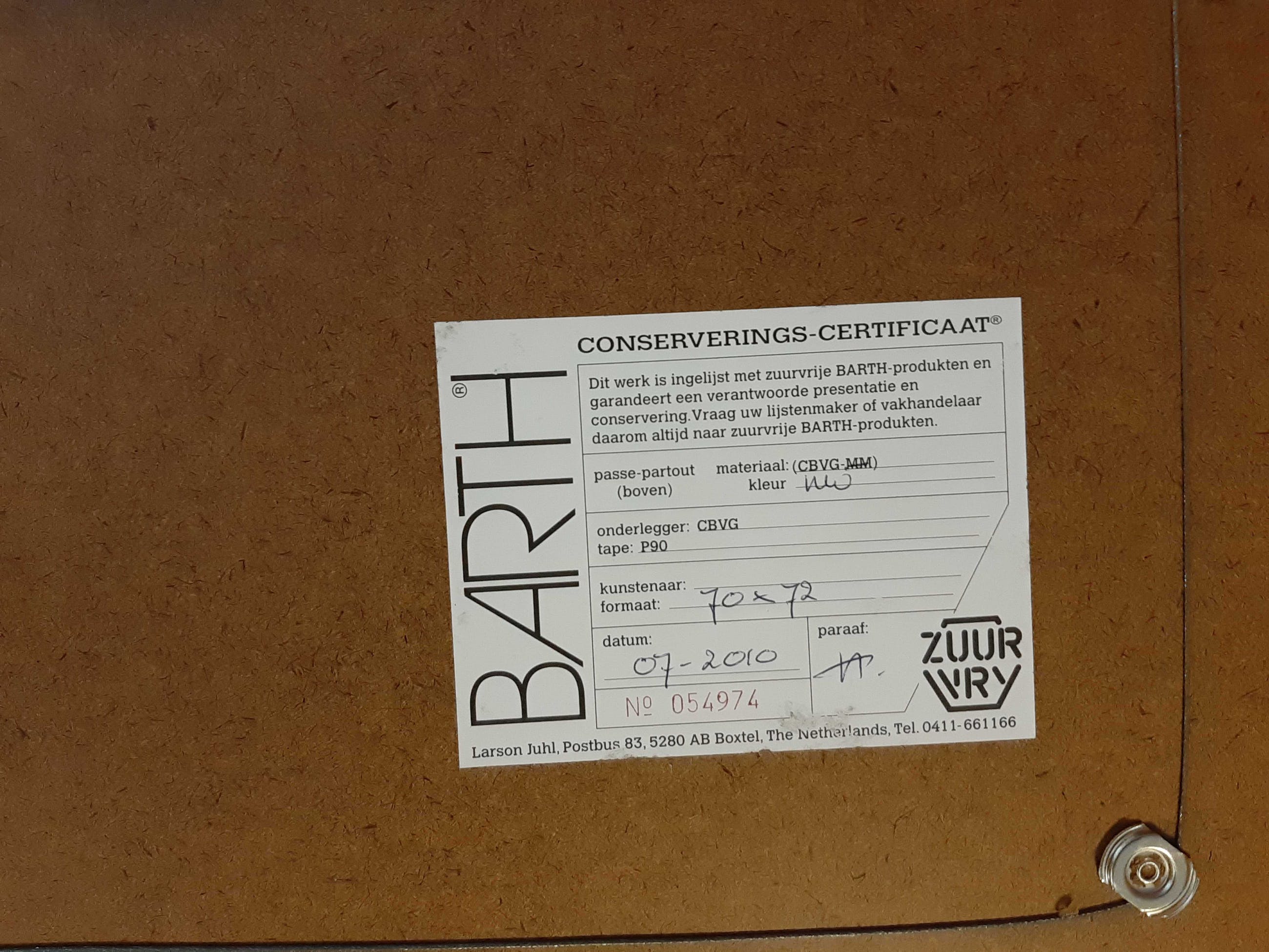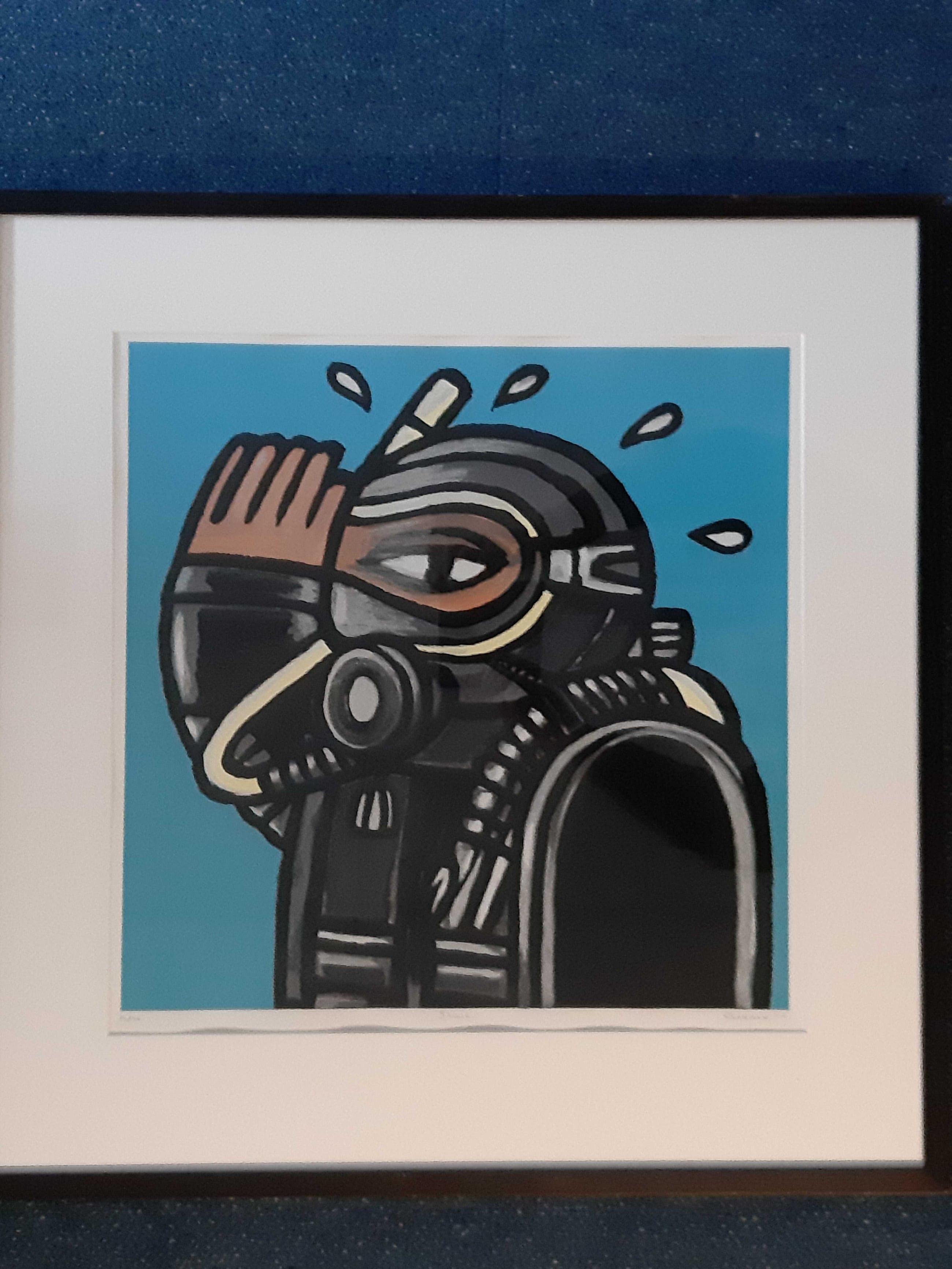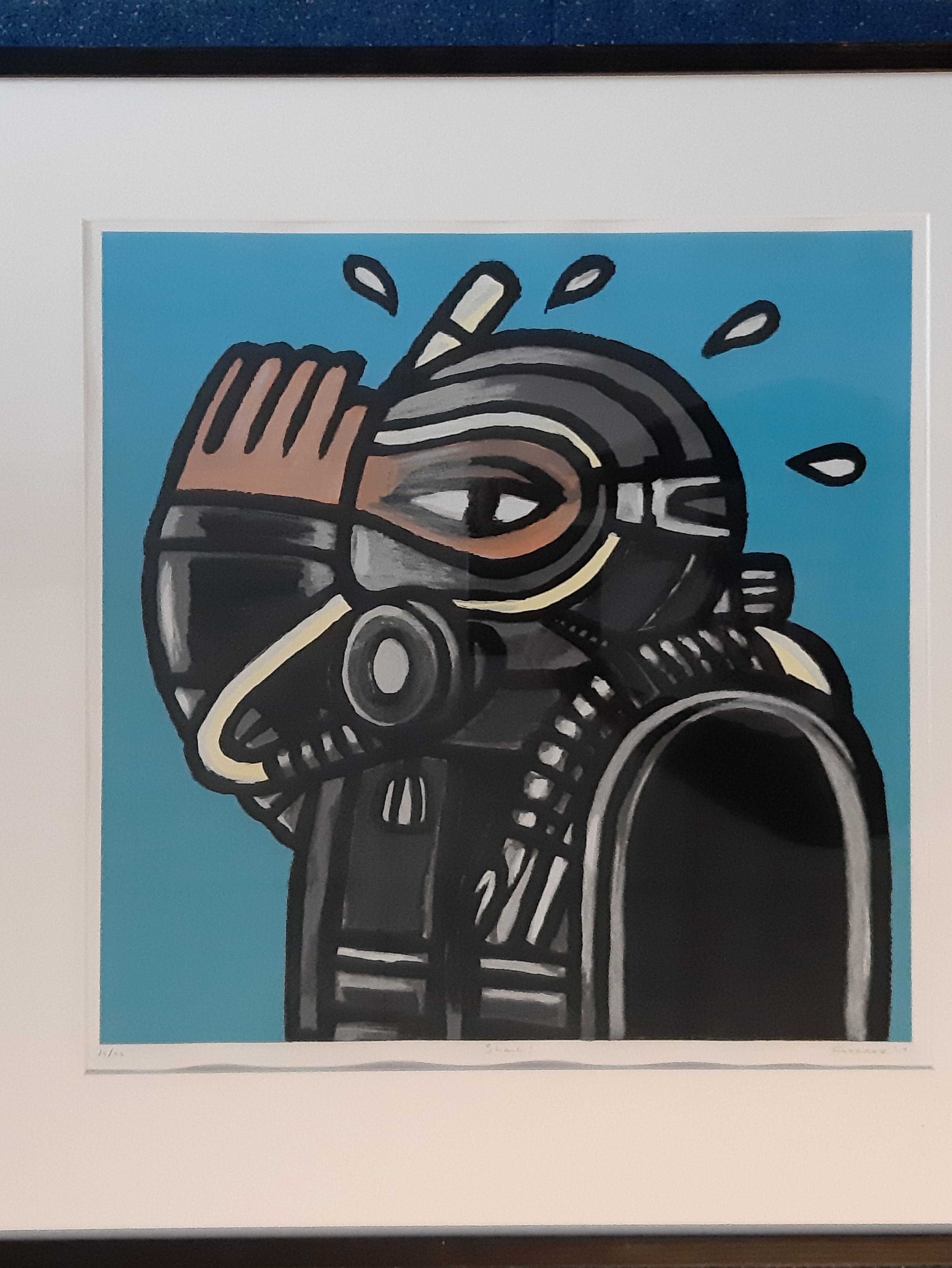 Grote zeefdruk van Rik Gorree in zijn karakteristieke stijl. Genummerde oplage, nr 14/40, handgesigneerd. In een Barth lijst achter transarant glas en in ppt 9/9/9/11 cm.