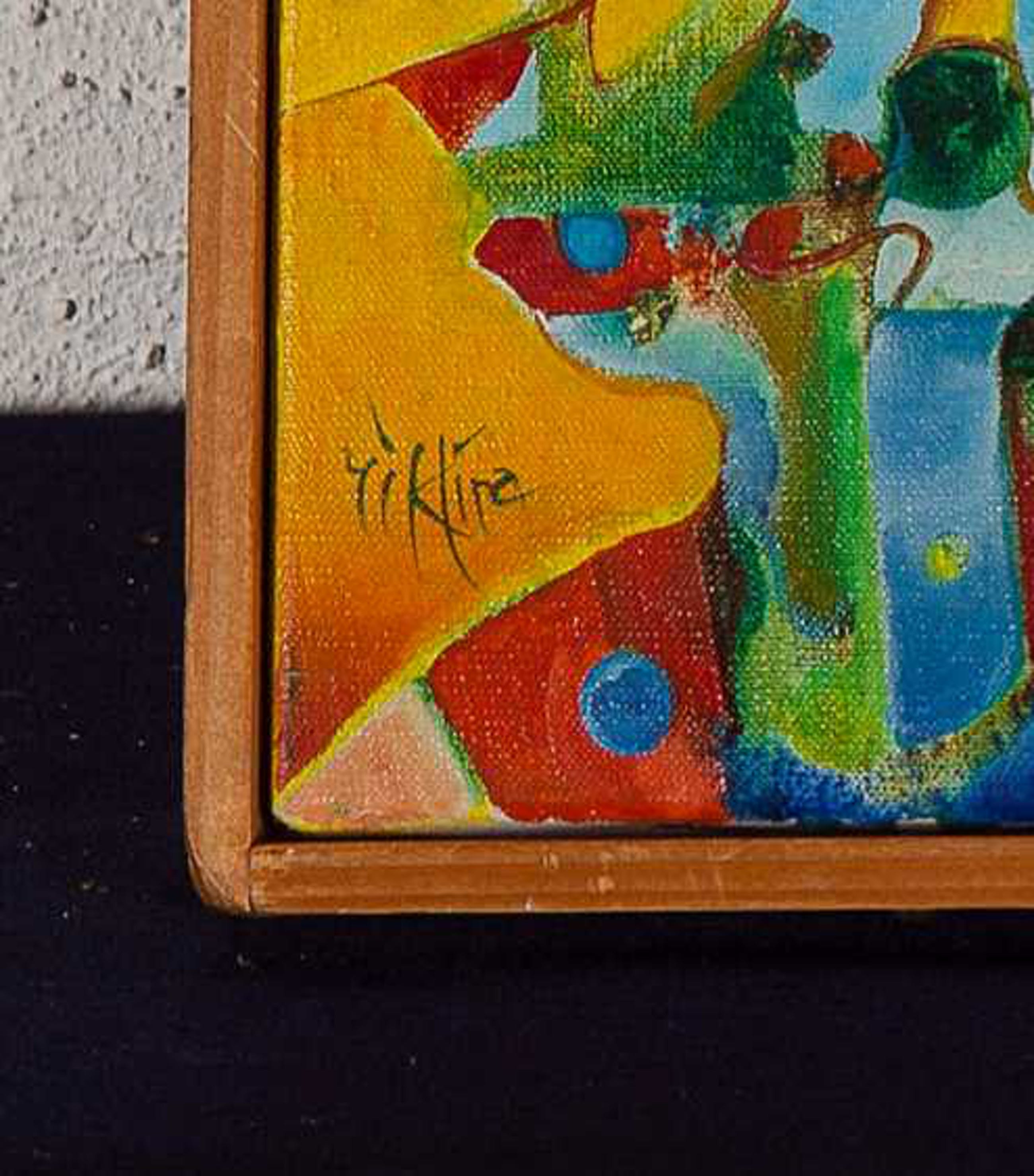 | Het werk verkeert in redelijke / goede staat. Er zitten enkele zeer lichte bobbels en een flauwe afdruk van het spieraam in het doek. Rechtsonder zit een flinke buts in de lijst. | |