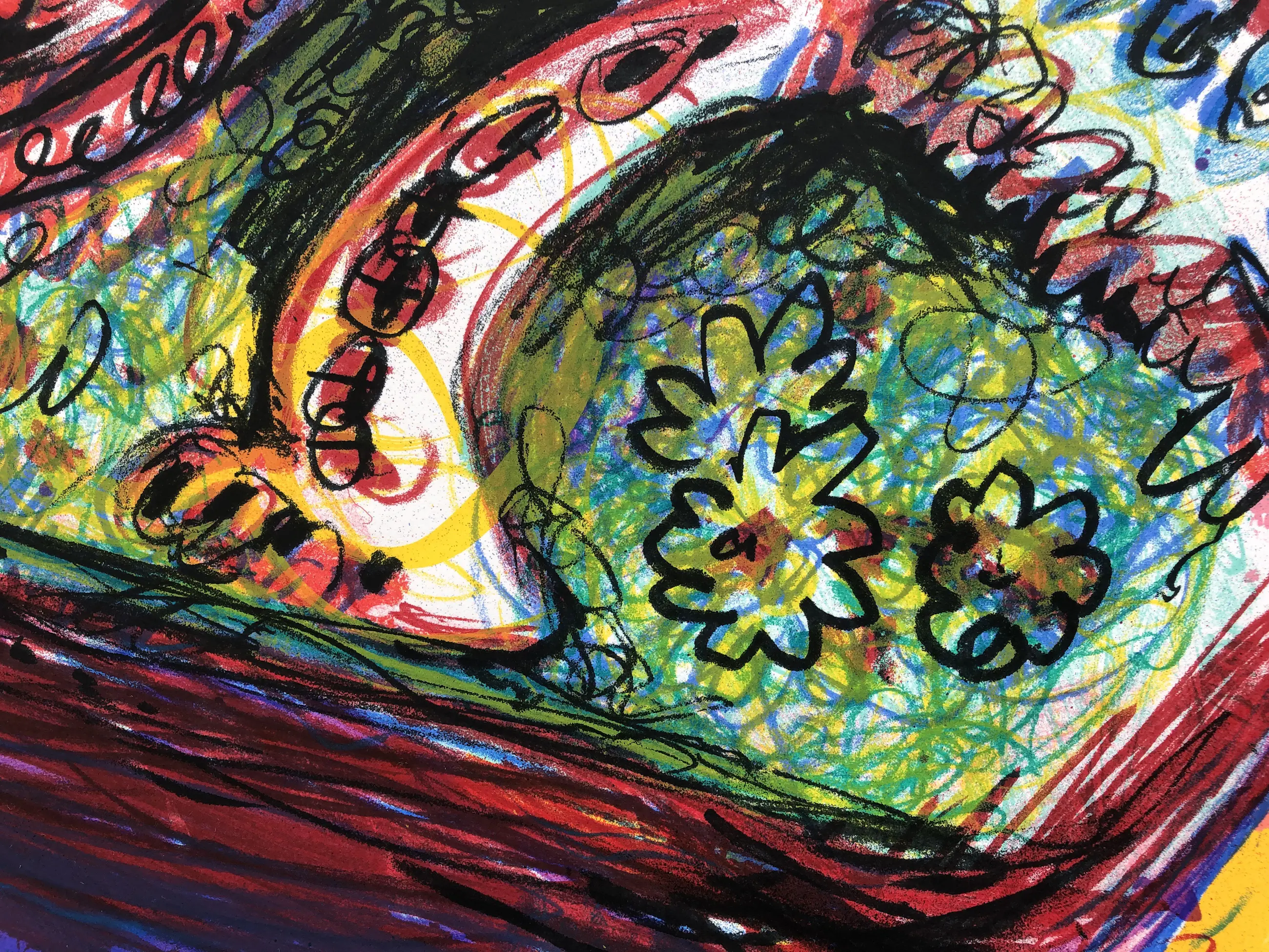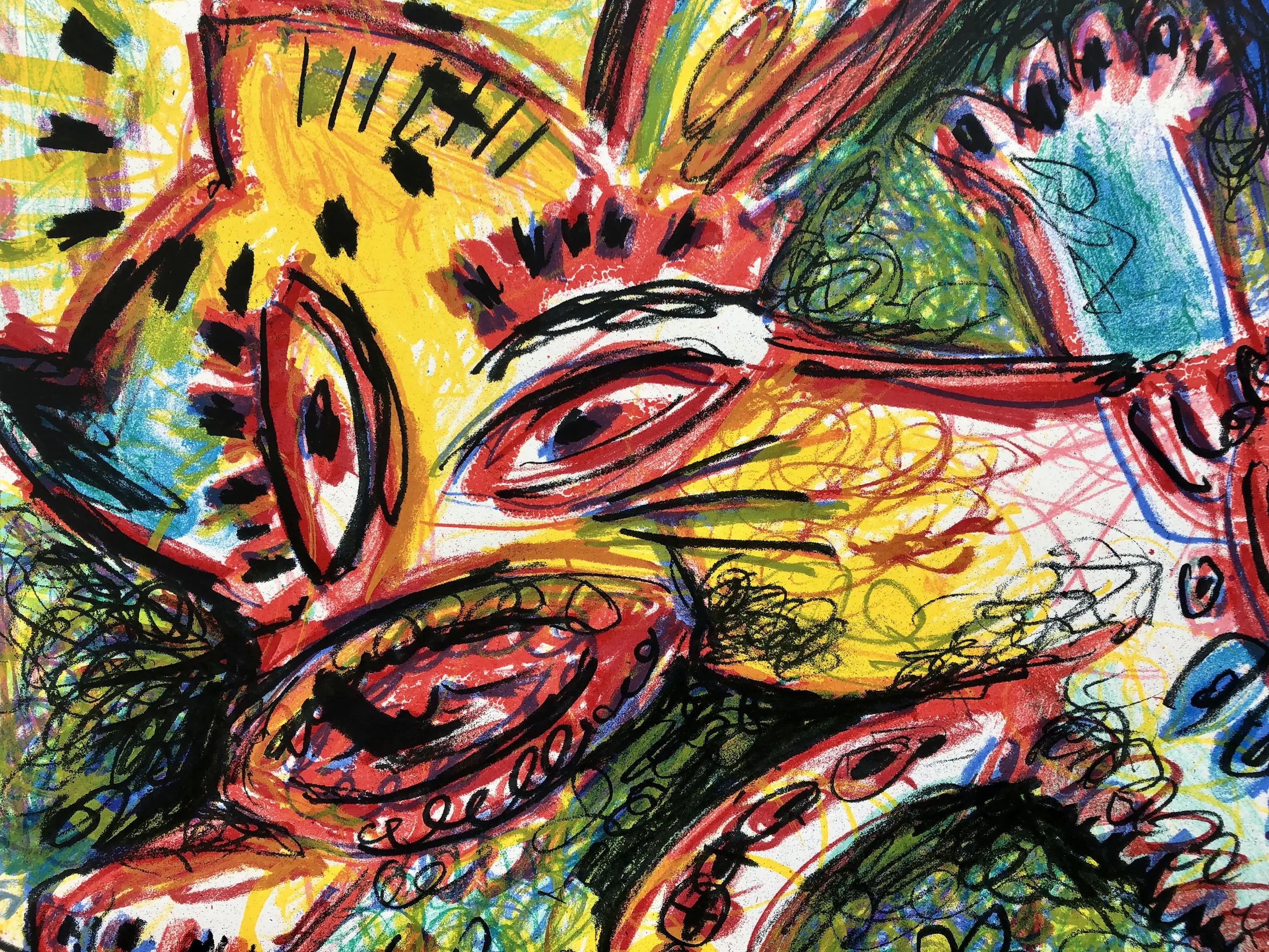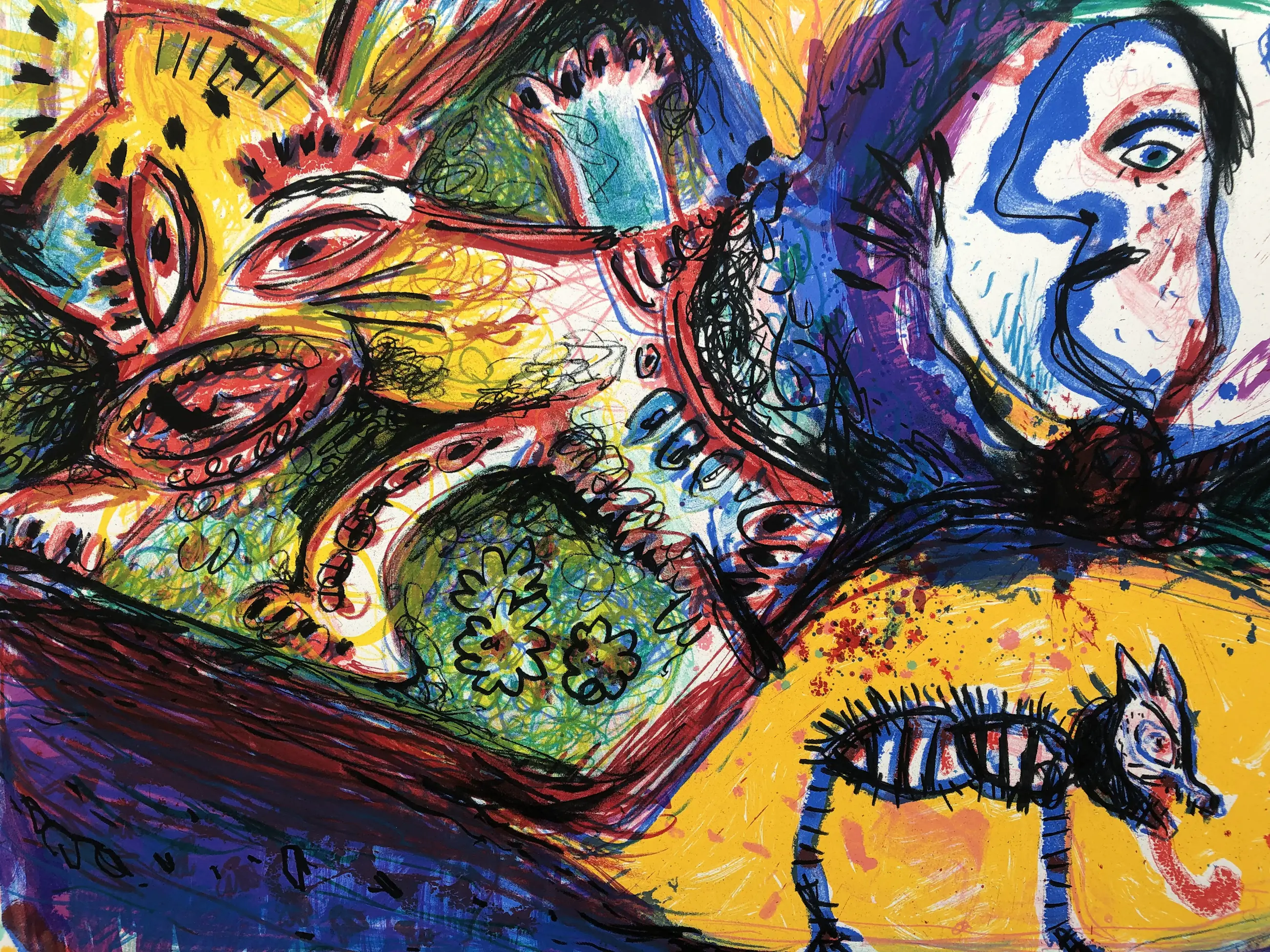 Karakteristiek krachtige litho in Cobrastijl. Intensieve kleurstelling.