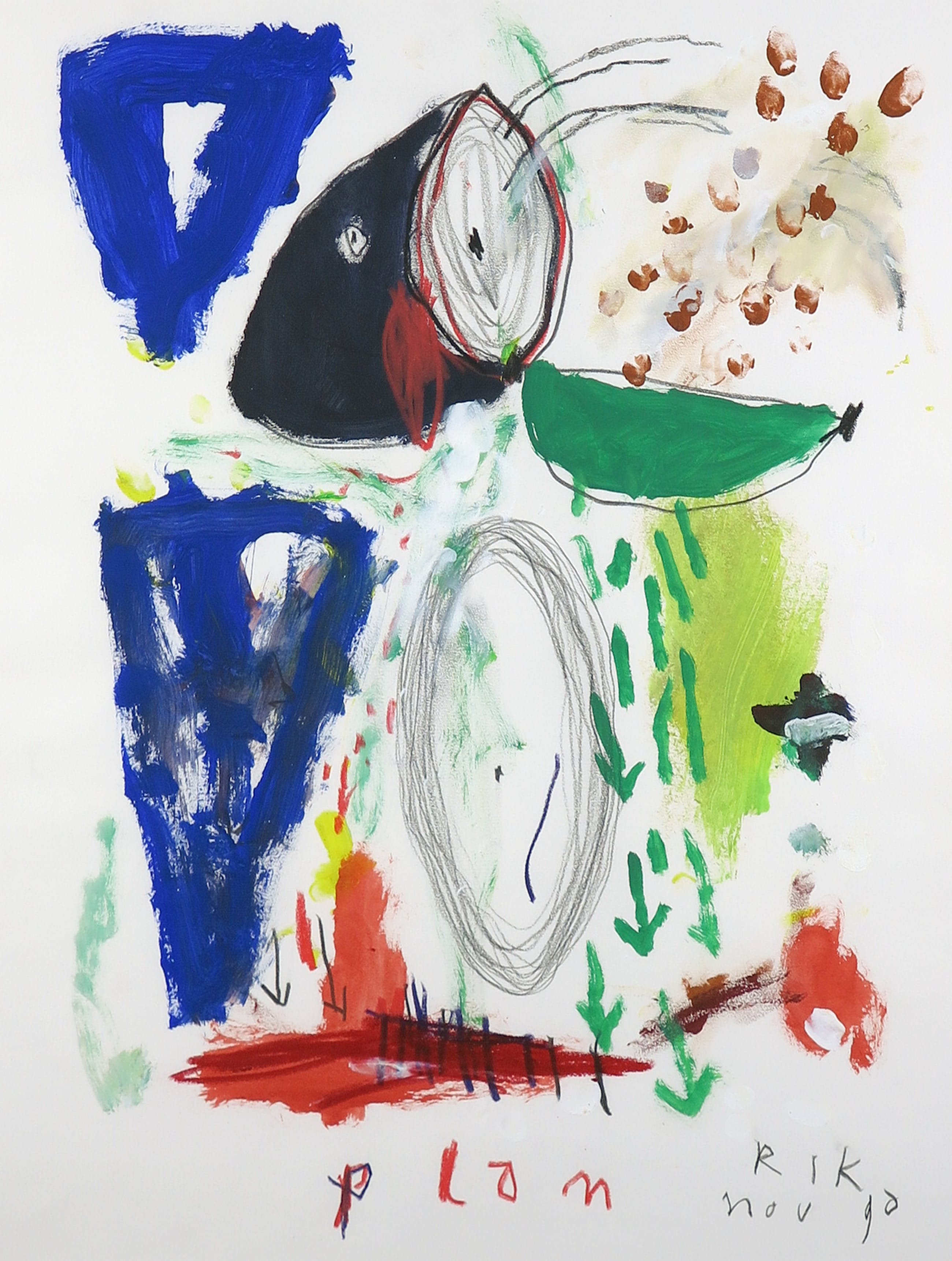 Gemengde techniek: Gouache, (pastel)krijt en potlood.