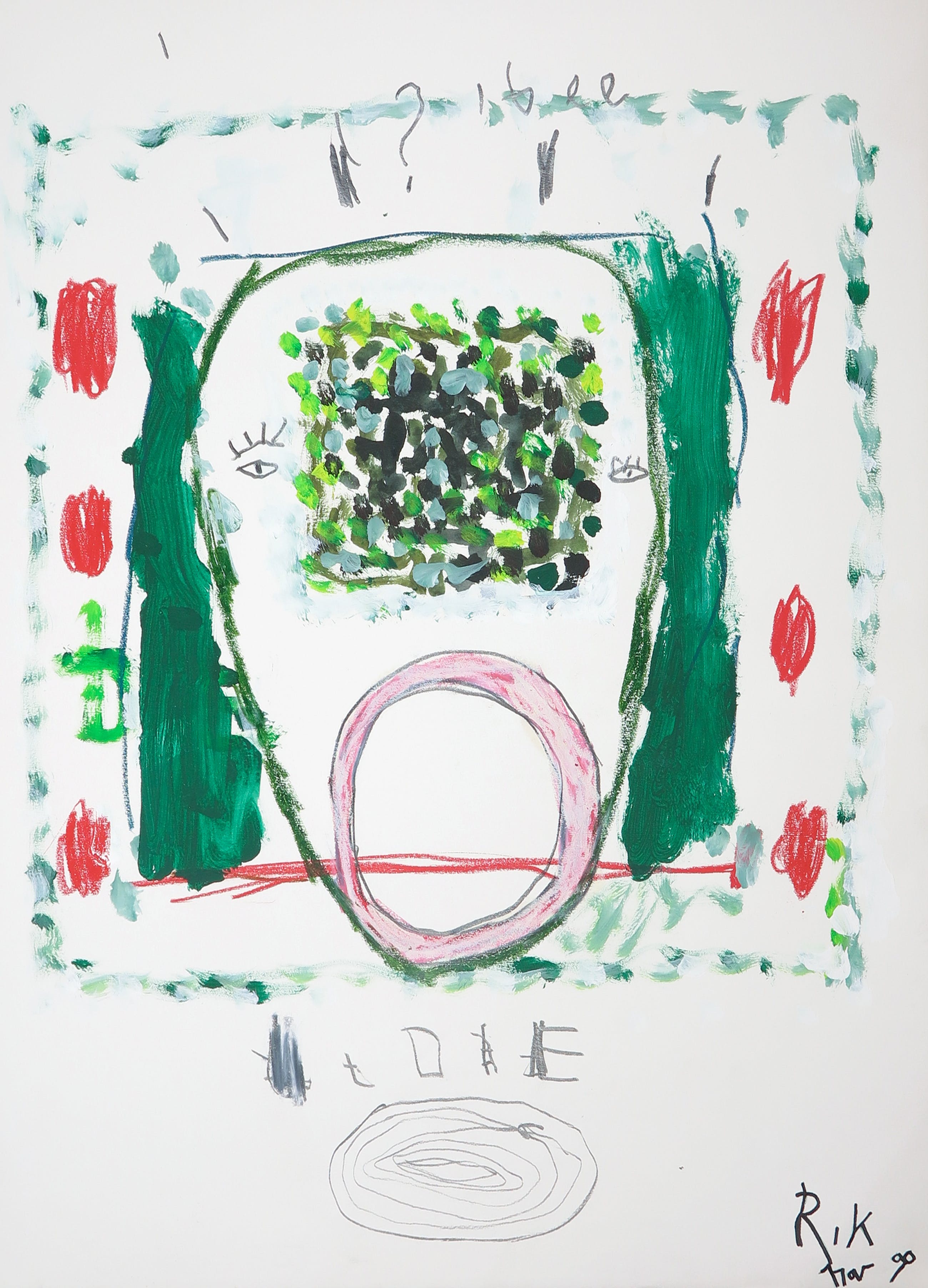 Gemengde techniek: Gouache, (pastel)krijt en potlood.