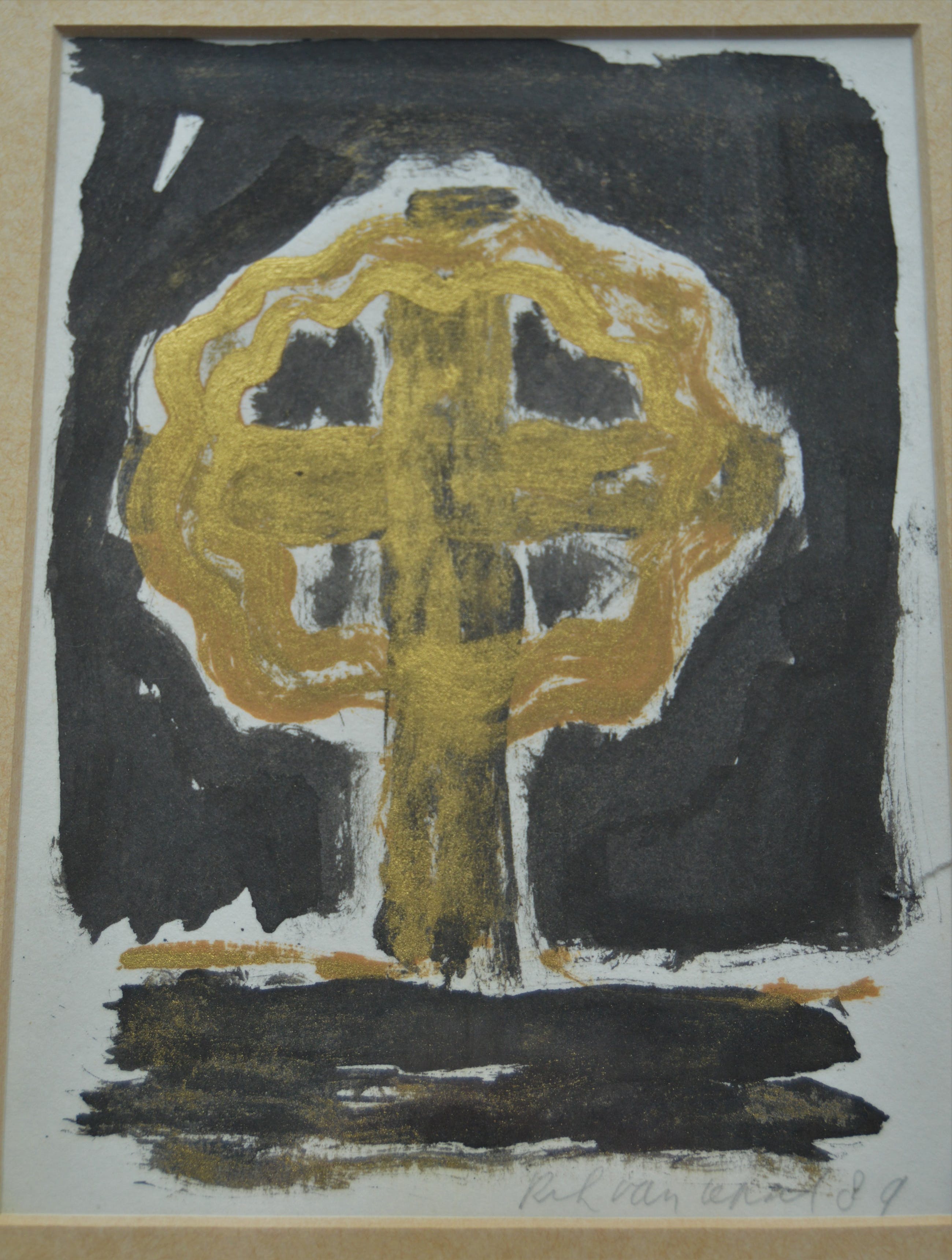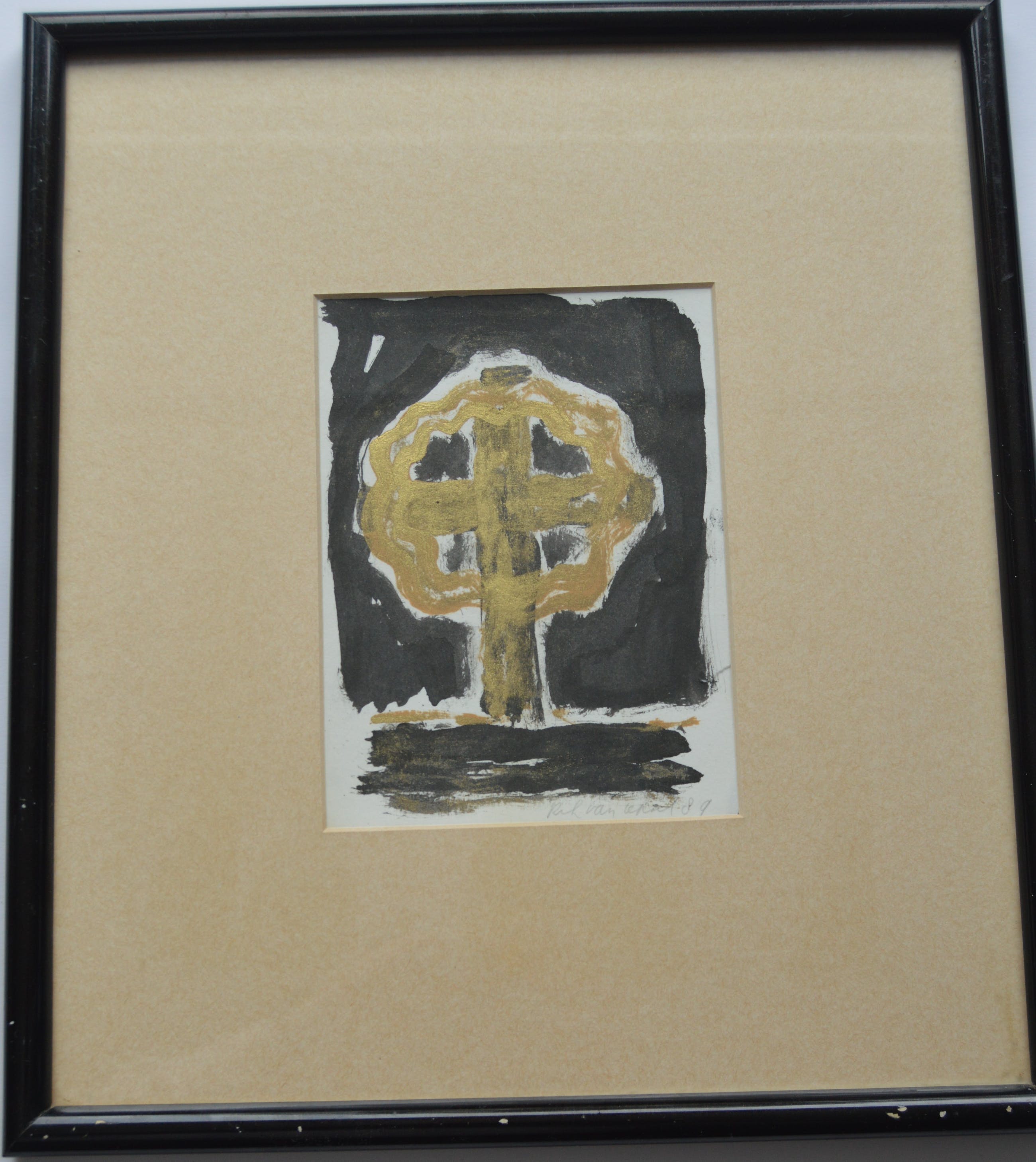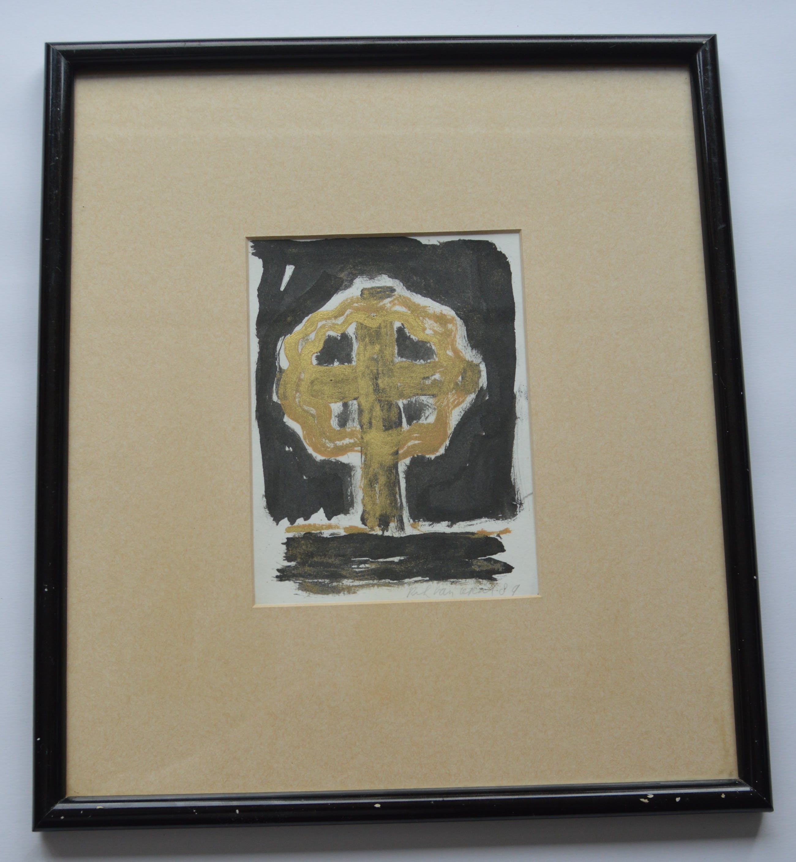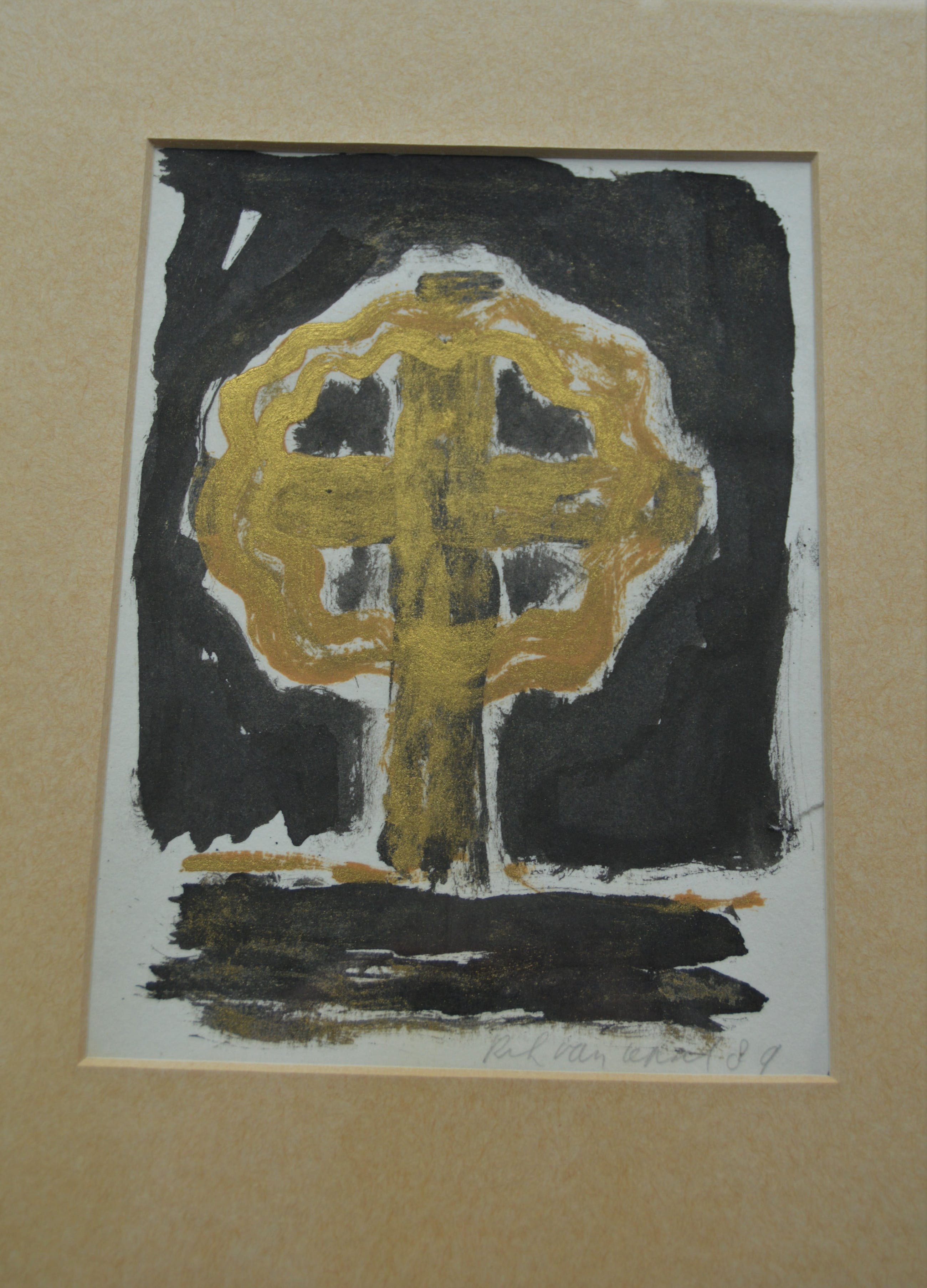 Keltisch kruis. Acryl op papier in zwart en goud! Unica. Verzending aangetekend.