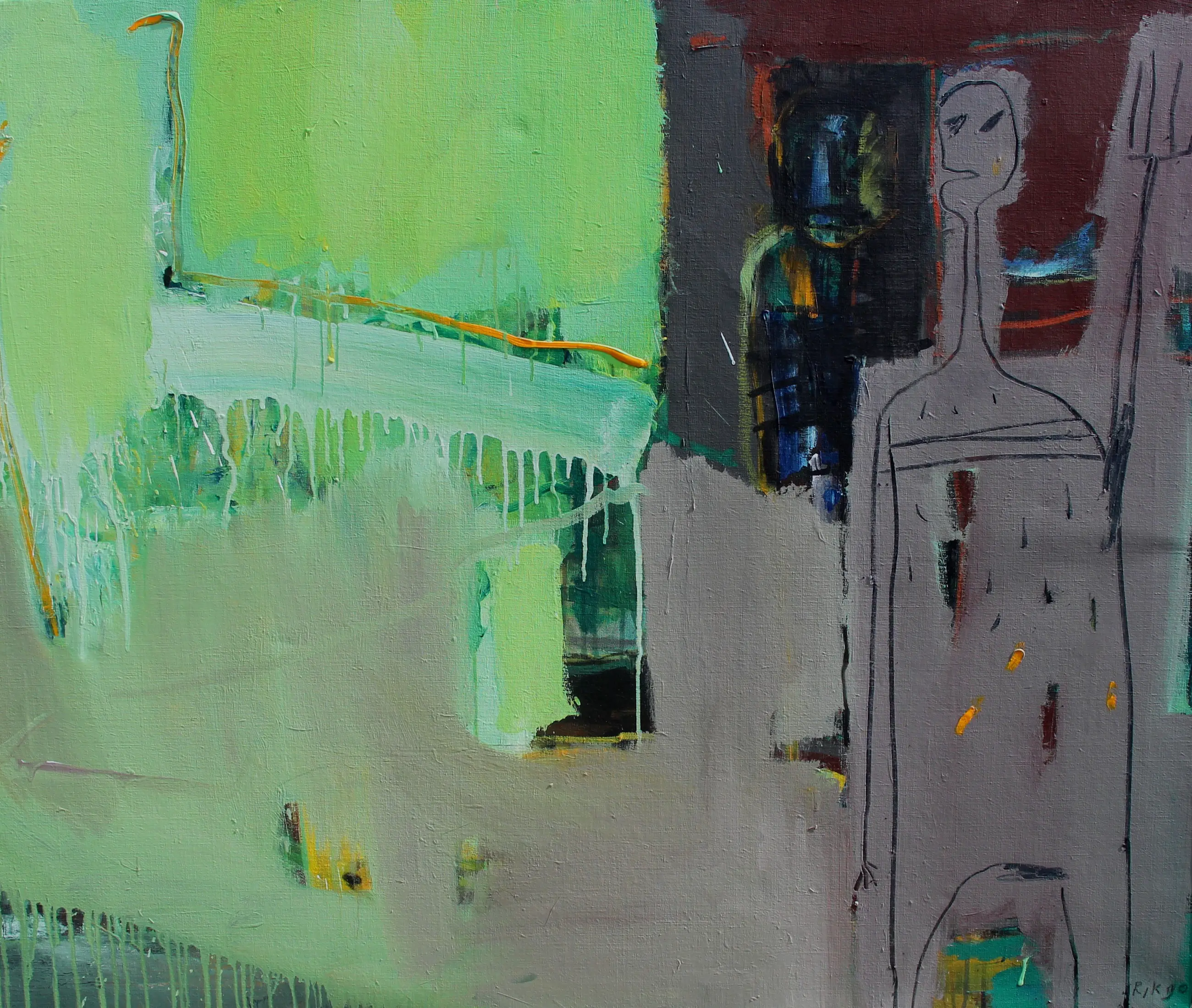 Olieverf op doek van Rik van Iersel. Jaar: 1990. Afmetingen incl lijst: H112 x b131cm. Afmetingen voorstelling: H100 x b120cm.