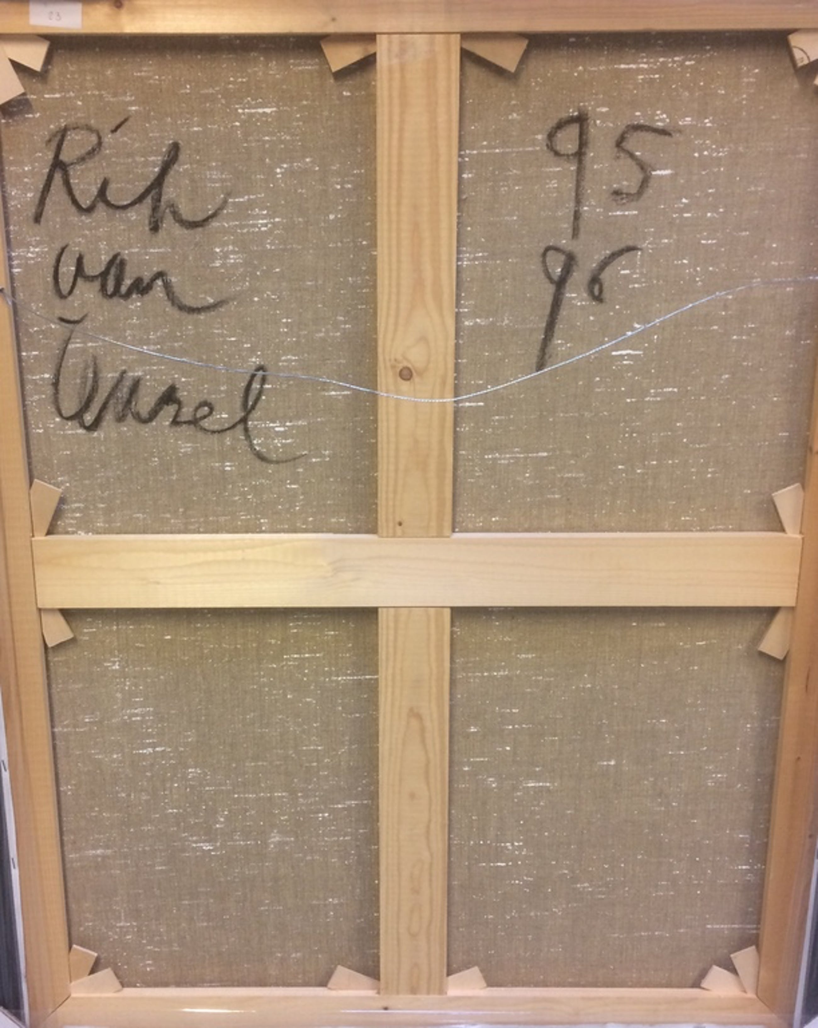 Het werk is gesigneerd en gedateerd 1995/96 op de achterzijde en voorzien van een zwarte baklijst.