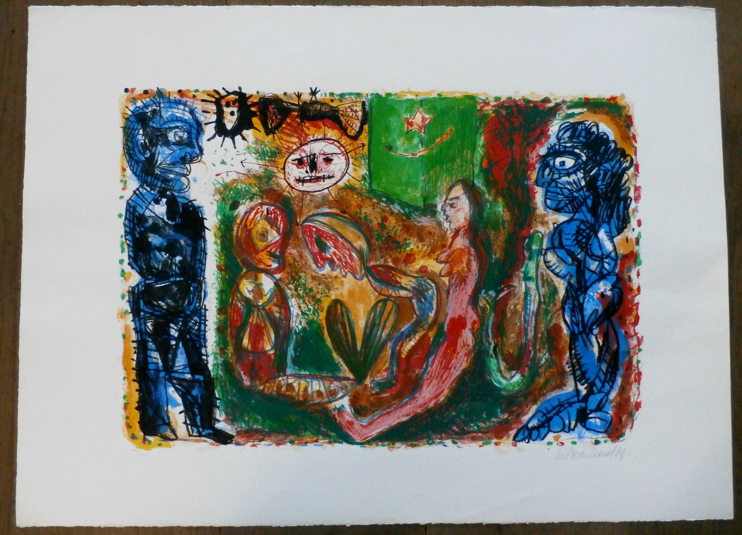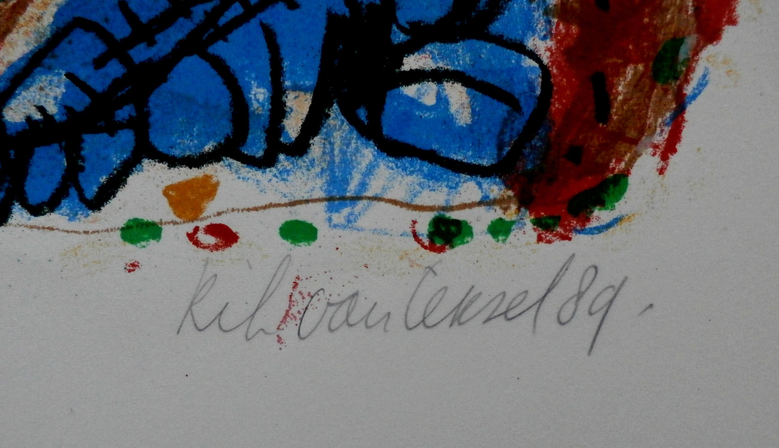 Zeefdruk van Rik van Iersel uit 1989. Het werk is rechtsonder, met potlood, gesigneerd door de kunstenaar. De authenticiteit van het aangeboden werk wordt voor 100% gegarandeerd. Een certificaat van echtheid kan, op aanvraag worden meegestuurd.