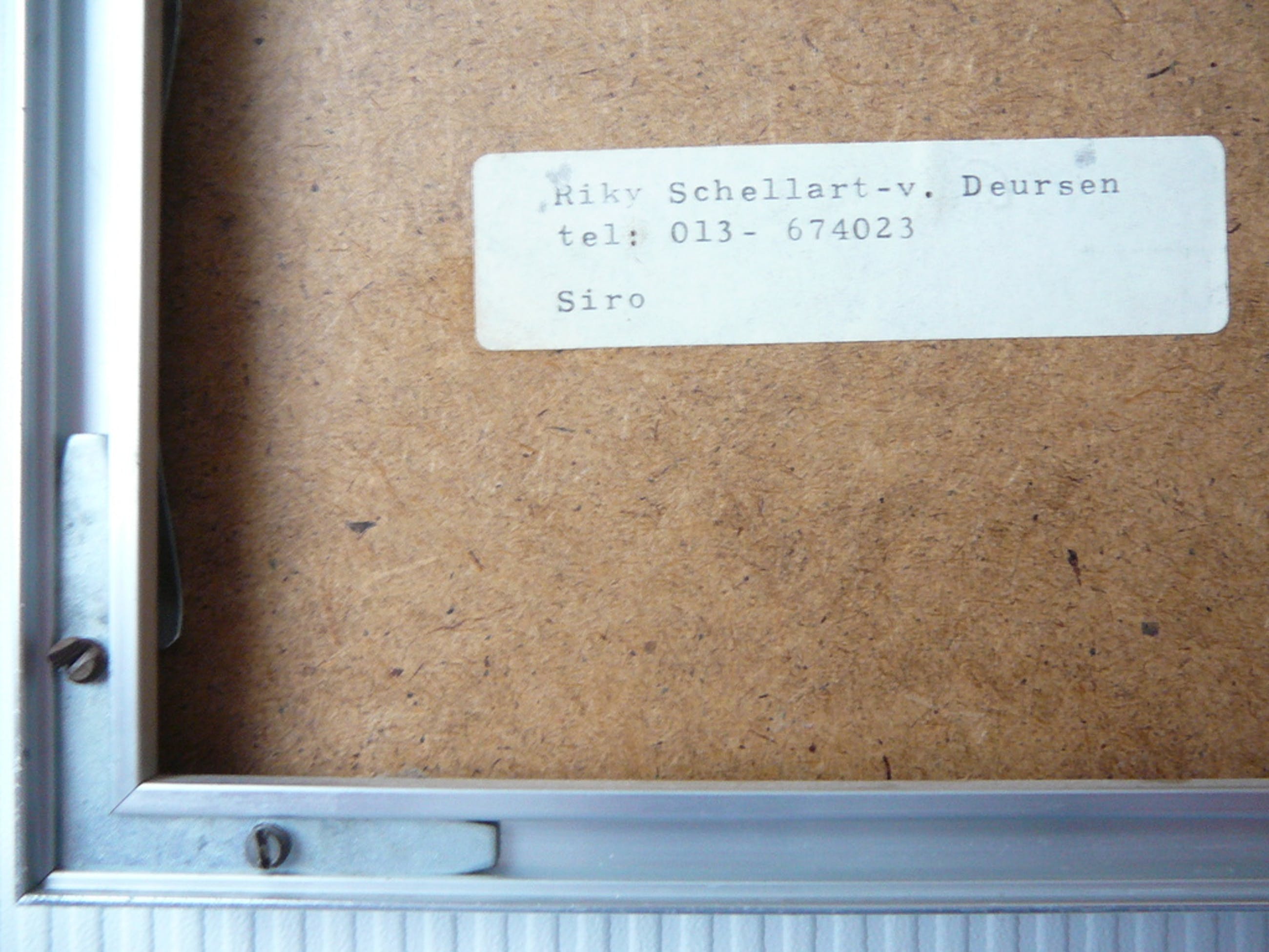 Heel mooi en groot handgesigneerd werk "Riky Schellart van Deursen - oktober 1976" en voorzien van tekst achteraan "SIRO",
