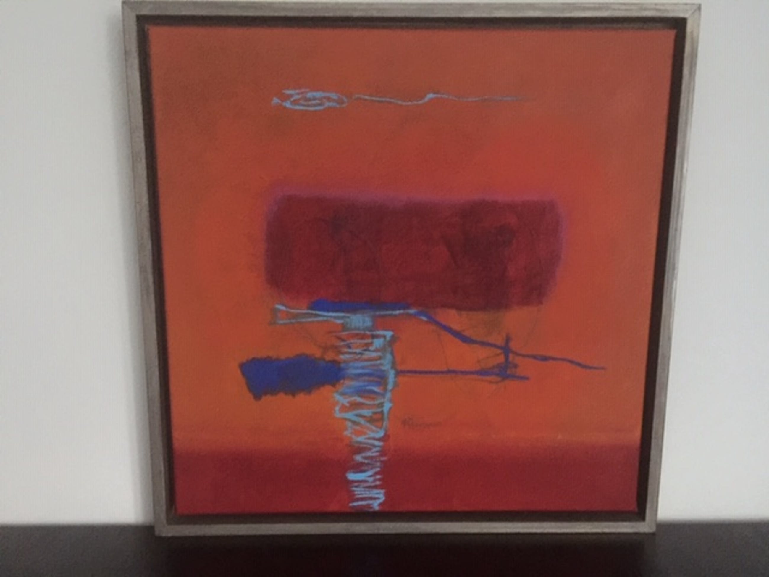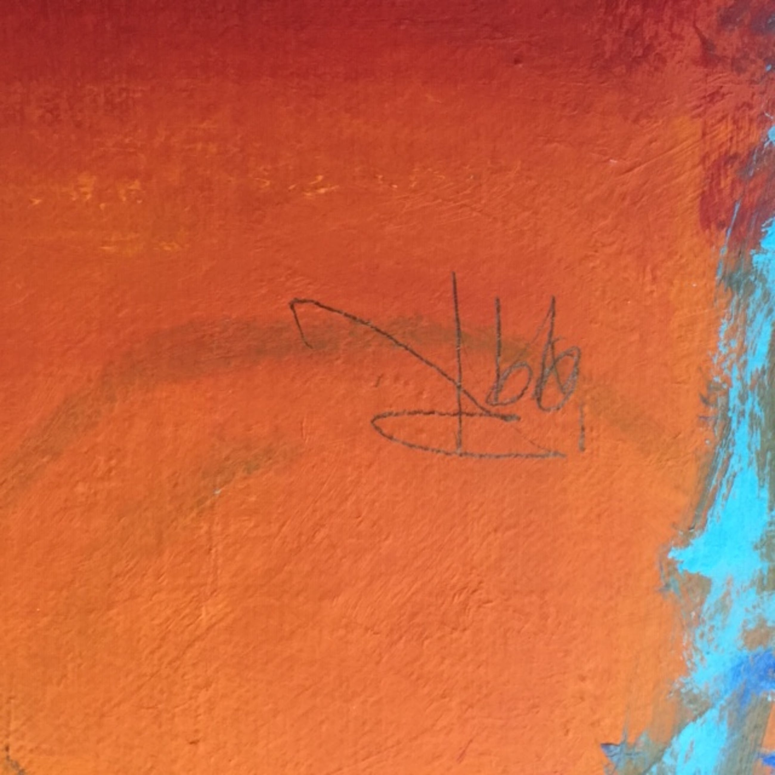 Olieverf schilderij in oranje / rood Gesigneerd, zonder titel