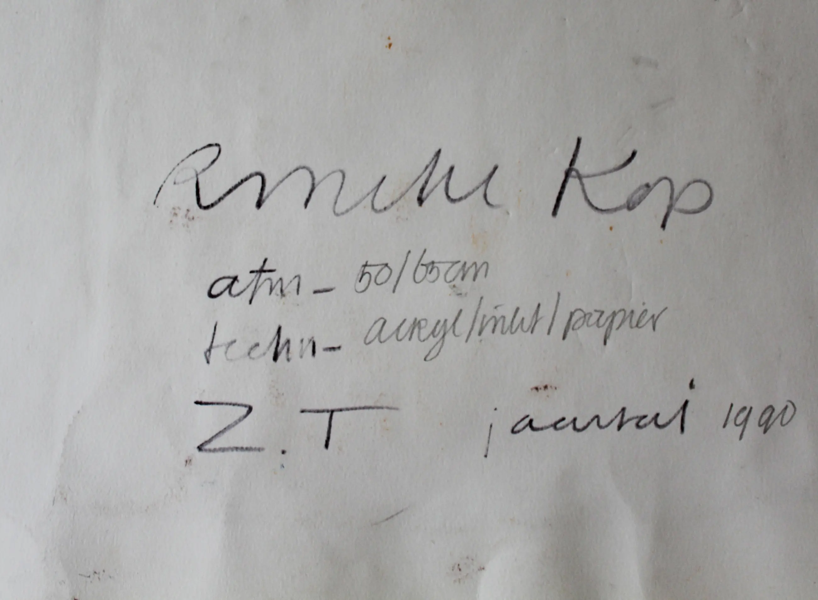 Werk uit 1990. Acryl en inkt op papier. Bladmaat: 65 x 50 cm. Niet in lijst of passepartout. Wordt verzonden in een koker.
