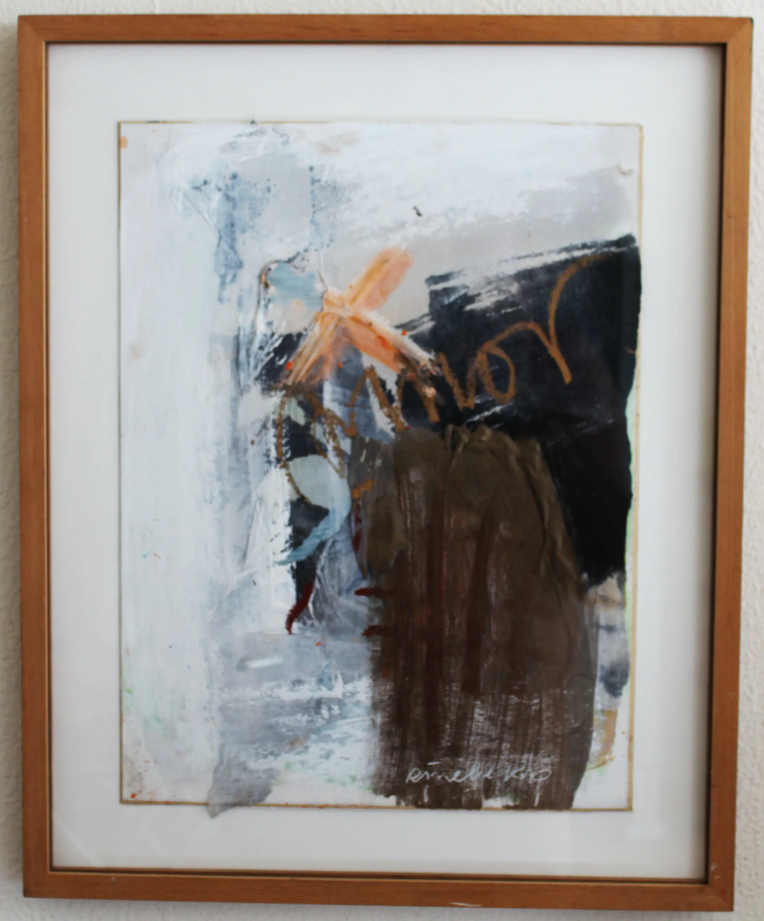 Ingelijst in een beukenhouten gesloten dooslijst (werk hangt vrij achter glas). Kan direct aan de muur.