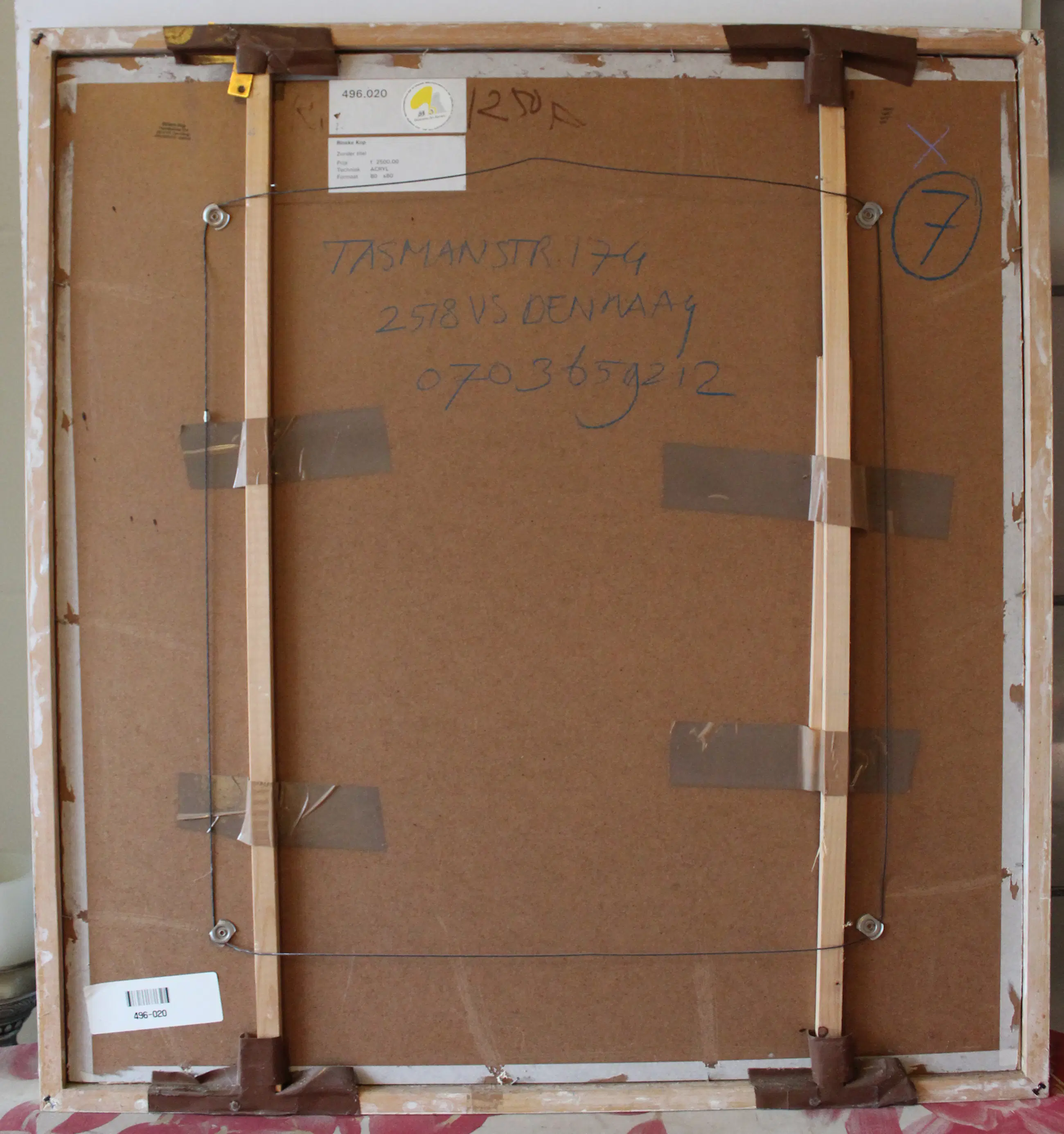 Het werk is af te halen op locatie. Als koper dient u zelf verpakkingsmateriaal mee te nemen. De locatie is: Leidschendam, Nederland