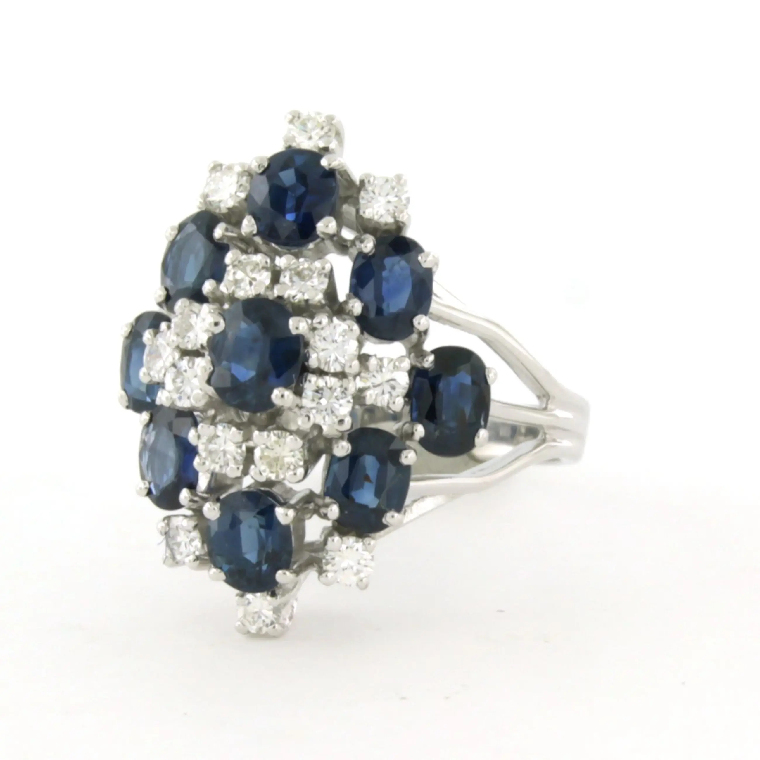 14k wit gouden ring bezet met saffier en briljant geslepen diamanten tot. 0.36ct - F/G - VS/SI - ringmaat 17(53)