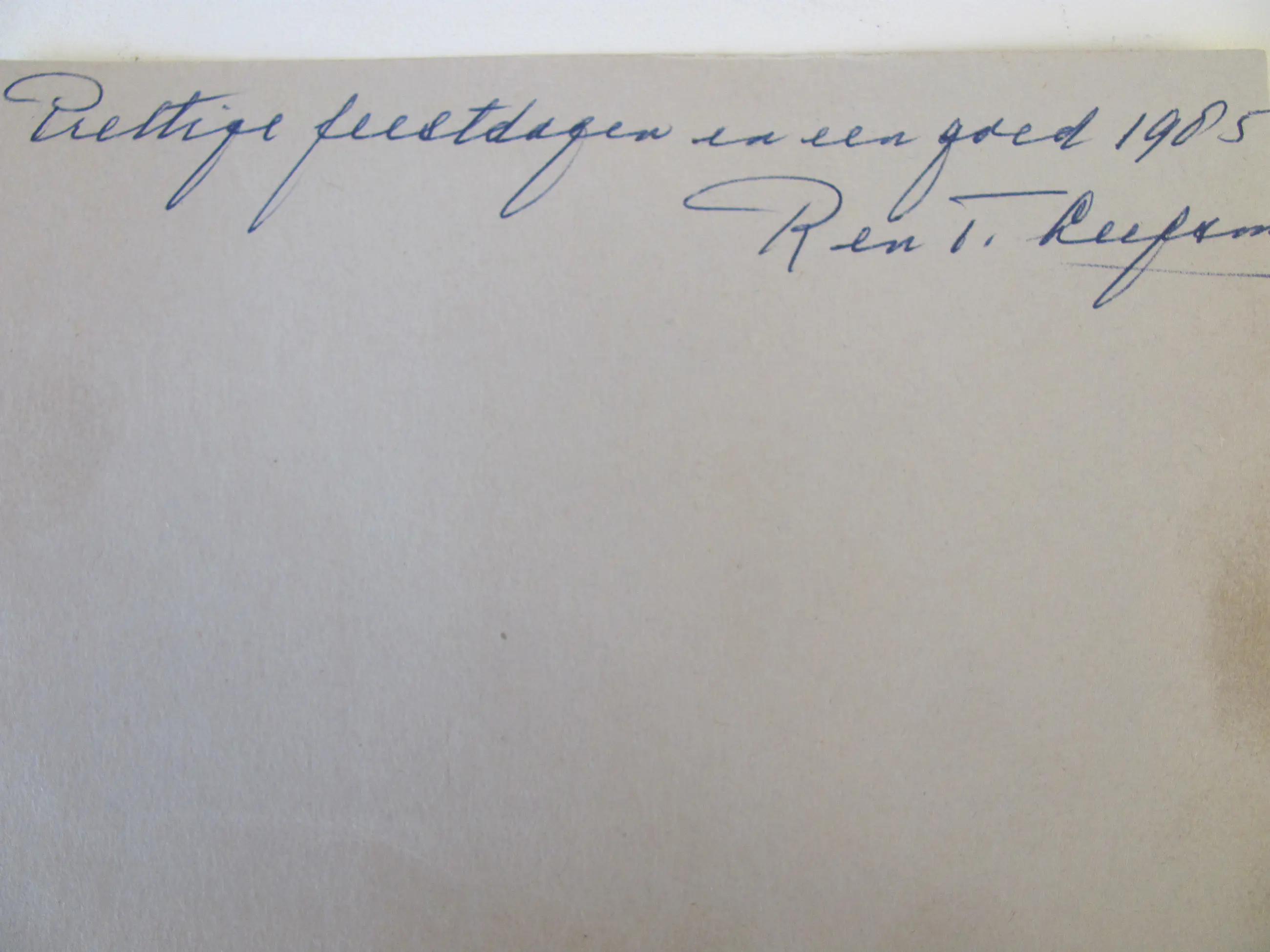 Aquarel van Rini Leefsma-Nagtegaal. Rechtsonder gesigneerd met monogram RLM. Dit aquarel is verzonden als nieuwjaarwens voor het jaar 1985, dus zal vermoedelijk in 1984 zijn gemaakt.