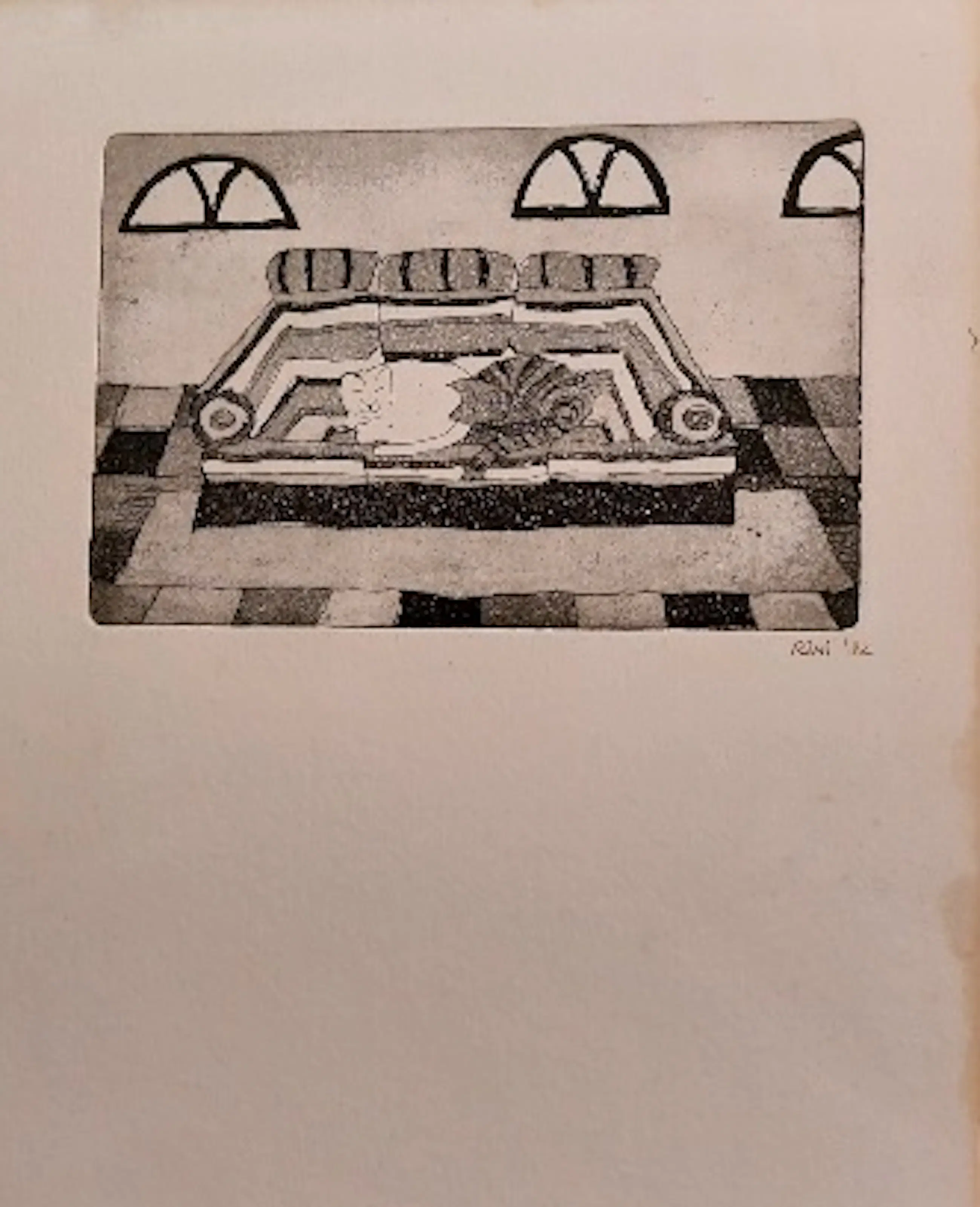 Mooie ets met de fraaie titel : twee poezen op de bank