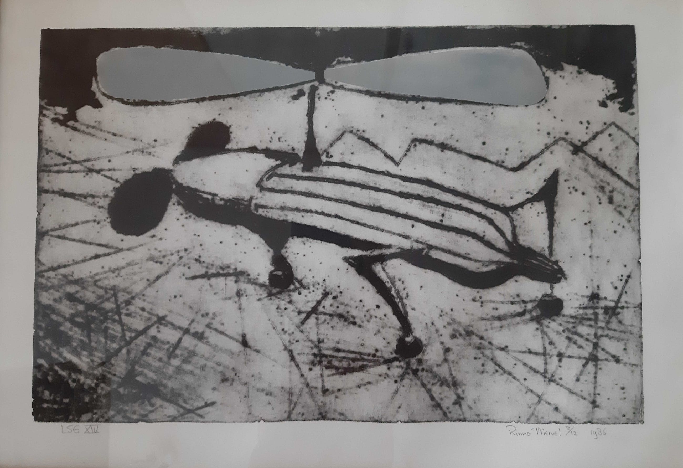 Waarschijnlijk is het een litho. Gesigneerd door Rinne Mervel 3/12, jaar 1986 (LSG XIV).