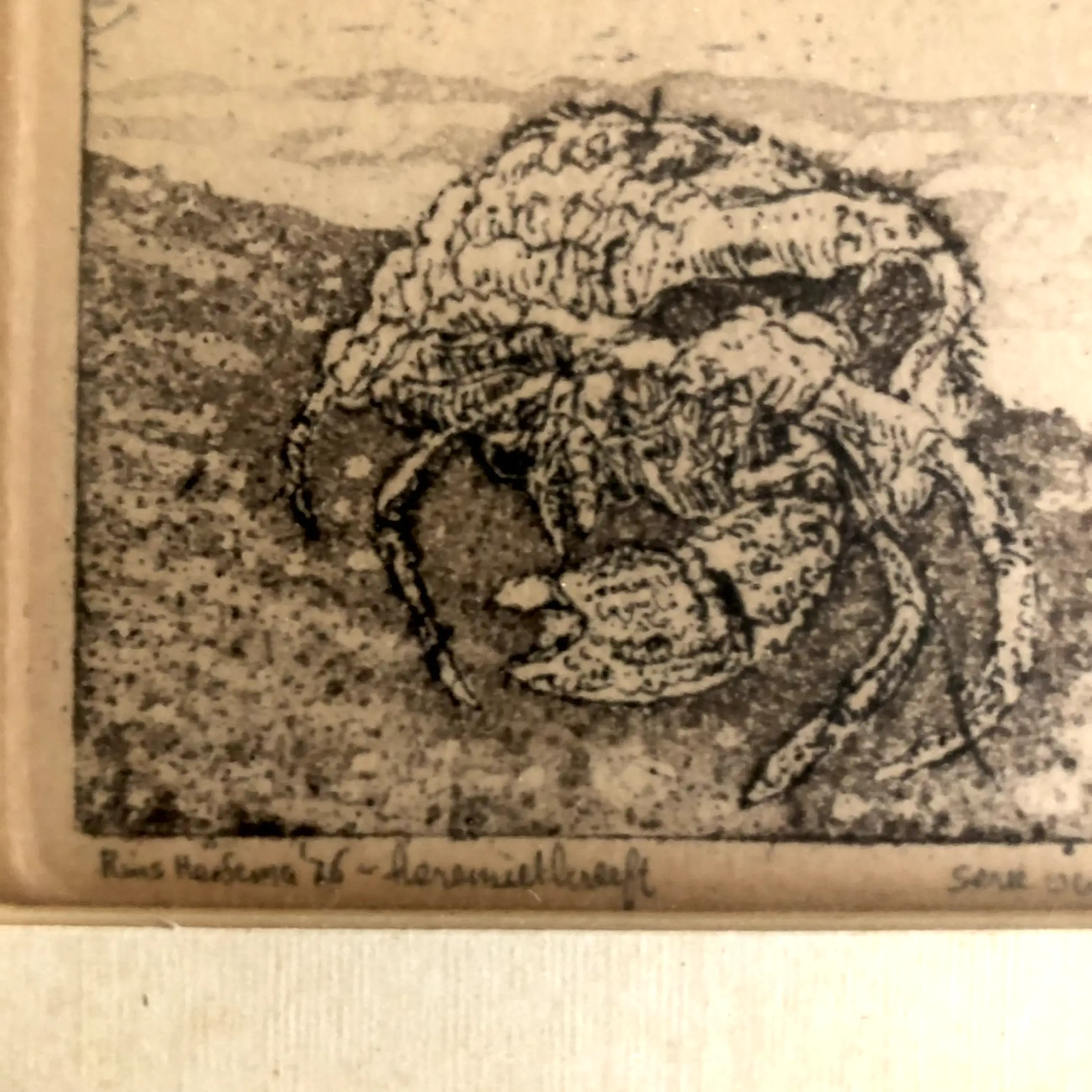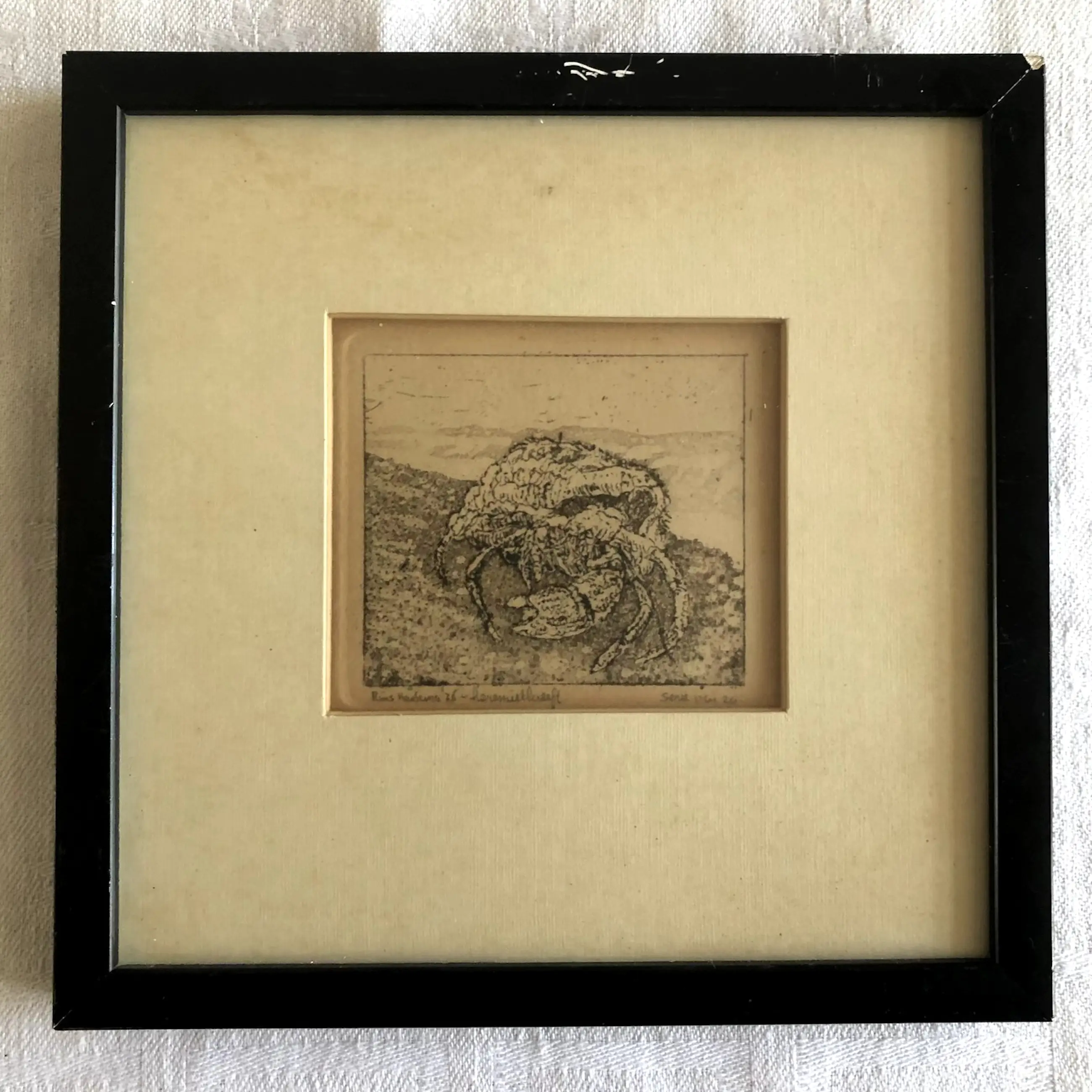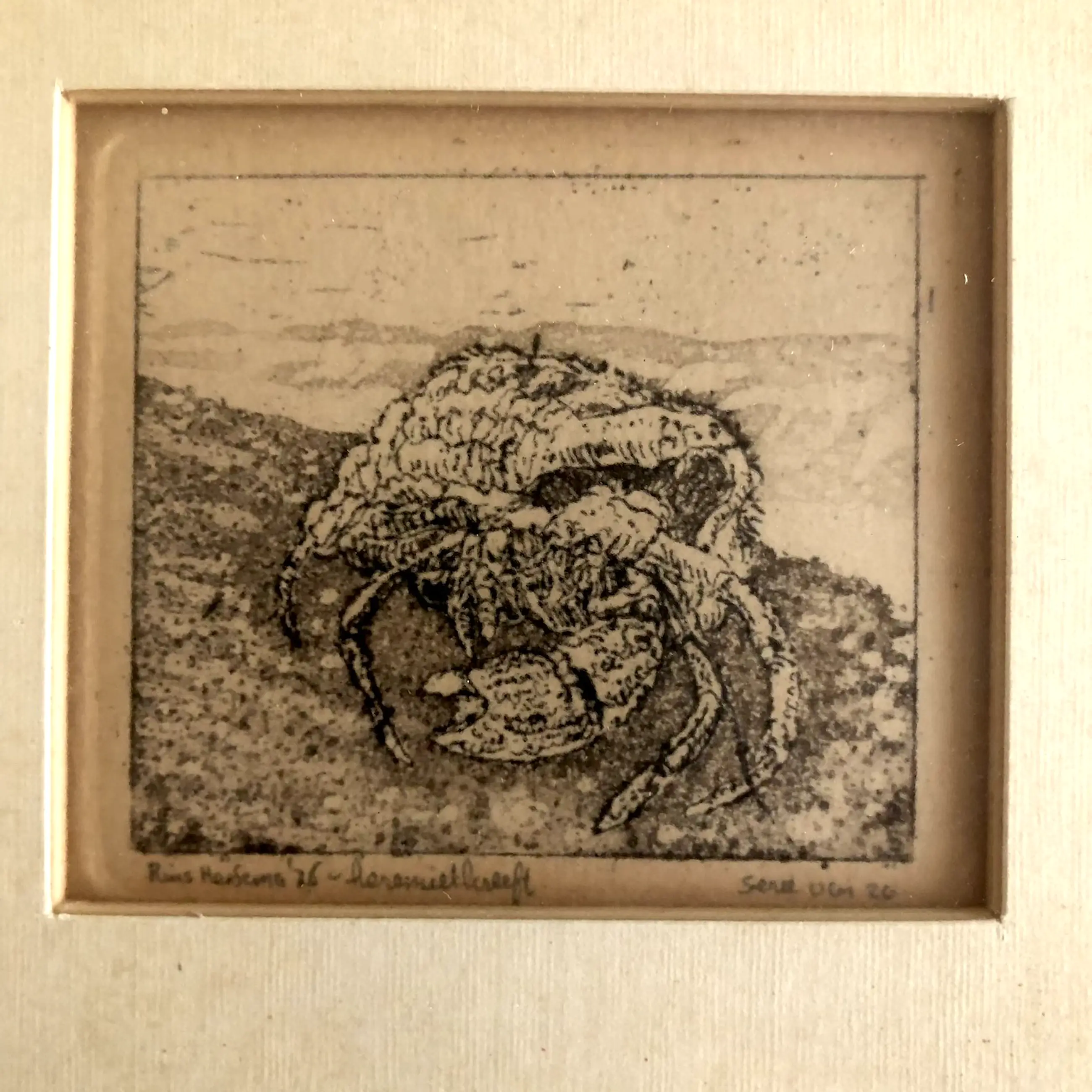 Ets 14 Rins Heidema Heremietkreeft Ets 1976 10 x 11 cm 17,5 x 17,5 cm