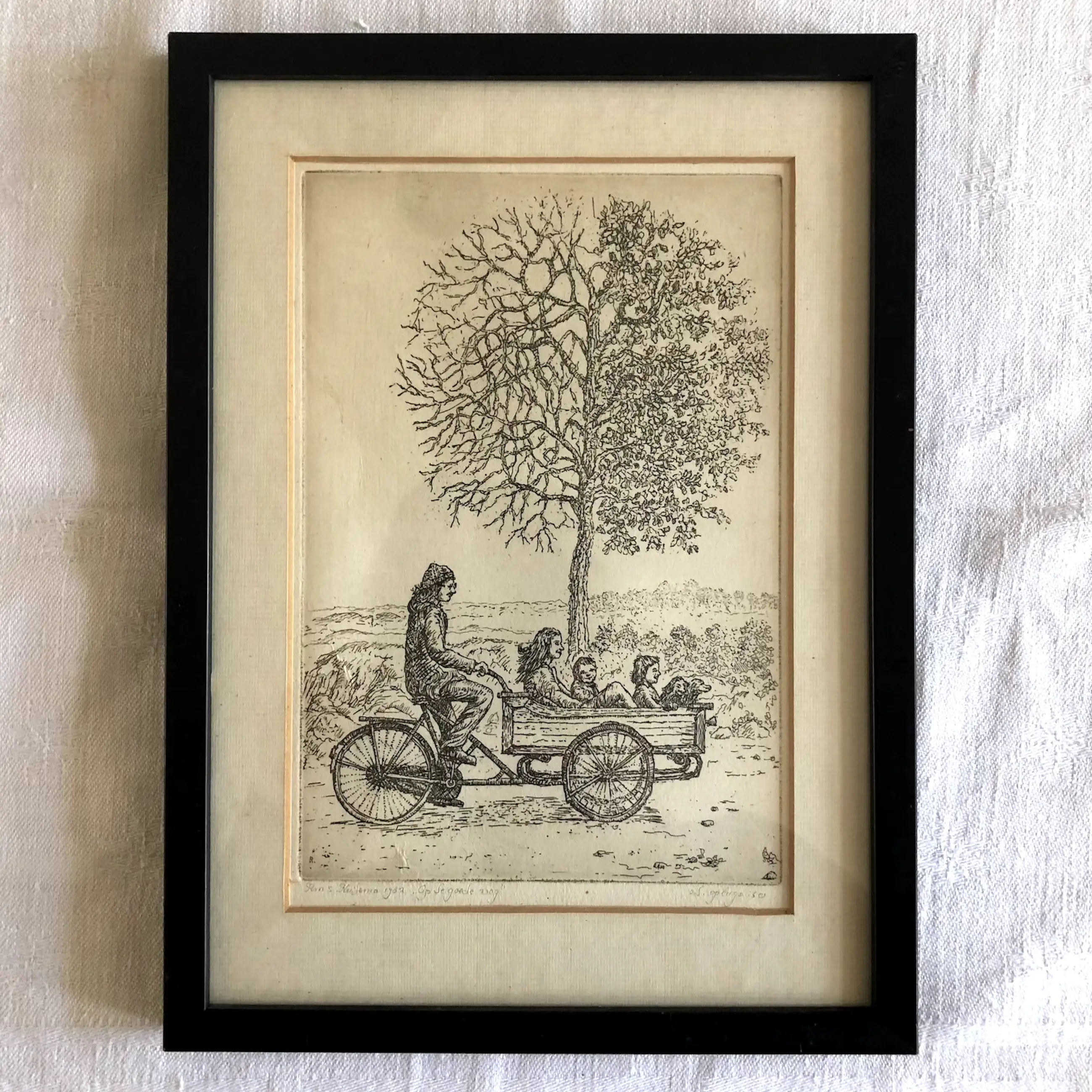 Ets 23 Rins Heidema Op de goede weg Ets Oplage 50 1982 20 x 14 cm 27 x 20 cm