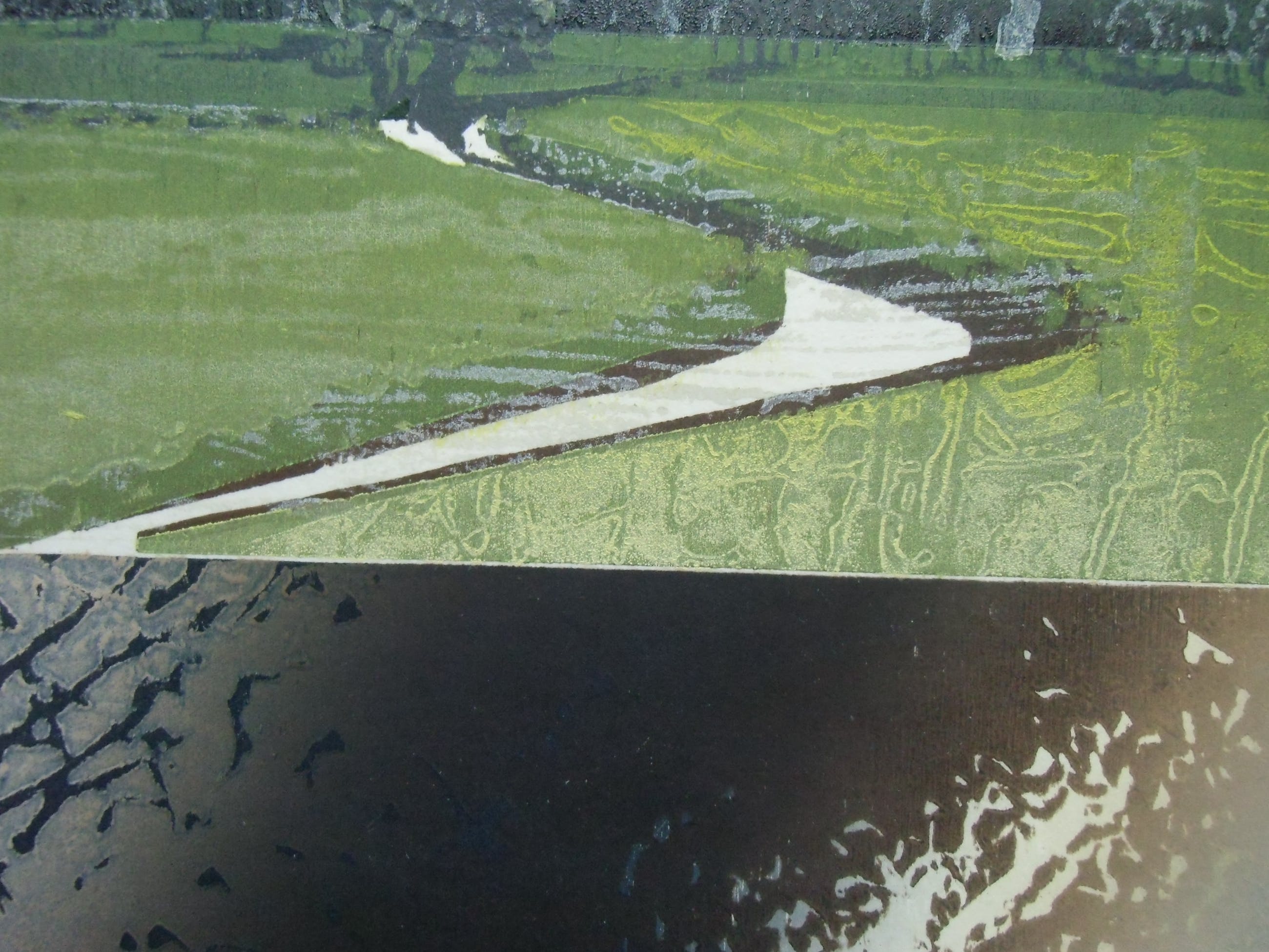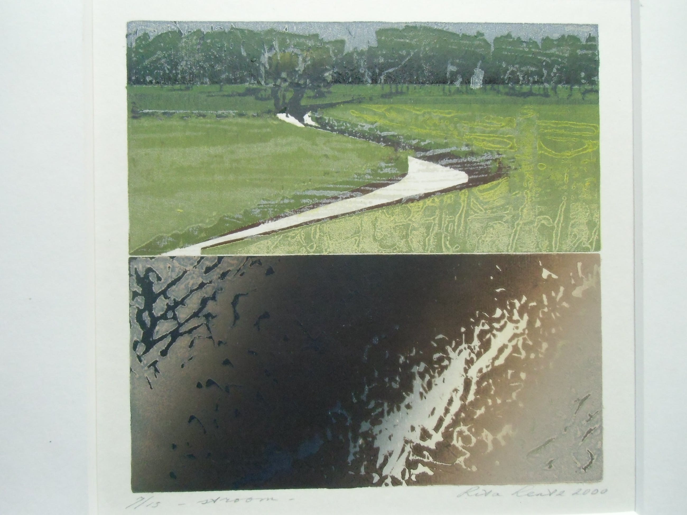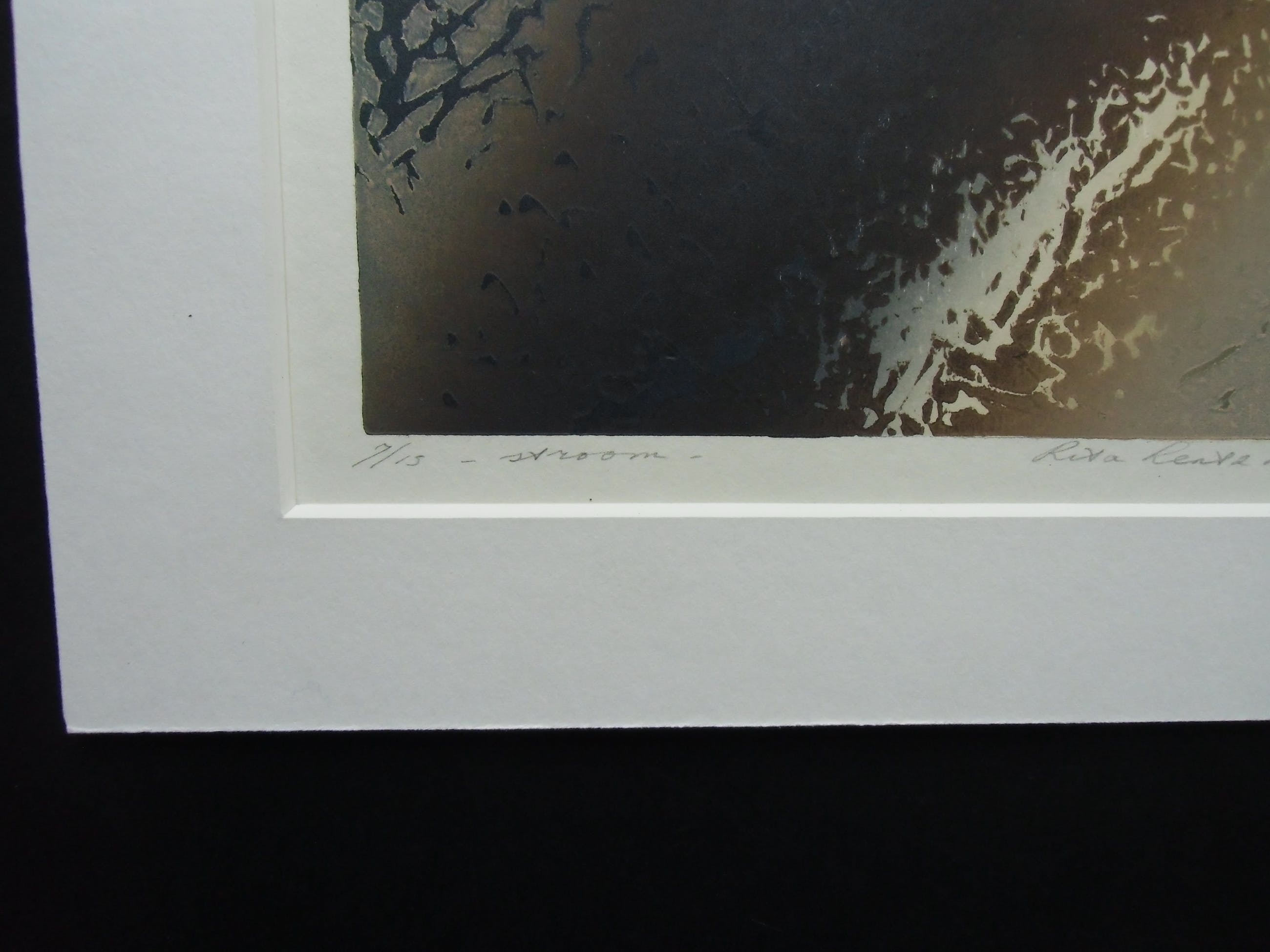 Kleurenhoutsnede met interessante Japanse invloeden. Gesigneerd r.o. en kleine oplage van 15 exemplaren. Nieuwstaat.