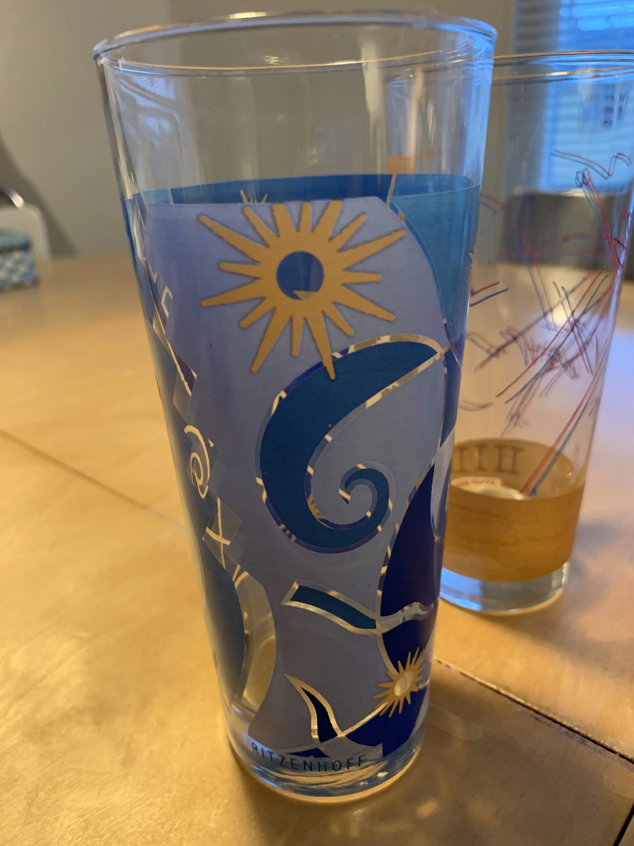 Elk glas is gesigneerd met het Ritzenhoff-logo en de naam van de ontwerper aan de onderrand van het glas.