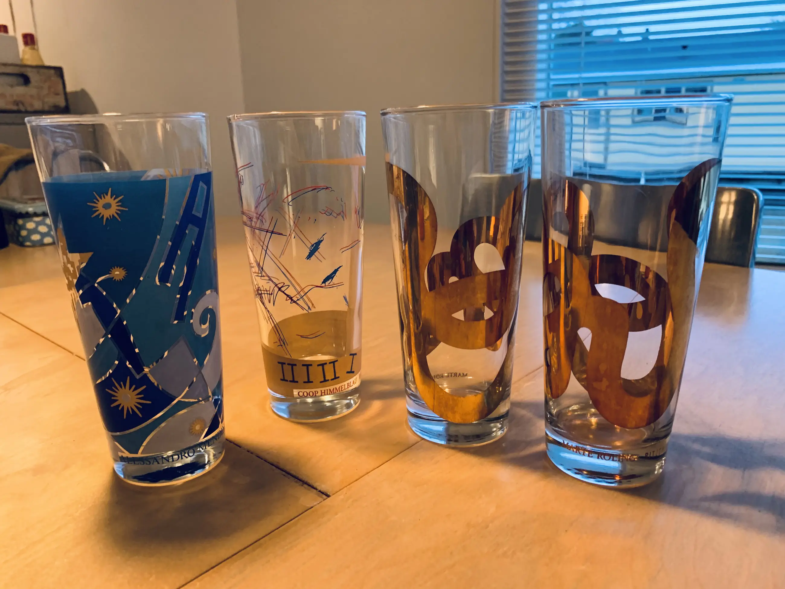 Vier Ritzenhoff designer glazen voor verzamelaars. Gedecoreerd met echt goud door internationale architecten en ontwerpers.