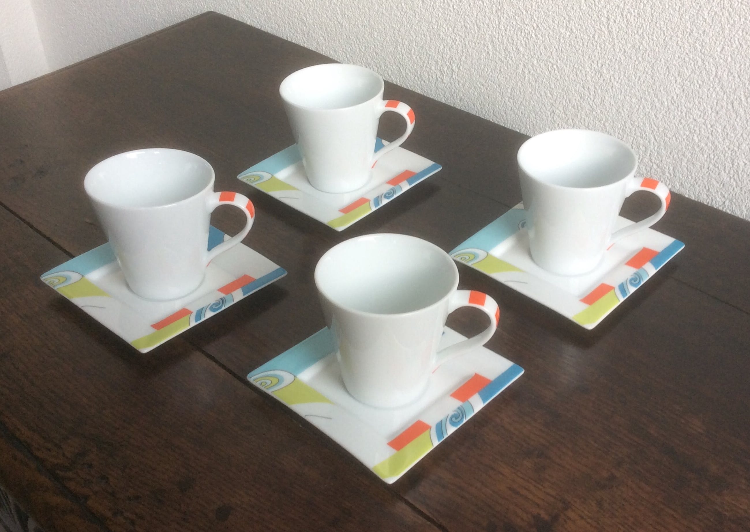 Vier exclusieve kop- en schotels, ontworpen door Evelin Roth, met als titel Morning Stars. Gefabriceerd door Ritzenhoff.