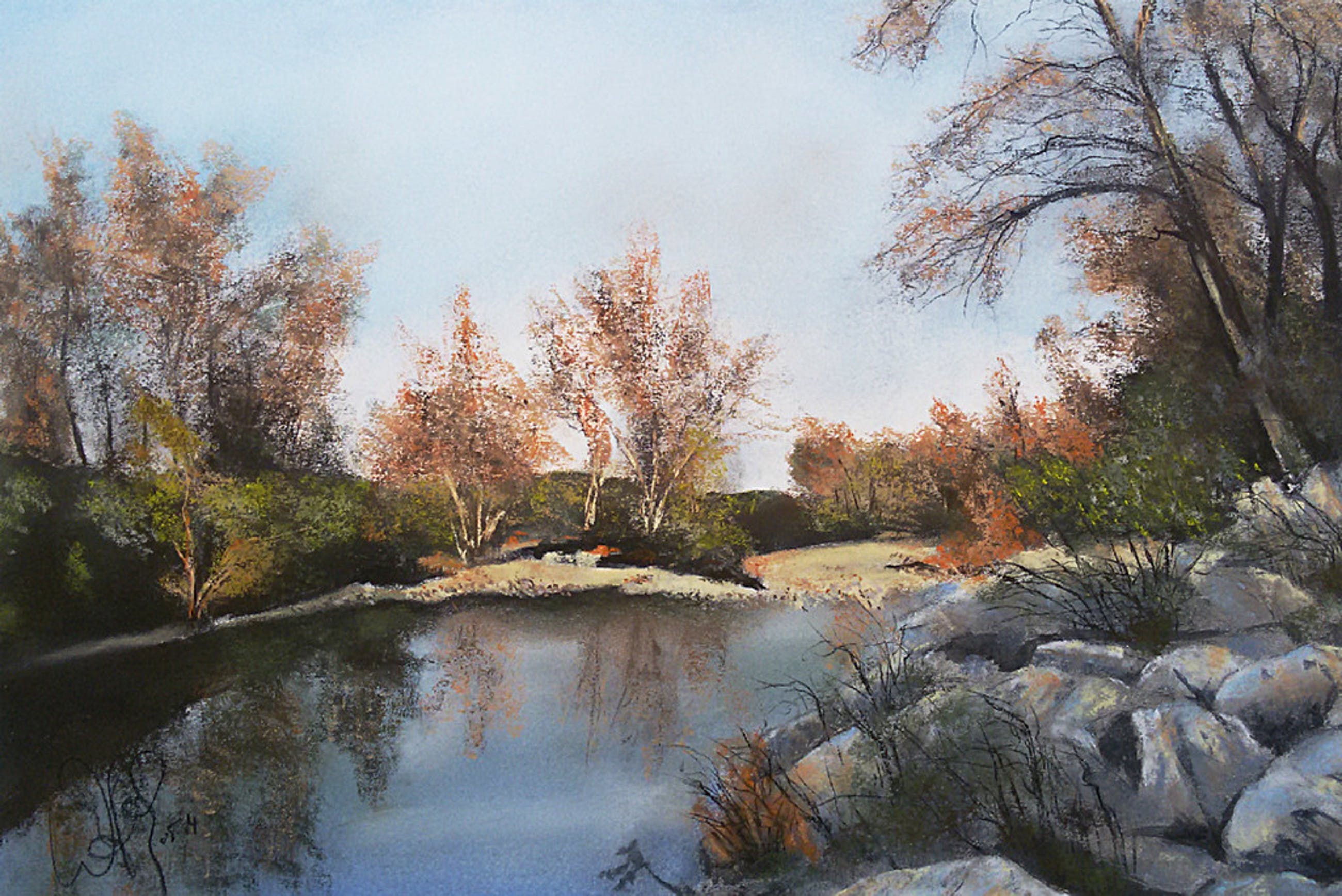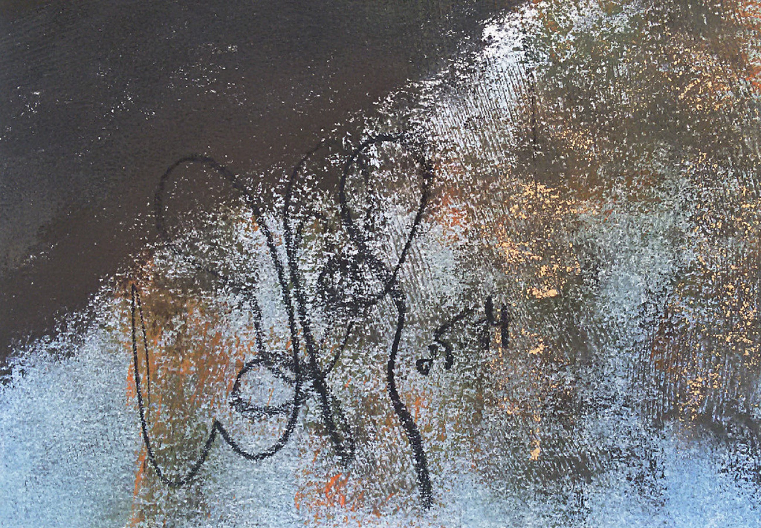 Werk van onbekende kunstenaar in prachtige lijst, achter museumglas en dubbel passe-partout. Onduidelijk gesigneerd en gedateerd linksonder. Ik heb het werk niet uit de lijst gehaald, maar het is hoogstwaarschijnlijk pastel. Decoratief en in uitstekende conditie, voor de lijst alleen al interessant.
