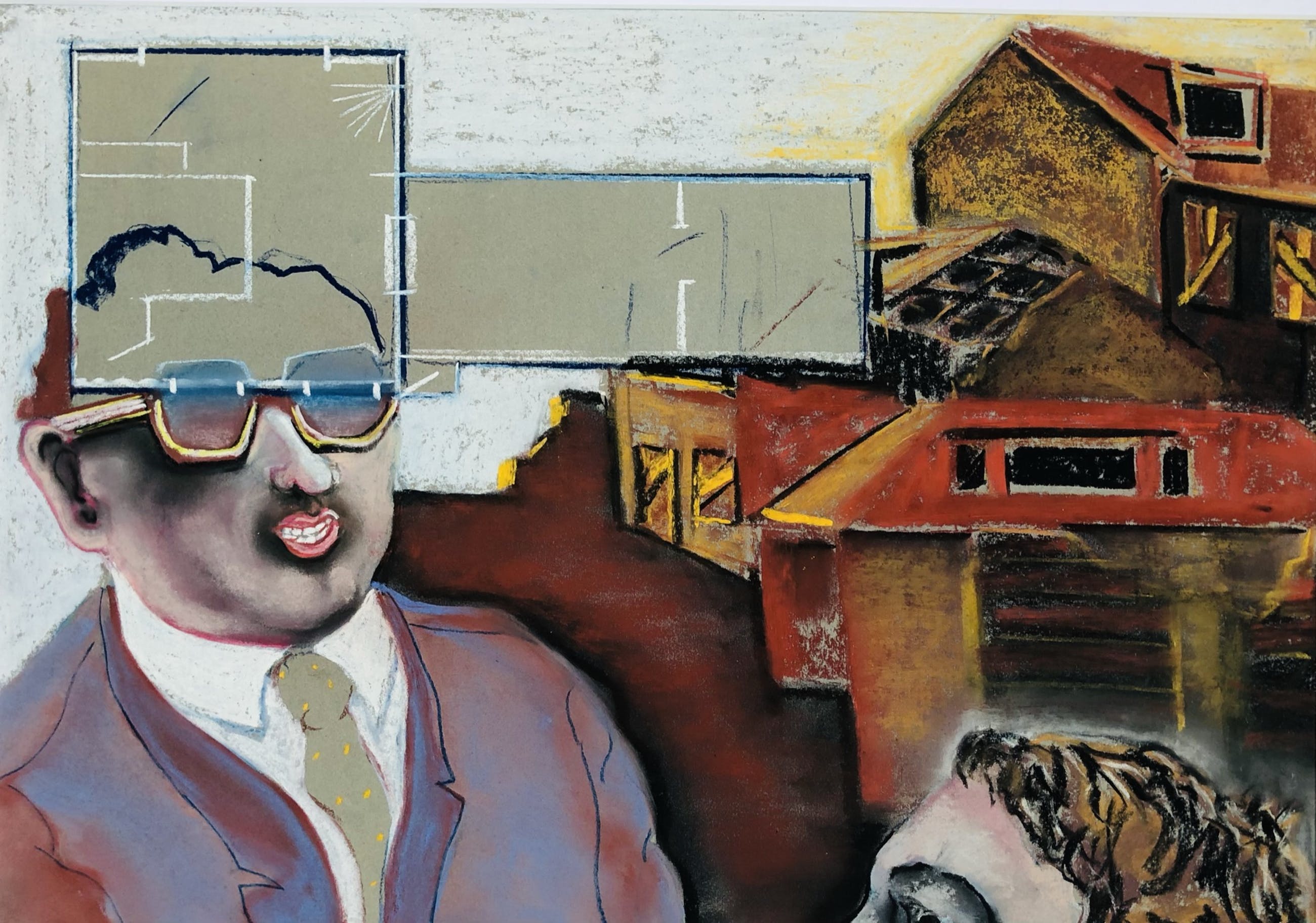 Fraaie pasteltekening van Remi Pope. Naast kunstenaar ook eenn activistisch SP-Tweede Kamerlid. Gesigneerd op het vel waar de tekening opgeplakt zit door de kunstenaar.