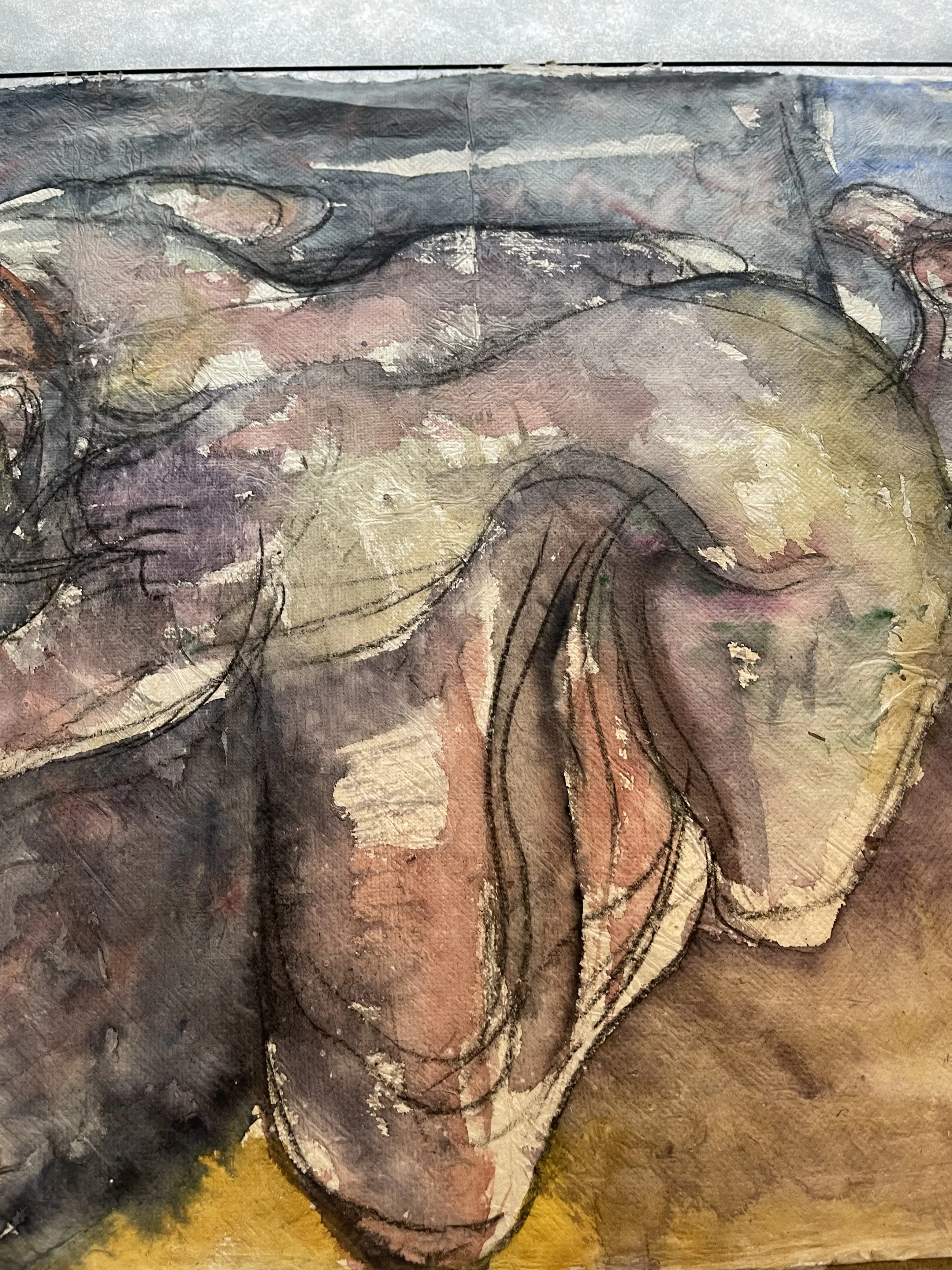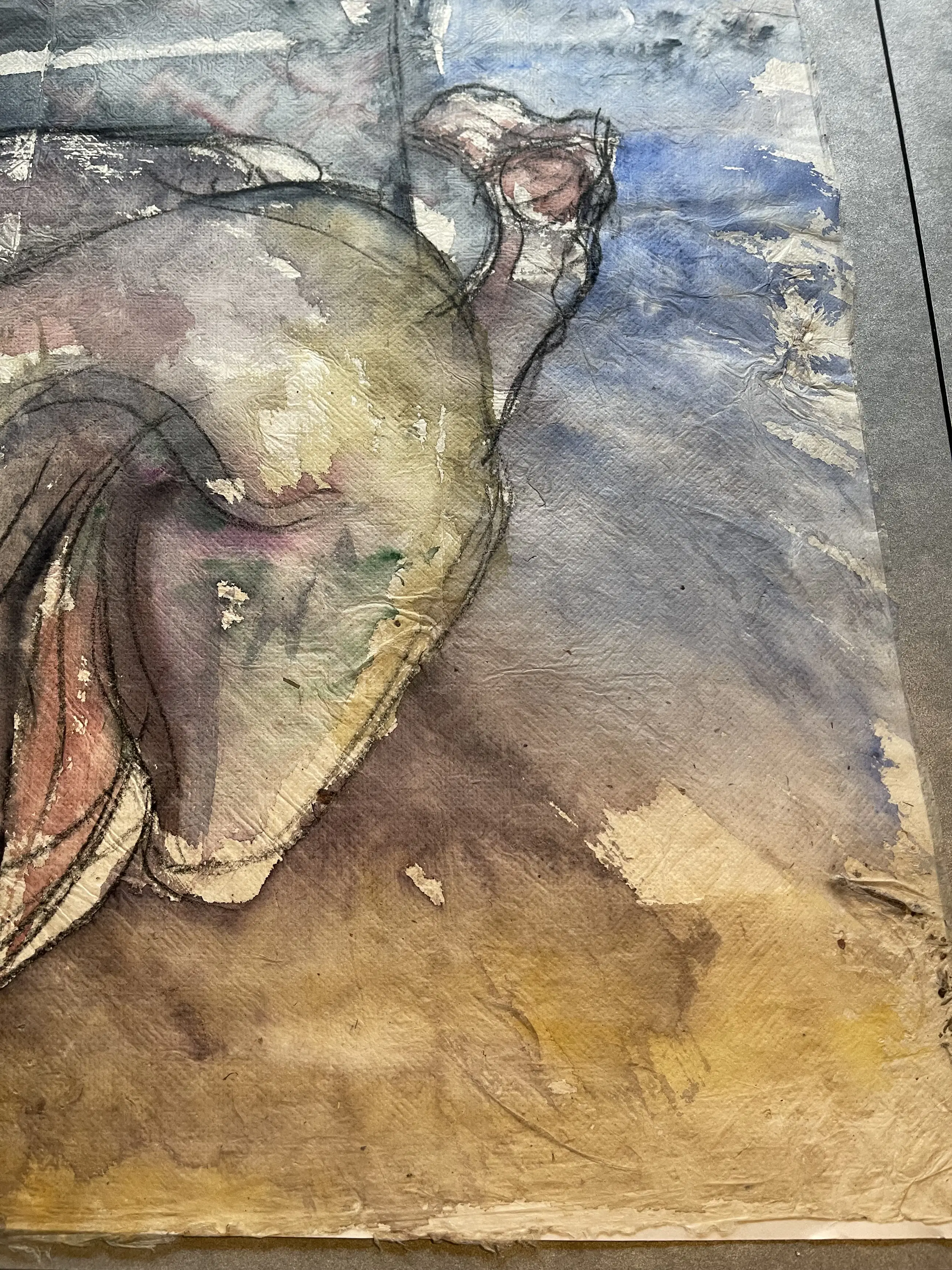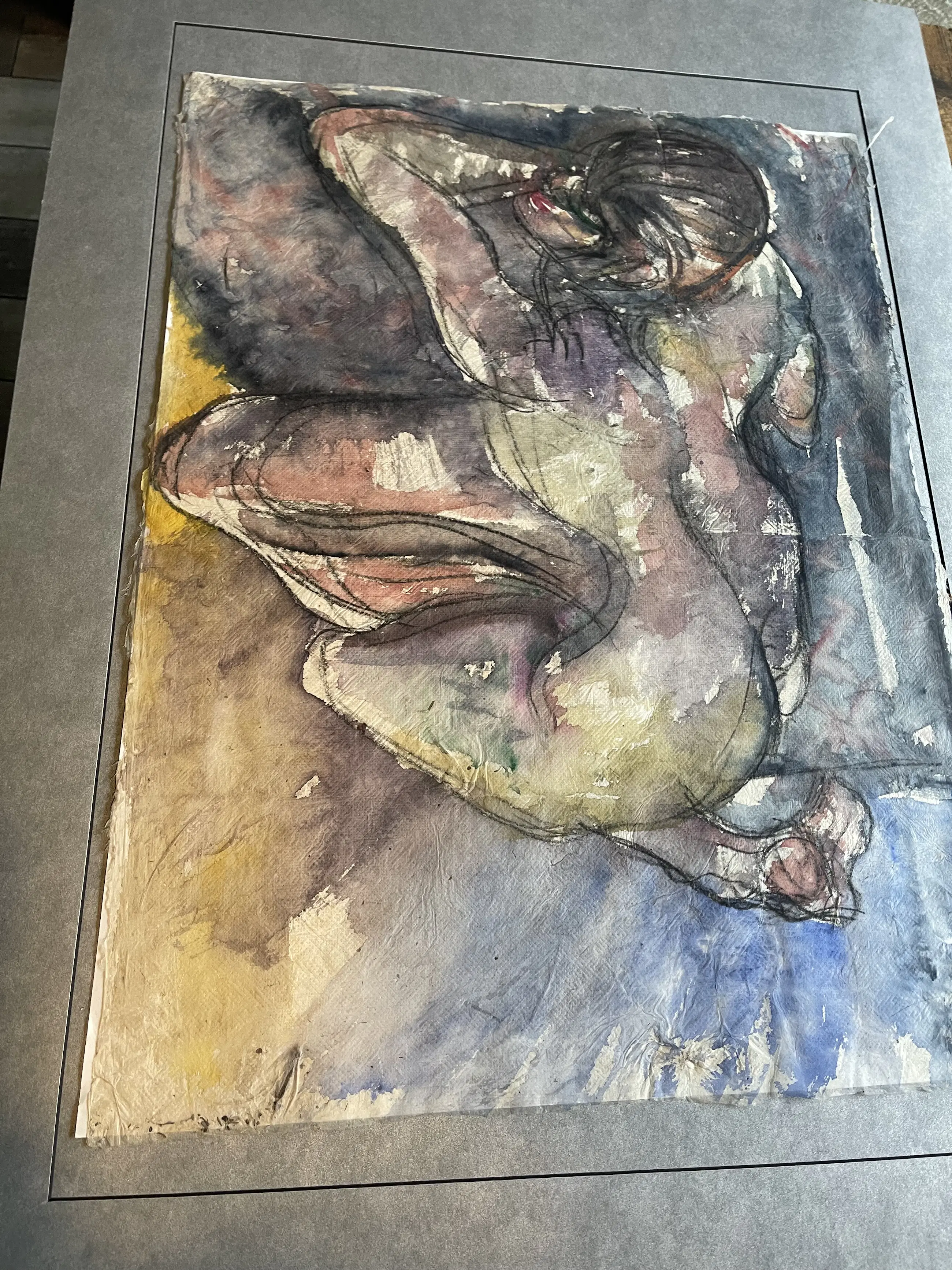 Aquarell van de Amsterdamse kunstenaar Rob Aussen Het papier is erg fragiel en heeft hier en daar een onvolkomenheid