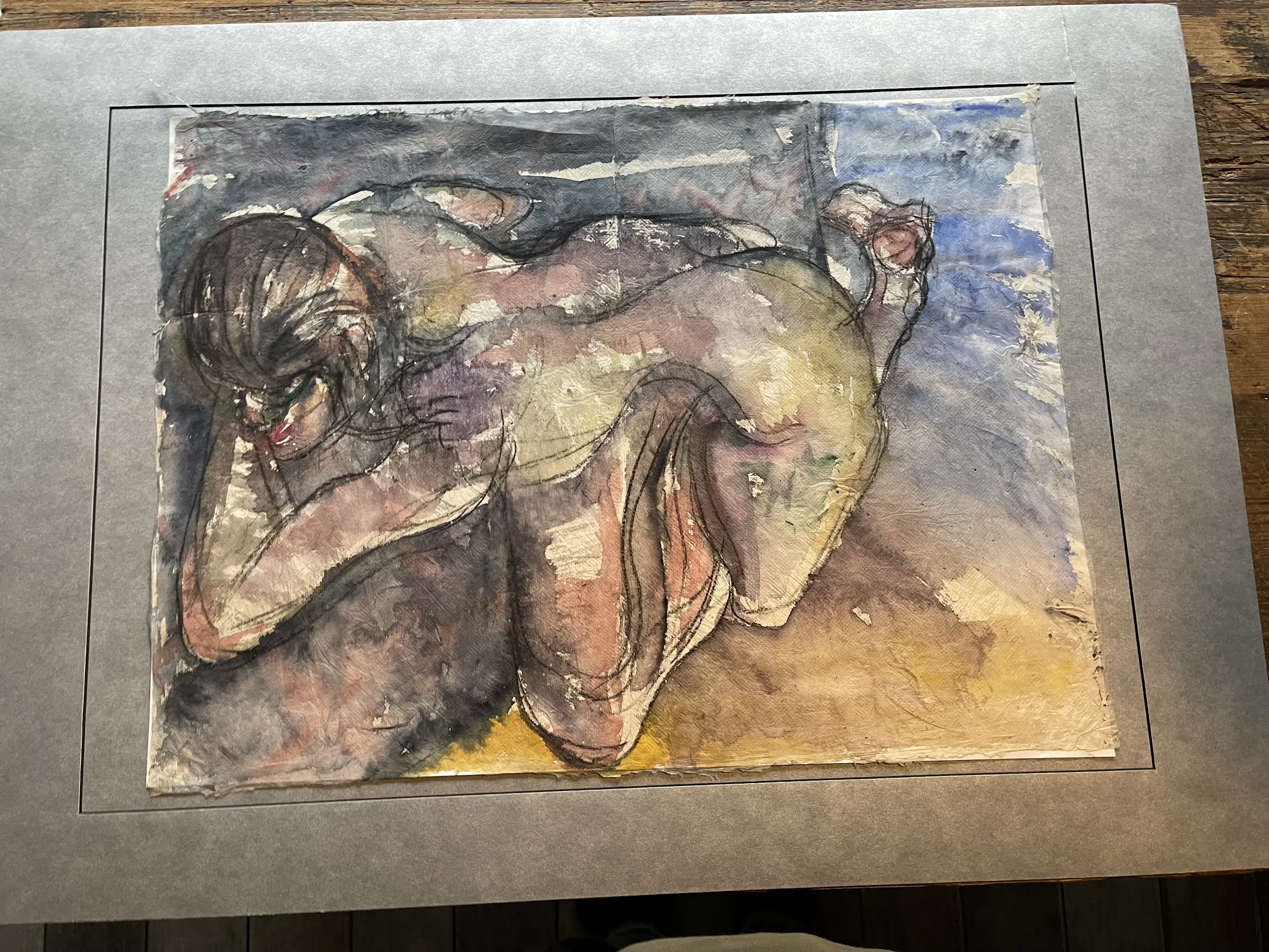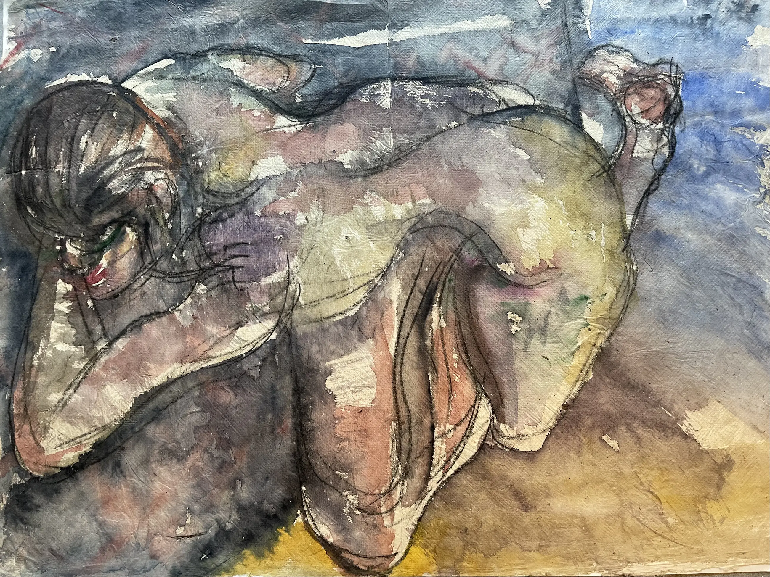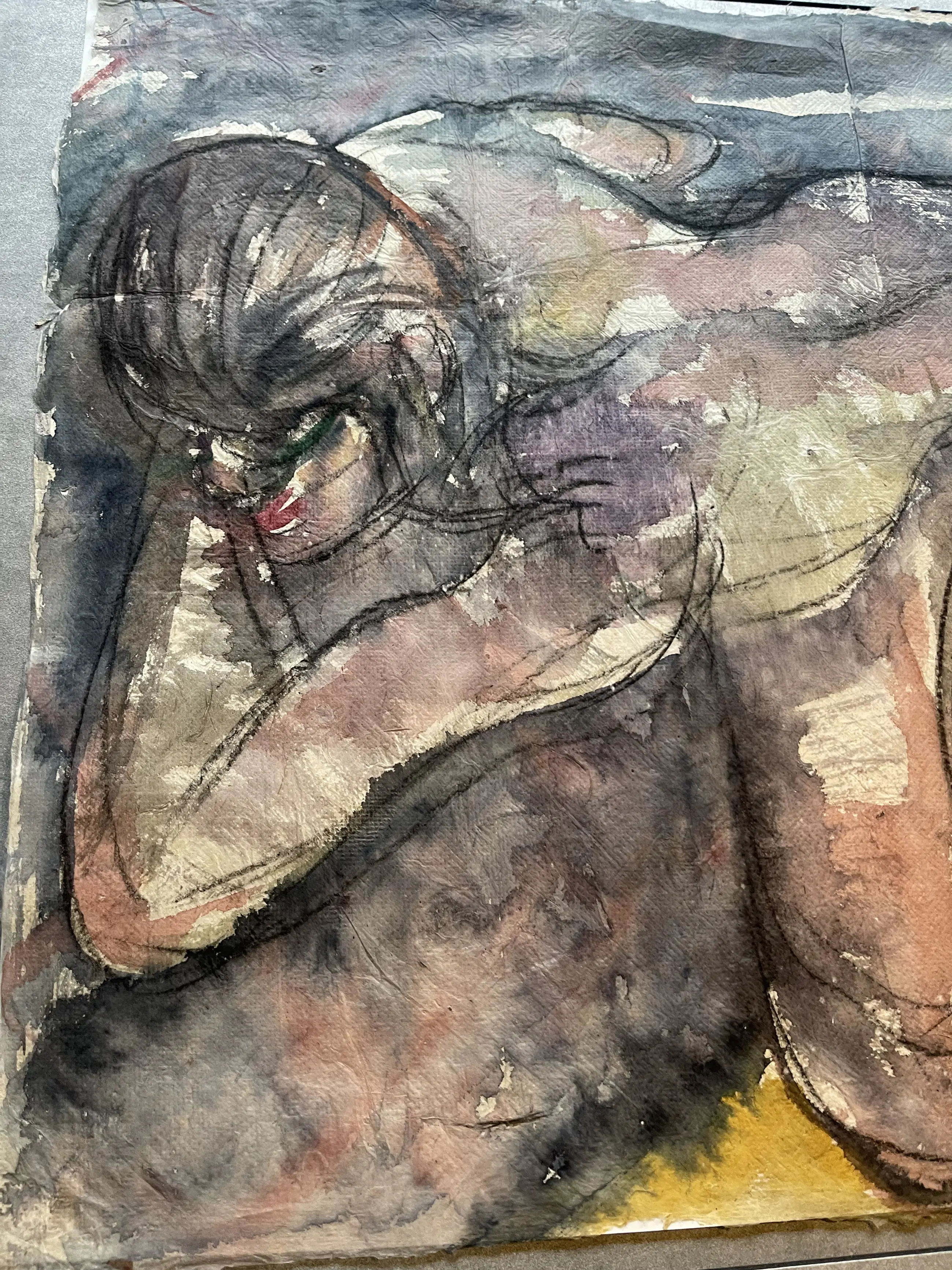 Aquarell van de Amsterdamse kunstenaar Rob Aussen Het papier is erg fragiel en heeft hier en daar een onvolkomenheid