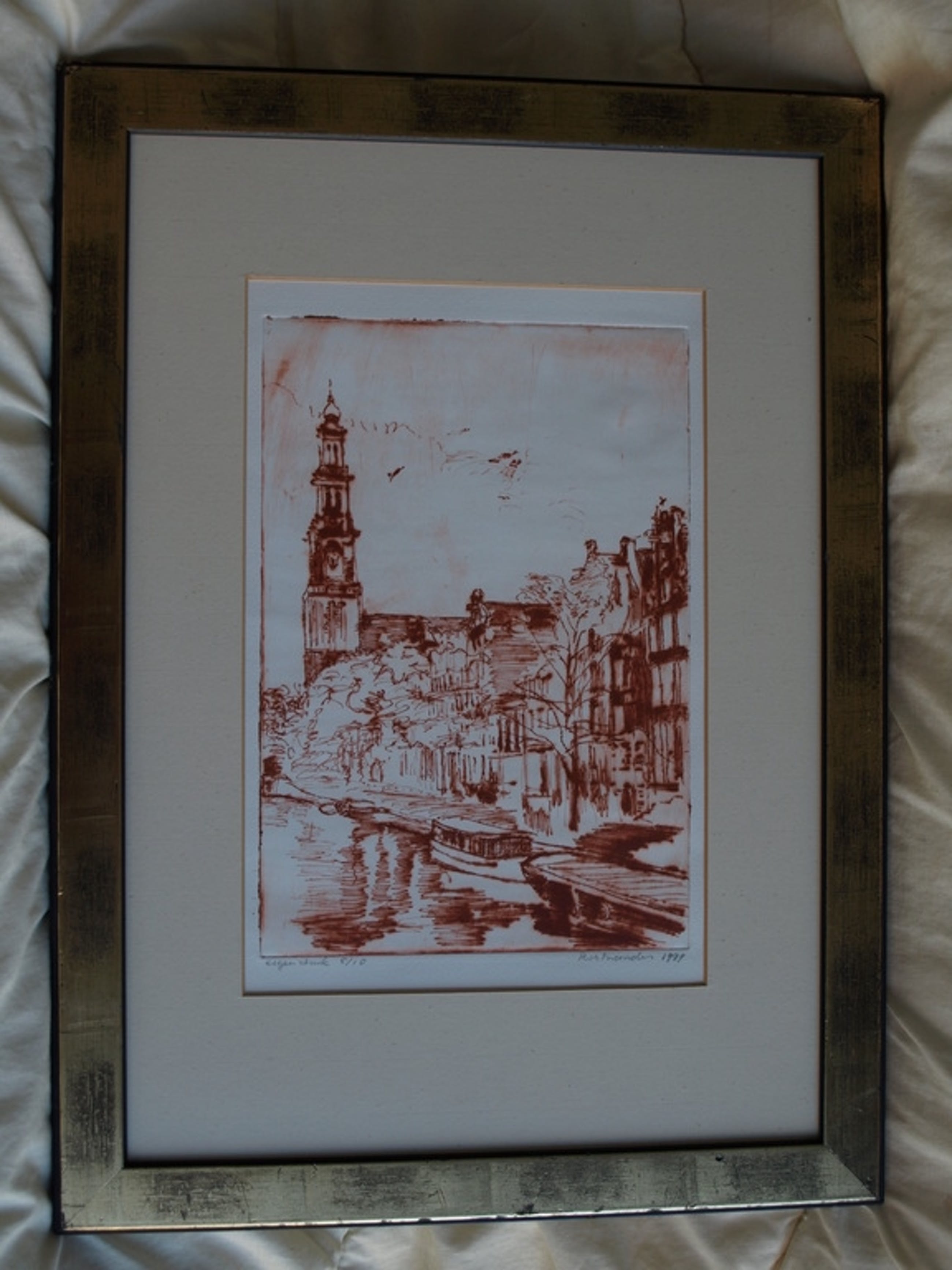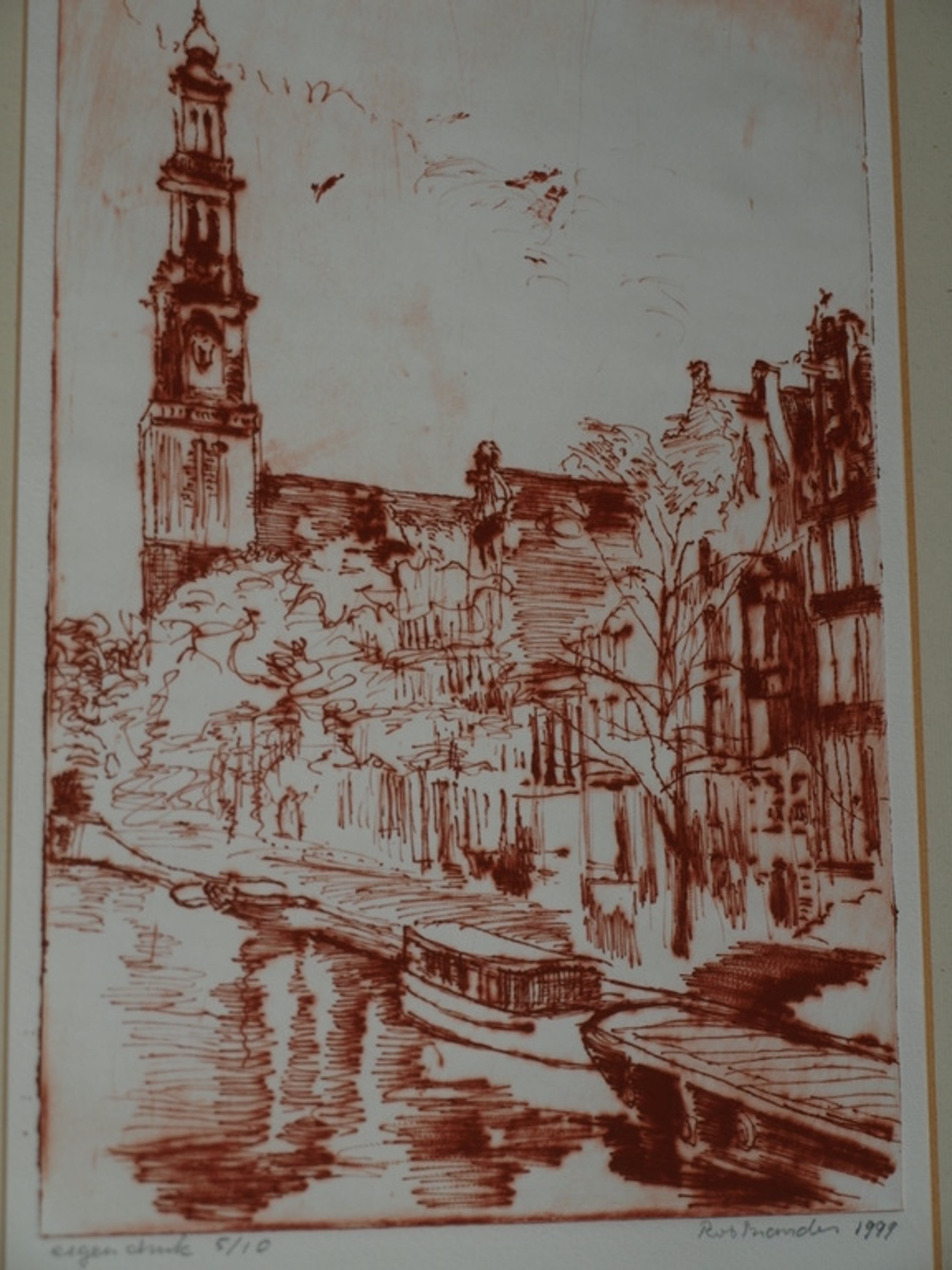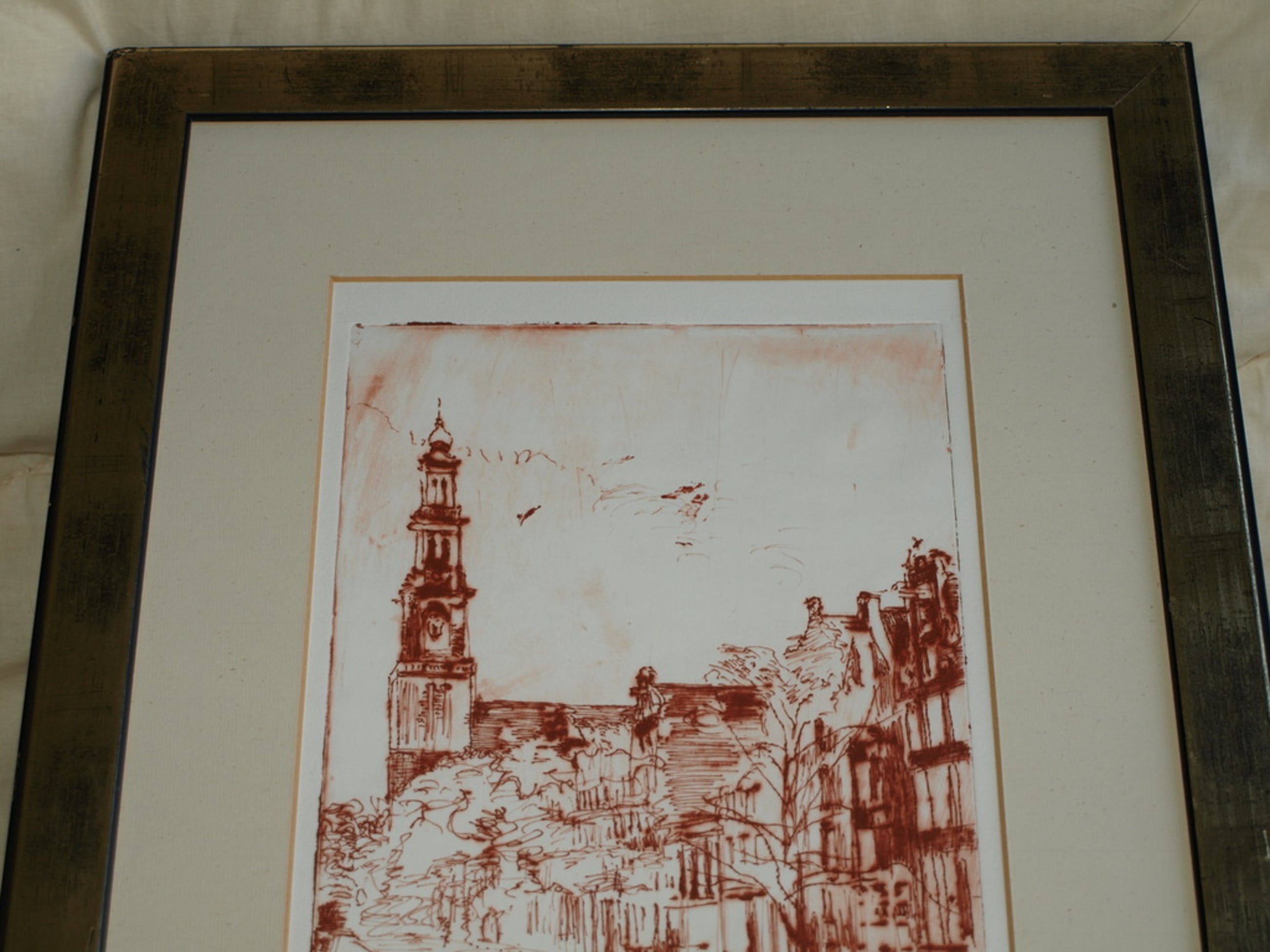 Een ets (droge naald) uit 1999 van de Nederlandse kunstenaar Rob Brandes met een voorstelling van de Westertoren in Amsterdam.