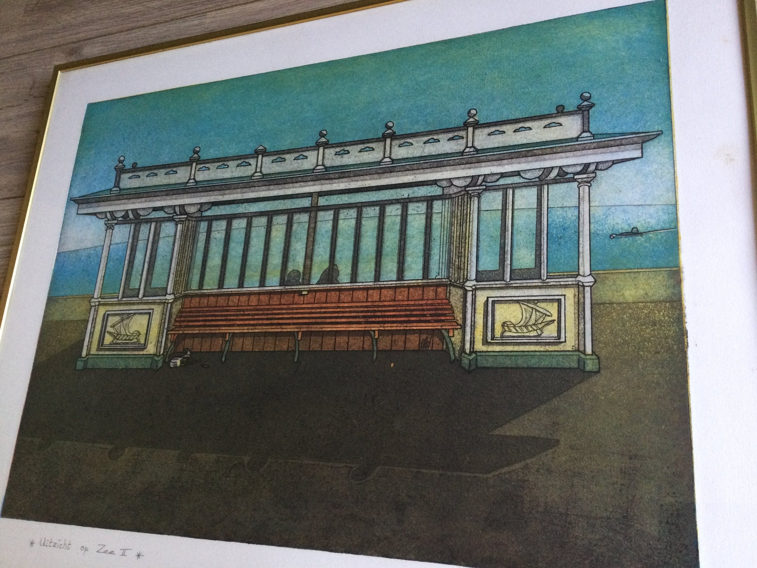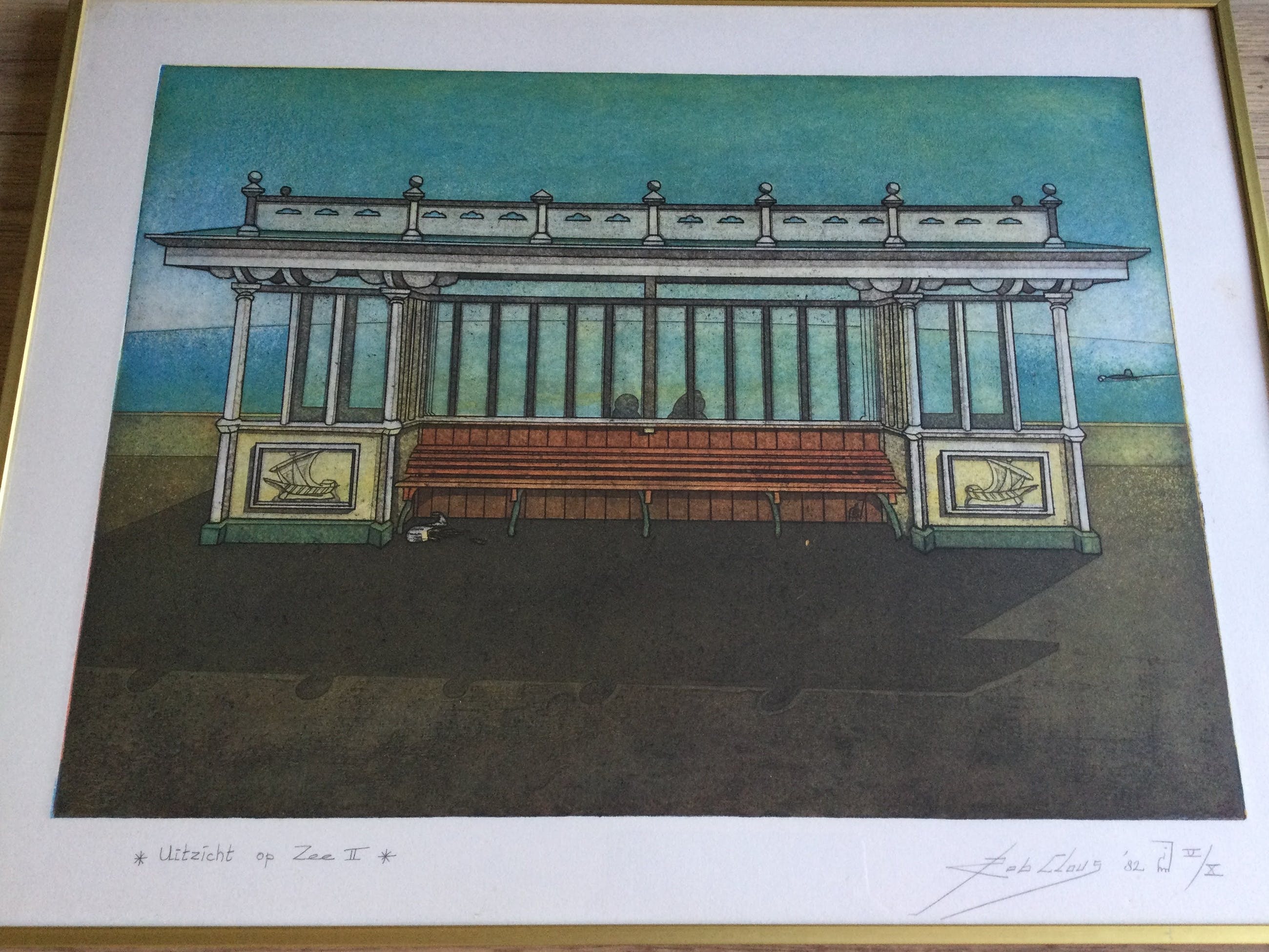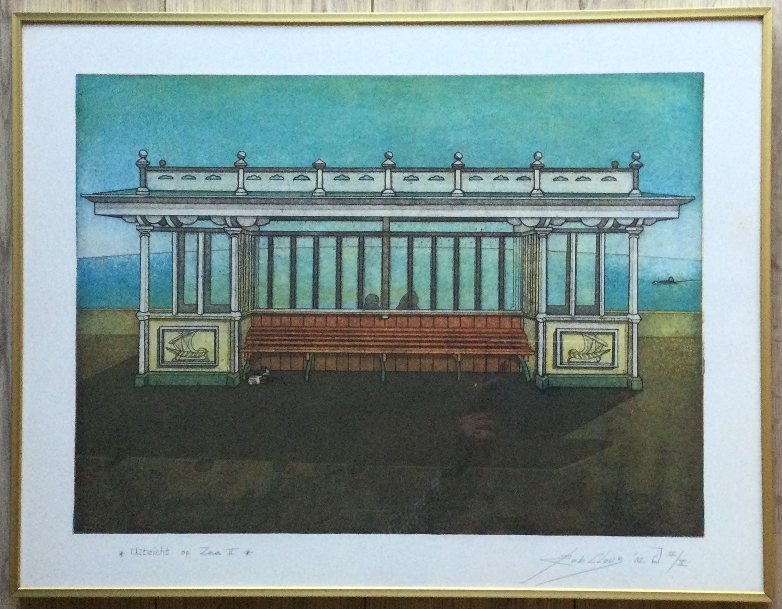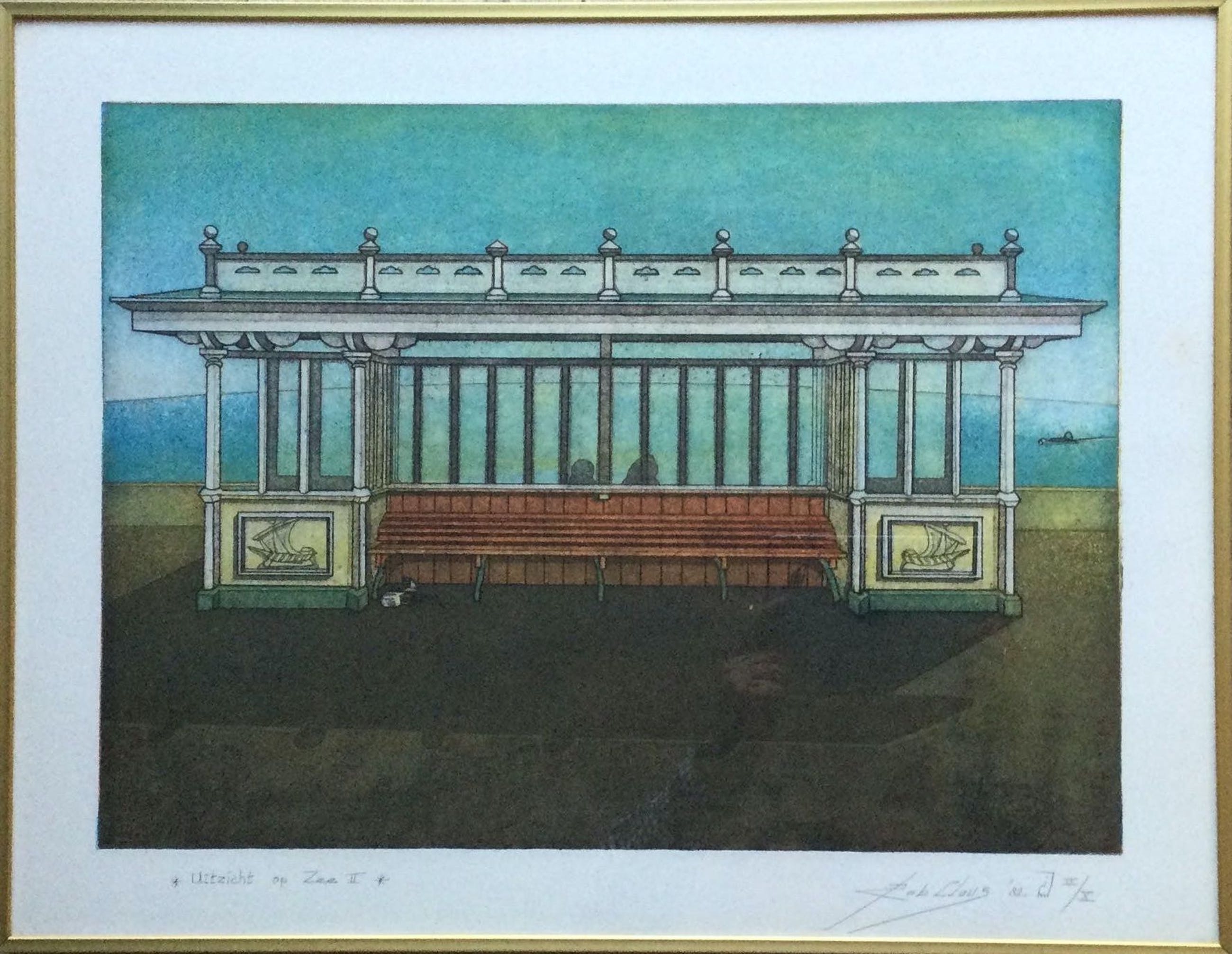 Kleuren ets van de Haarlemse kunstenaar Rob Clous (1940).