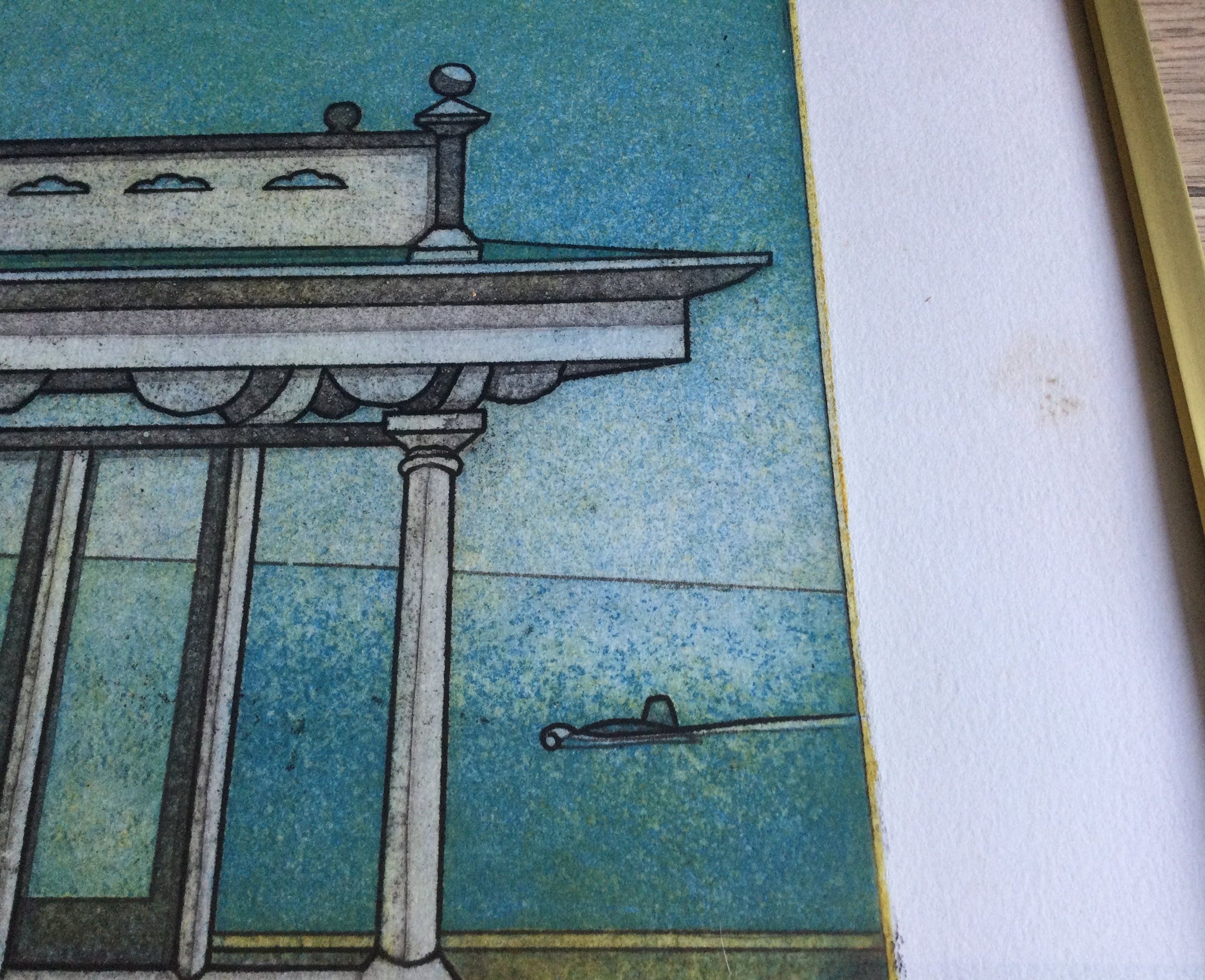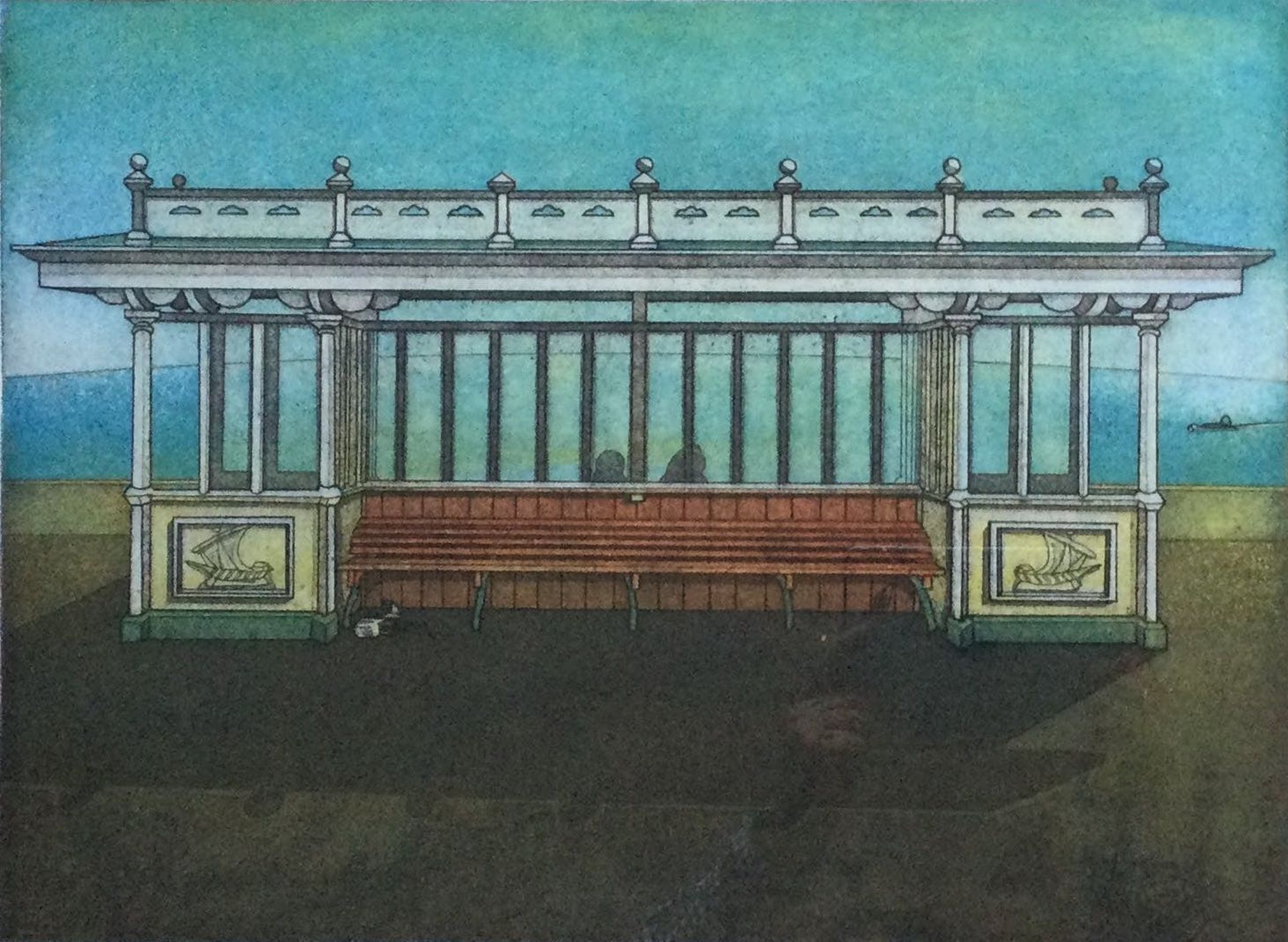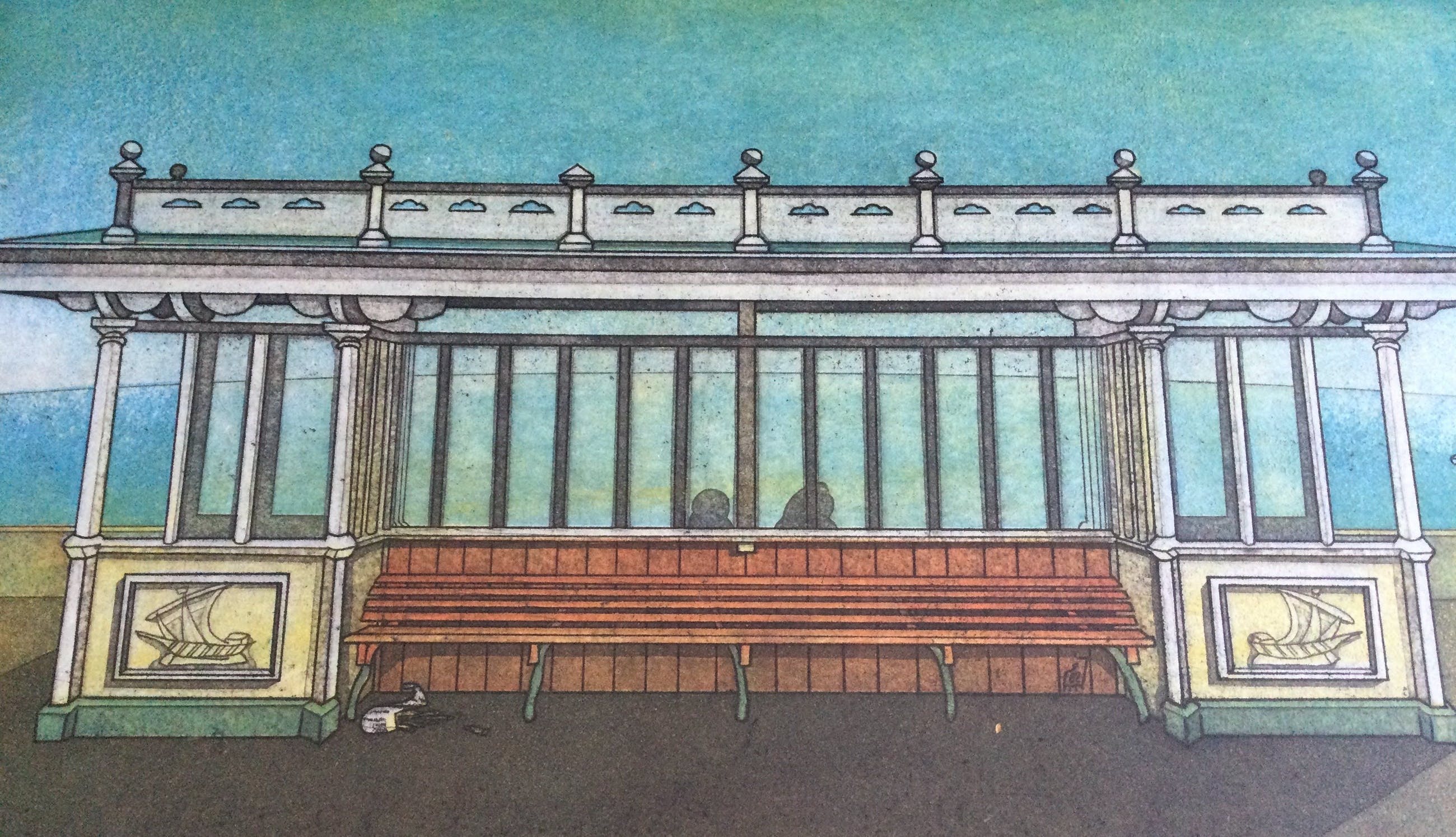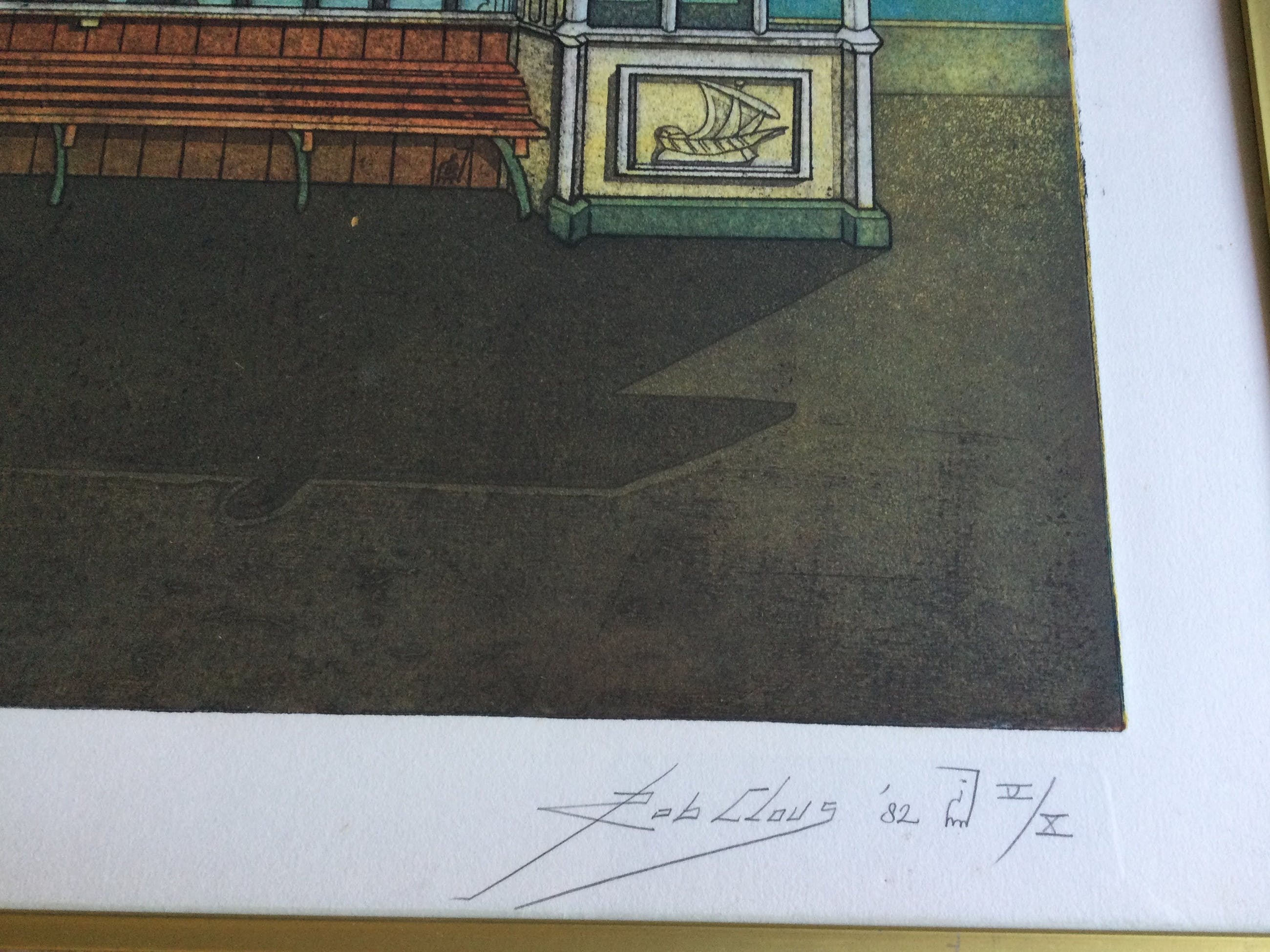 Kleuren ets van de Haarlemse kunstenaar Rob Clous (1940).