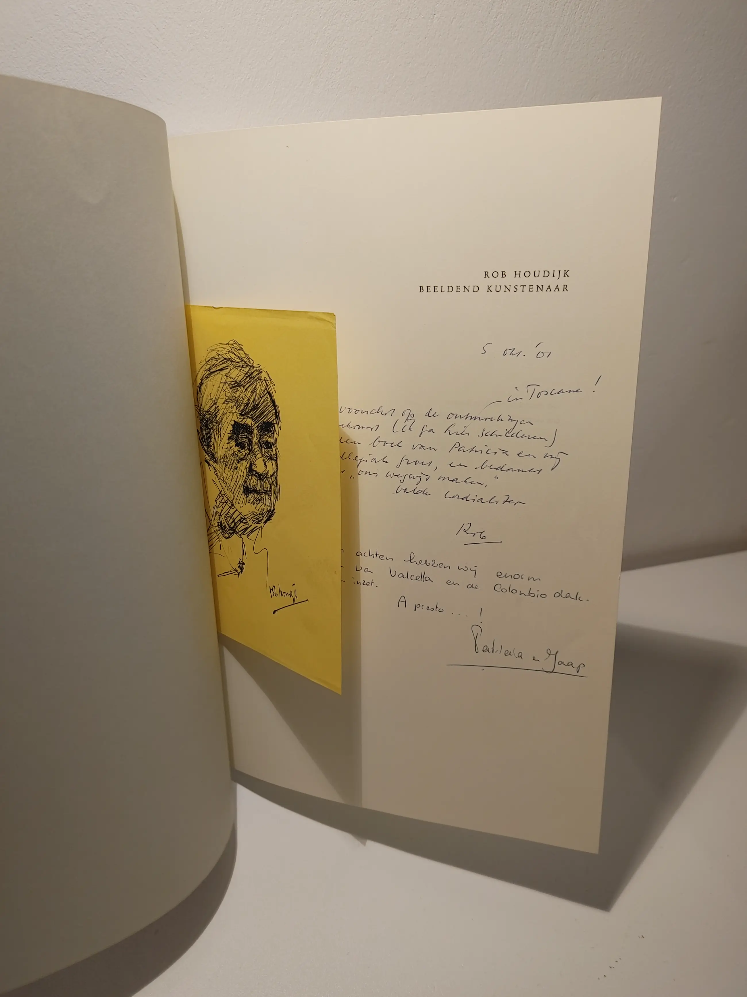 Rob Houdijk - Beeldend Kunstenaar (1999) Cadeau gekregen op vakantie in Toscane in 2001, Gesigneerd met persoonlijke tekst en een zelfportret.