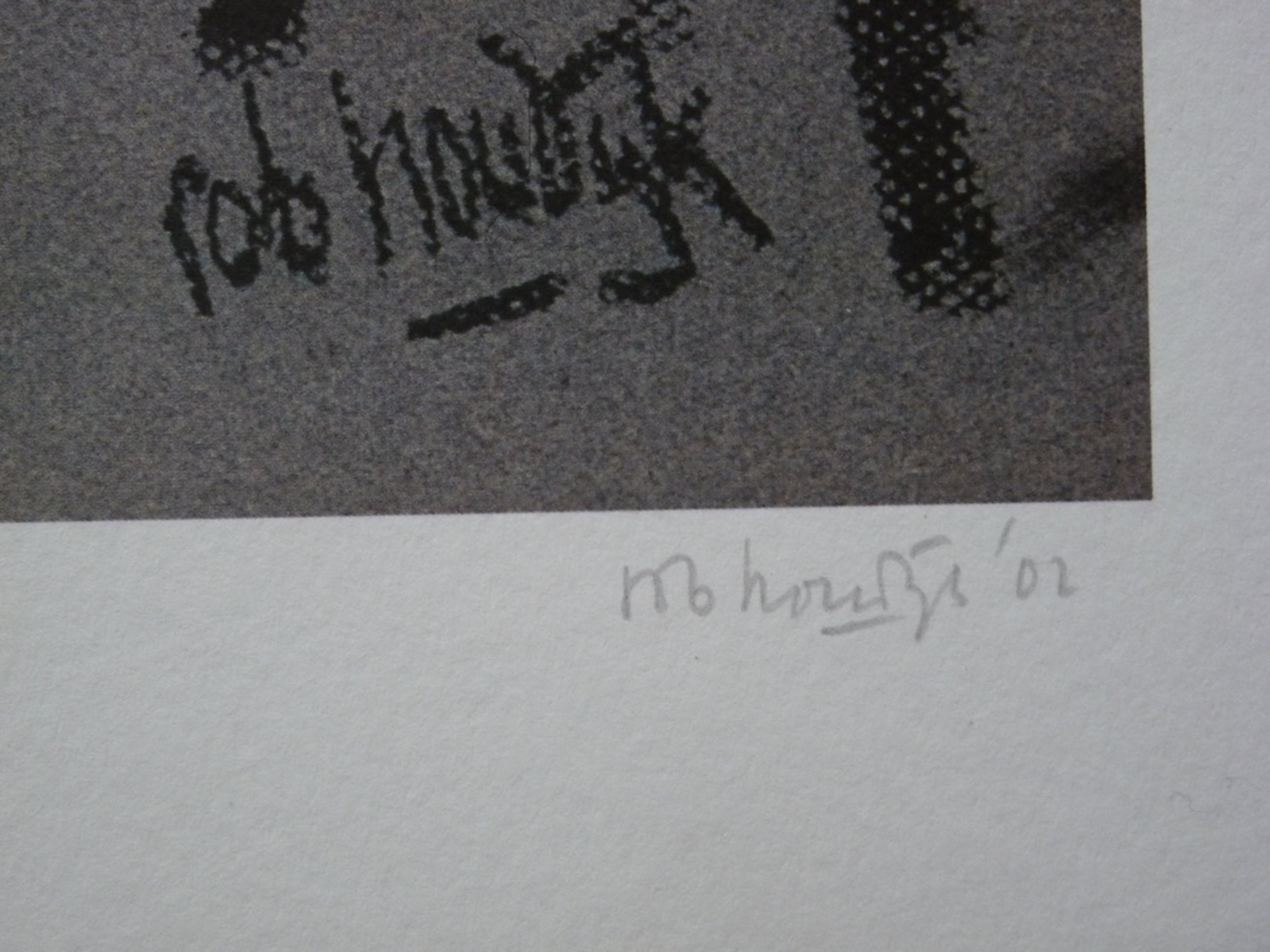 Grafiekblad uit het jaar 2002 naar een schilderij uit 1997. Het werk is in de druk en met potlood gesigneerd.