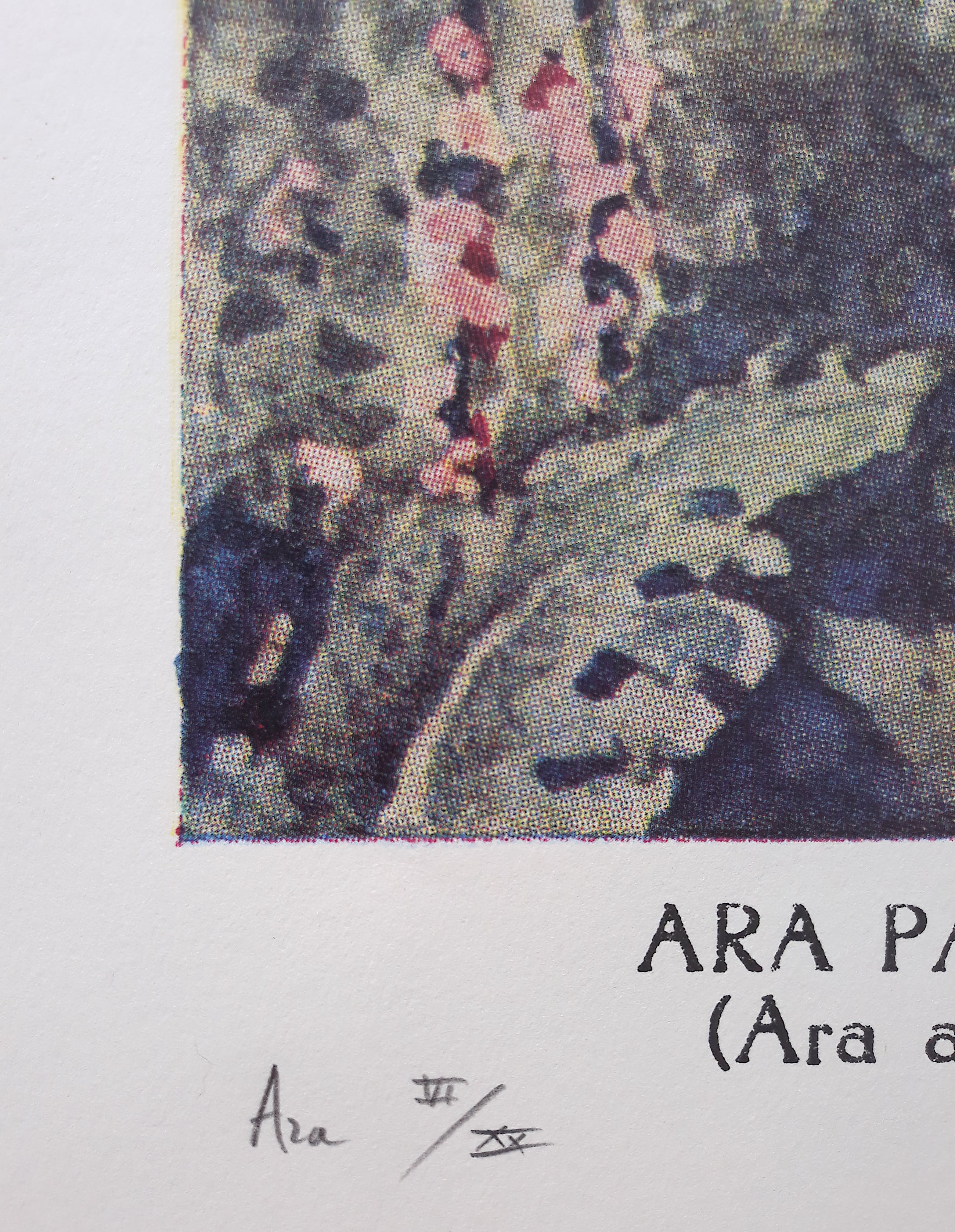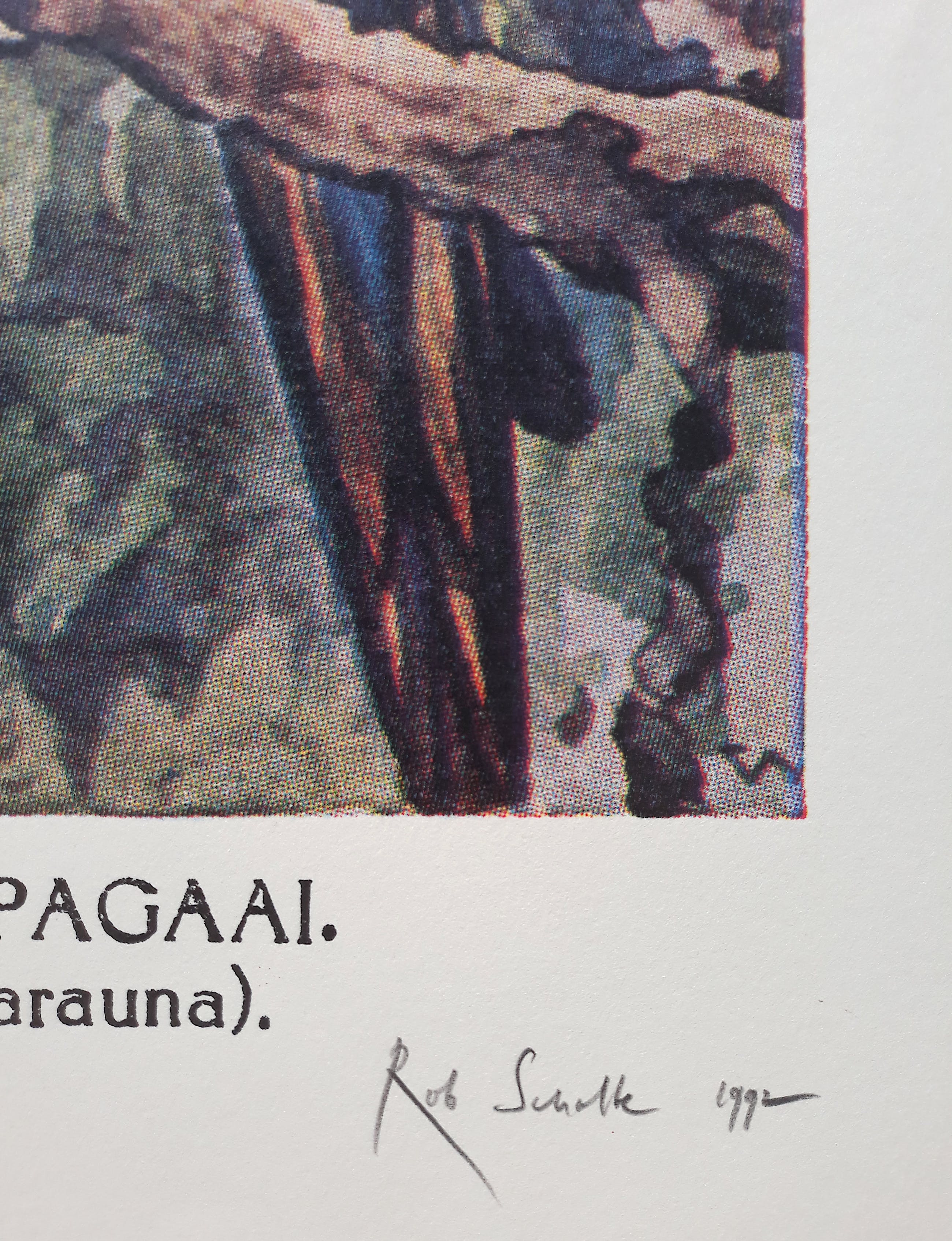 Voor de verandering weer eens een werk van Scholte dat hier niet vaak wordt aangeboden. Offset/zeefdruk op papier, met potlood gesigneerd, gedateerd (1992), getiteld (Ara) en genummerd (VI/XX = 6/20). In zeer goede conditie; wat lichte kreukjes in de witte marge maar ingelijst met passe-partout is het werk zeer goed want beeld plus directe marge eromheen is in zeer goede conditie.